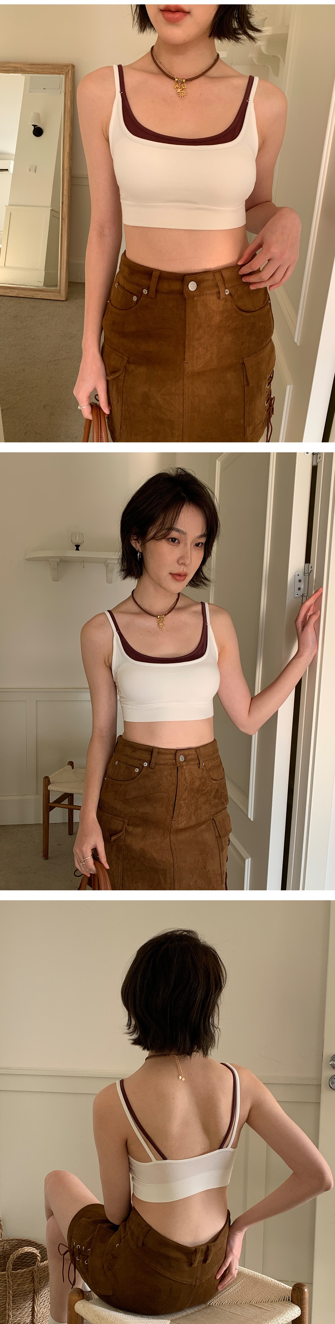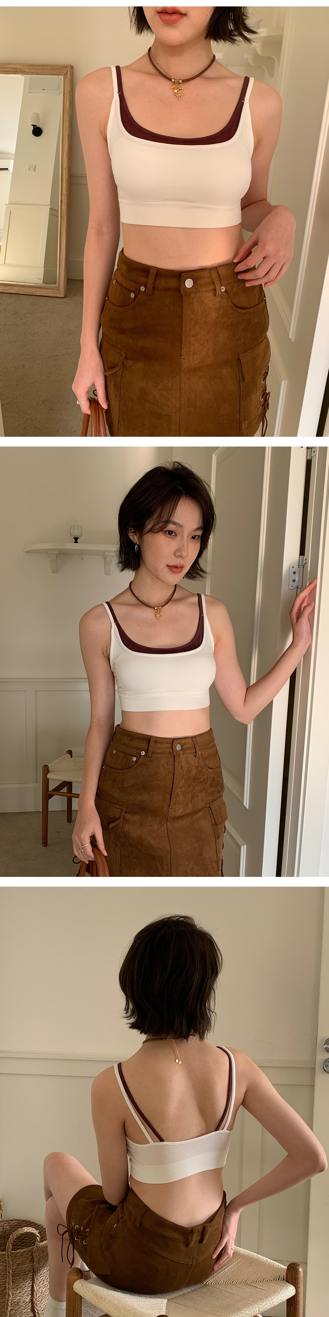 모달 누드 소프트 페이크 투피스 고정컵 가슴 감싸는 고품질 더블 숄더 스트랩 디자인 아름다운 조끼 심리스 가슴 감싸기