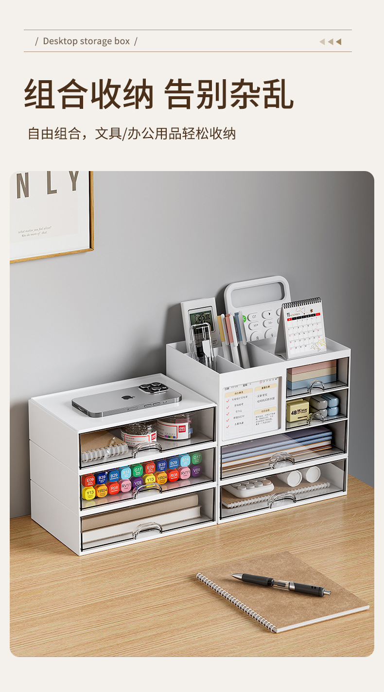 서랍형 데스크탑 수납함 학생용 펜홀더 사무실 직장인용 선반 아크릴 책상 문구 정리함