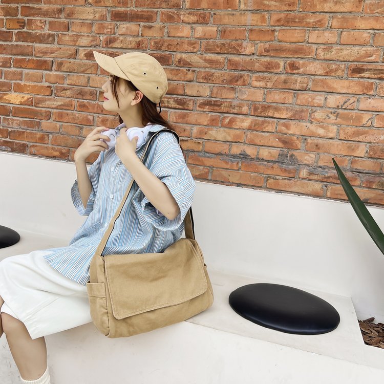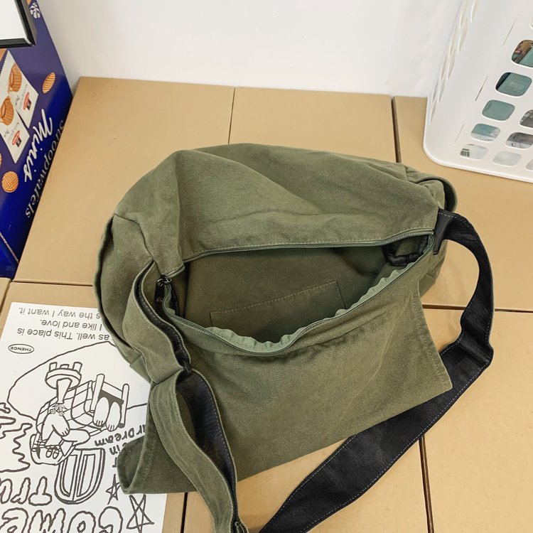 2025 새로운 스타일 간단한 씻은 캔버스 가방 캐주얼 크로스 바디 가방 대외 무역 여성 어깨 가방 국경 간 단거리 여행