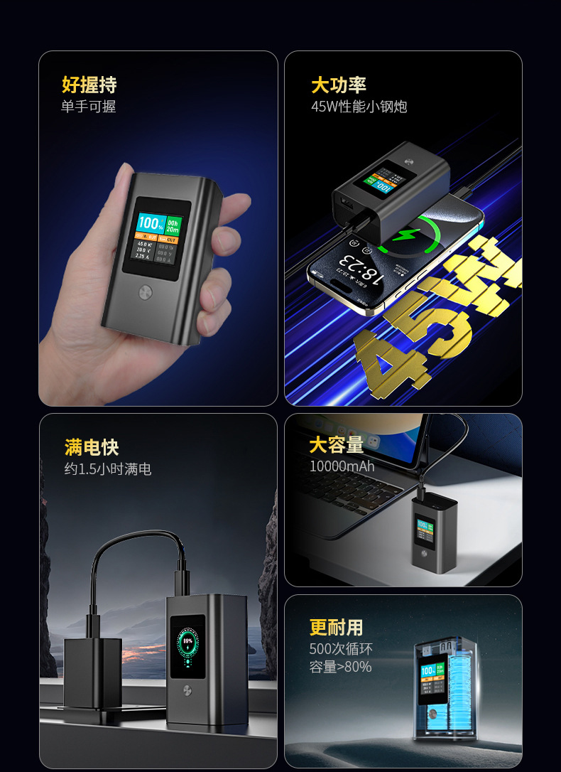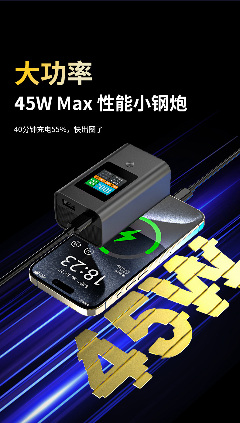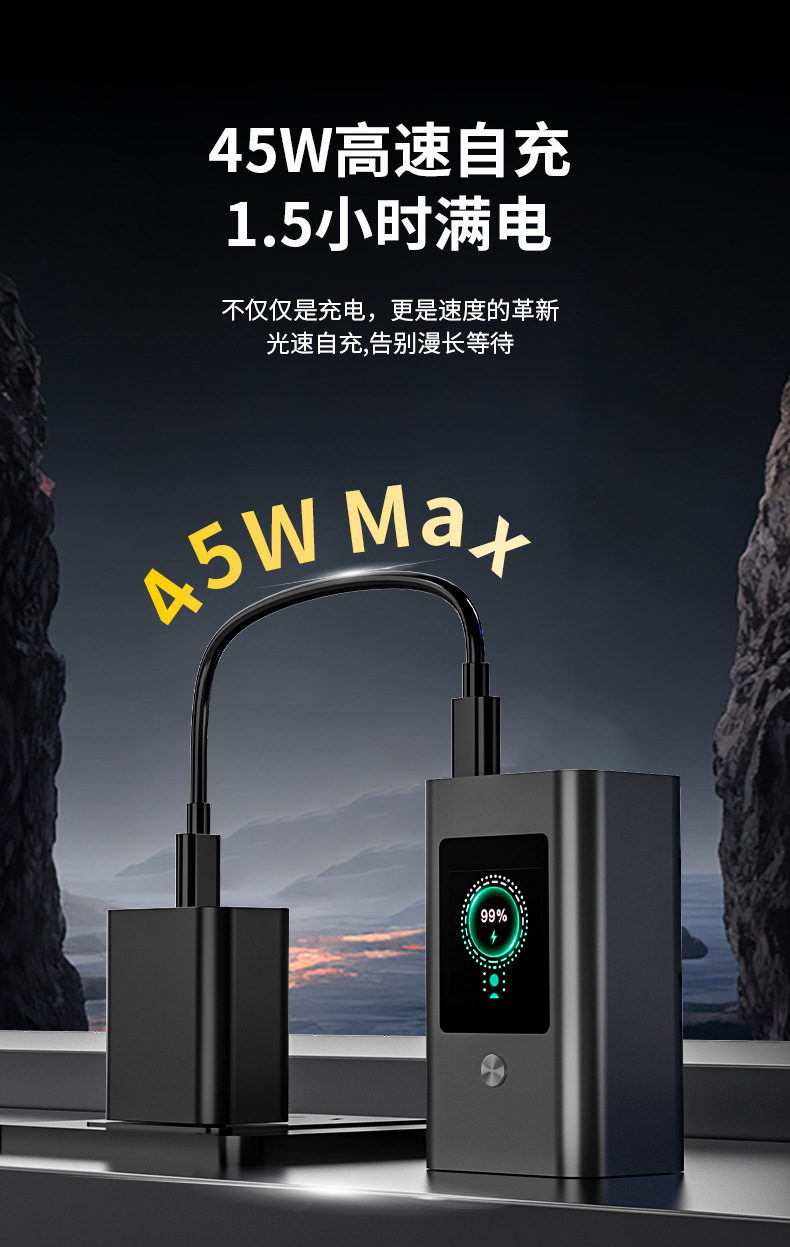输 出output2: 5V=3A 9V=3A 12V=3A 15V=3A 20V=2.25A ( USB-C1/PD45W )