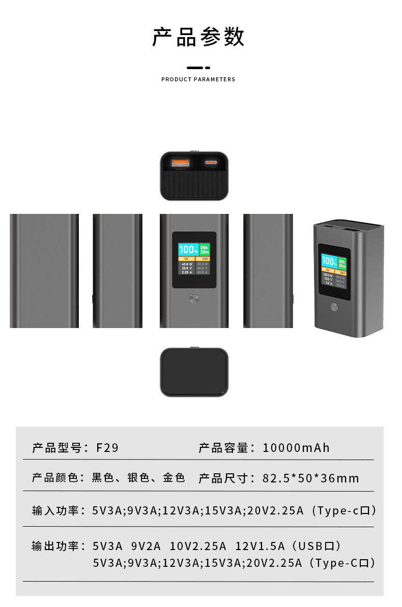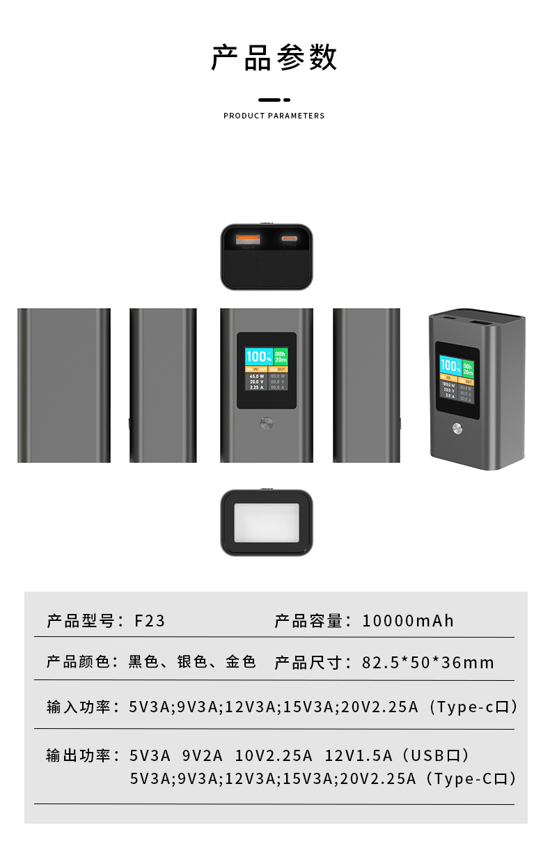 输 出output1:4.5V=5A 9V=2.5A 12V=1.67A (USB-A/22.5W)