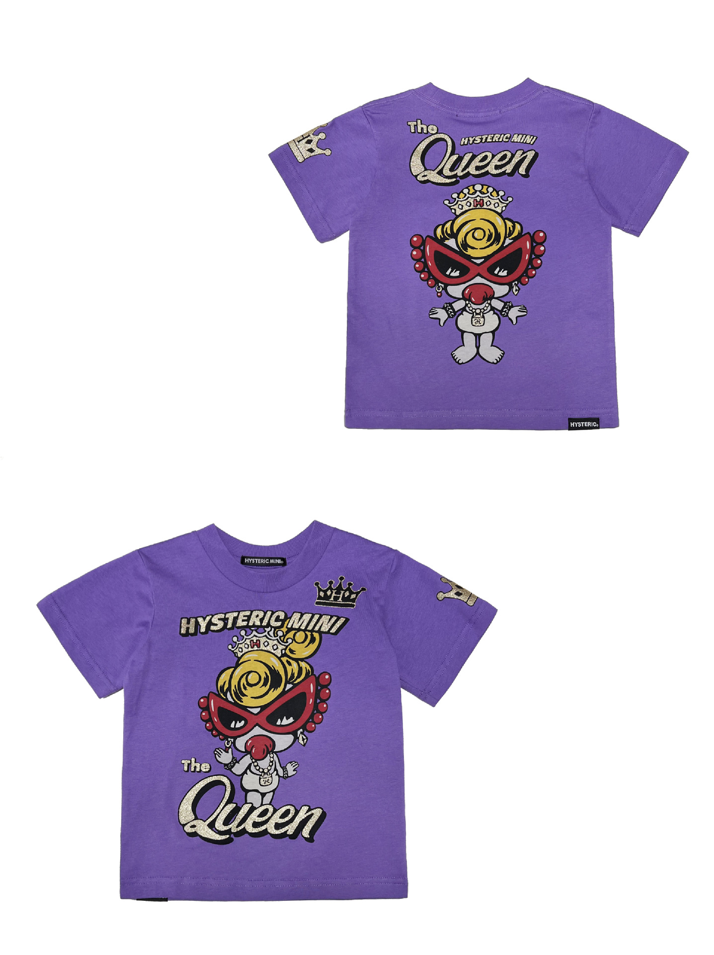 2025 새로운 블랙 슈퍼 조수 브랜드 젖꼭지 금박을 입힌 크라운 퀸 모양 짧은 소매 티셔츠 젖꼭지 어린이 재킷 재고스토어 가기