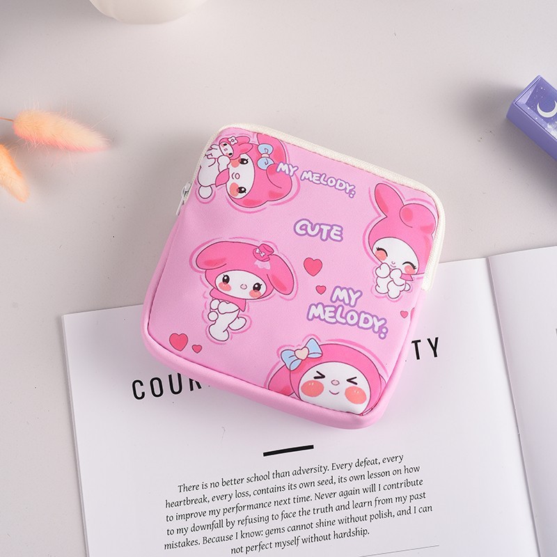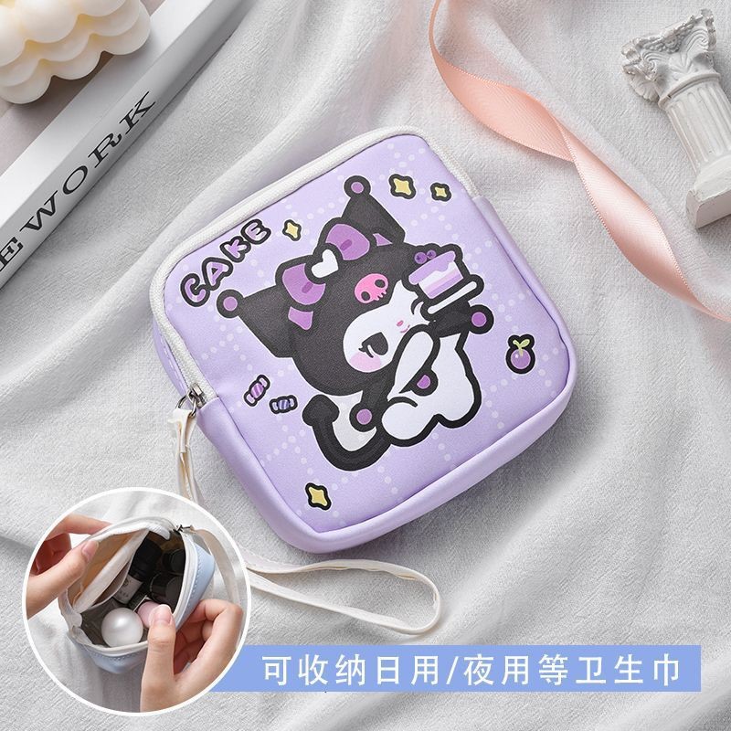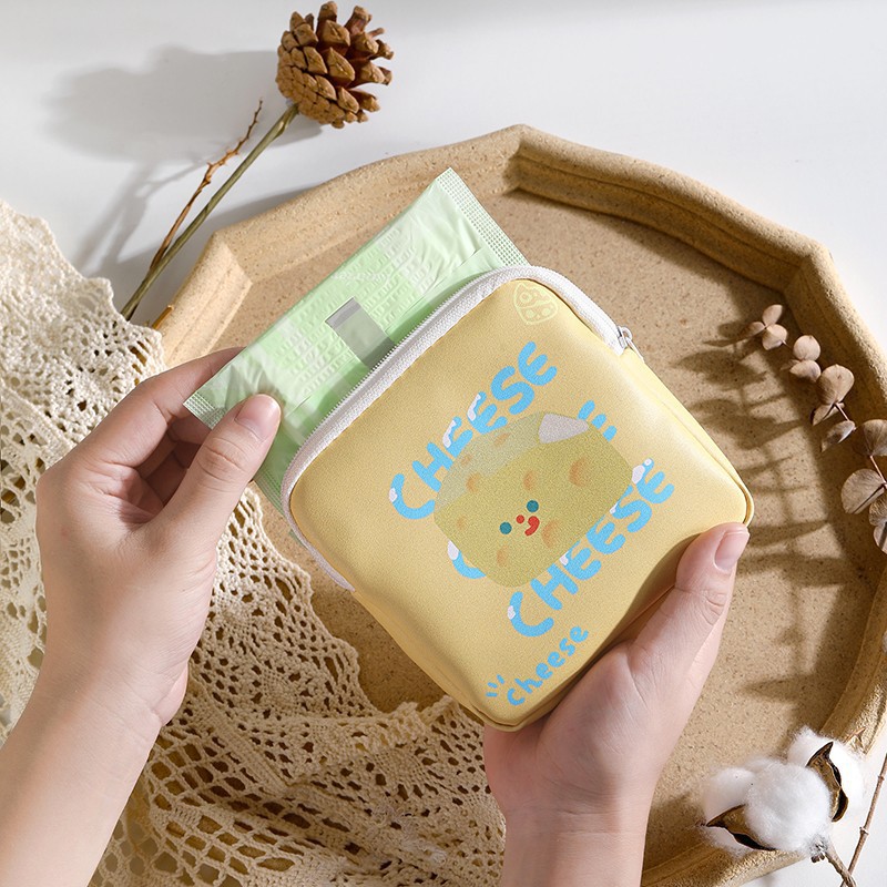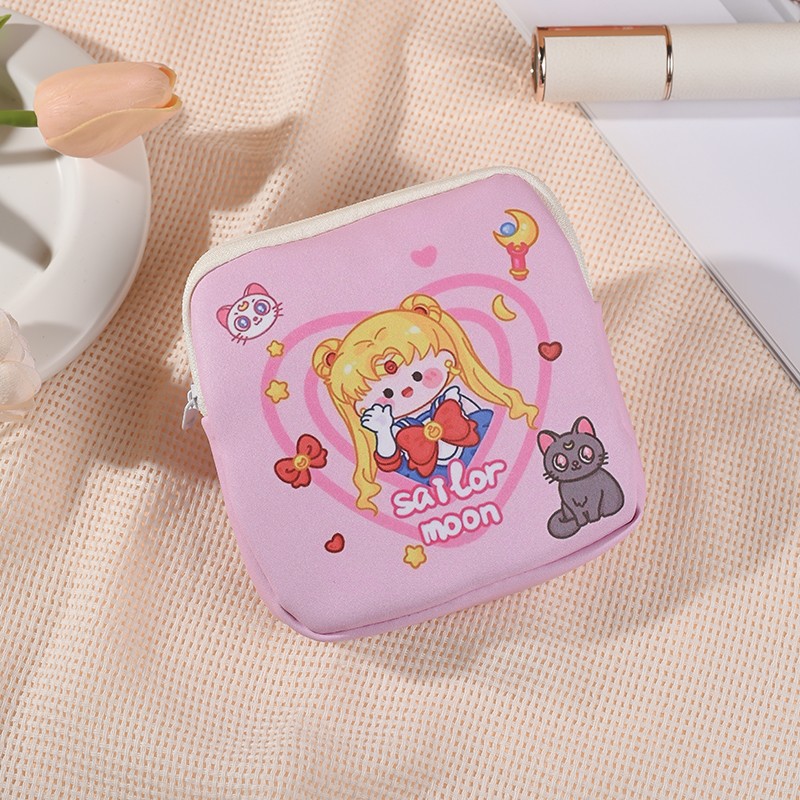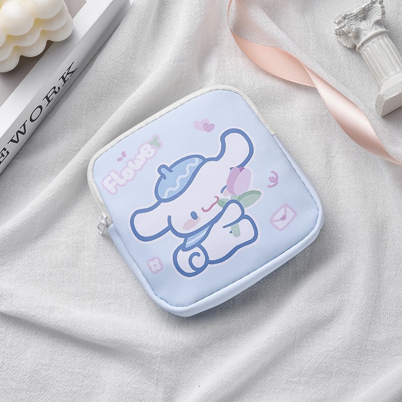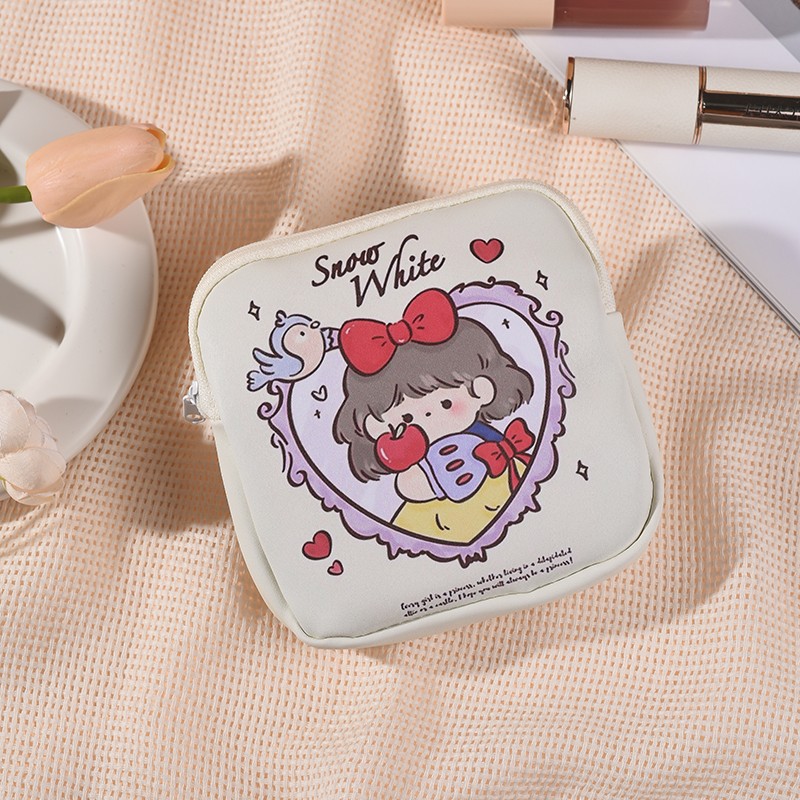 만화 위생 수건 이모 수건 보관 가방 문 작은 가방 학생 휴대용 휴대 소녀 캔버스 간단한 보관 가방