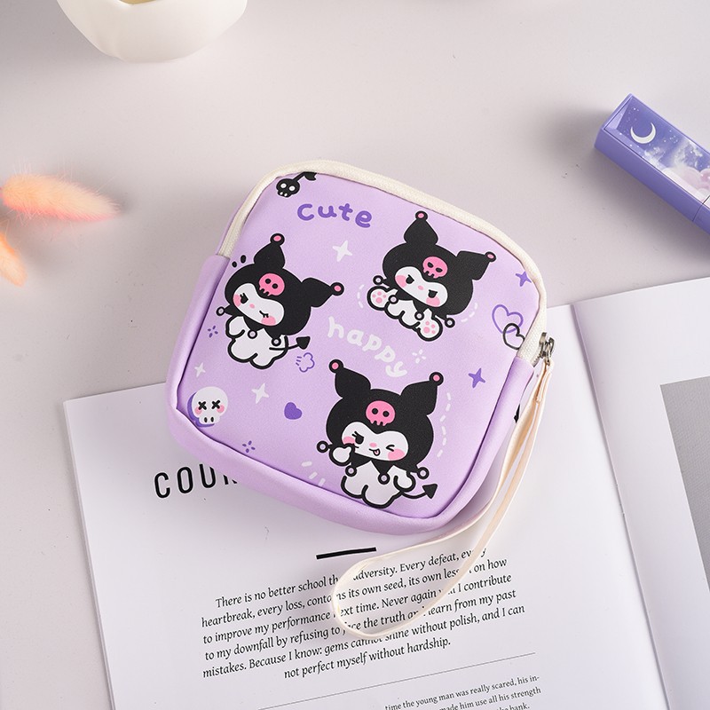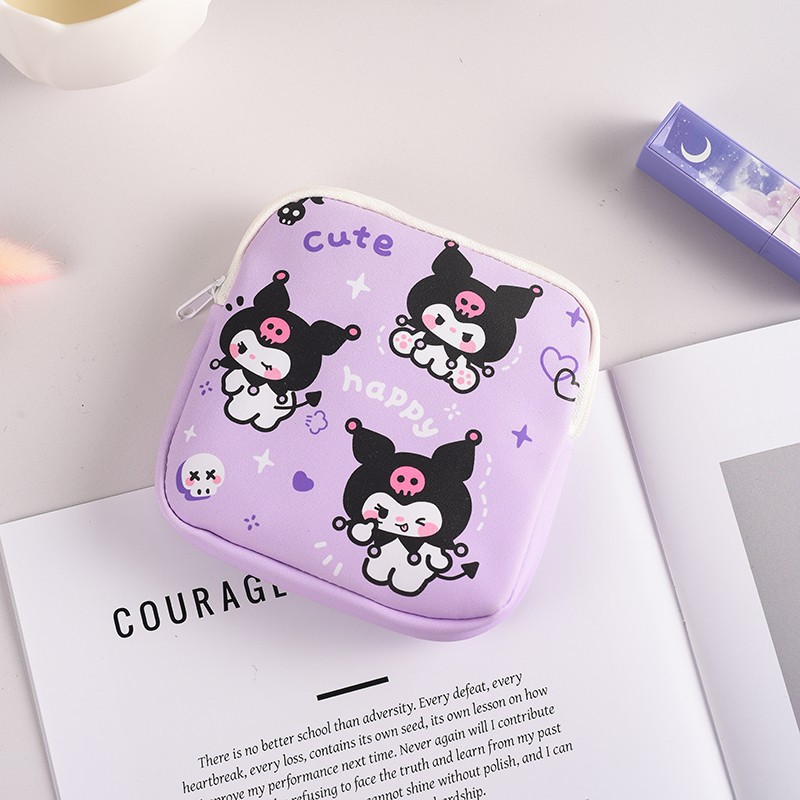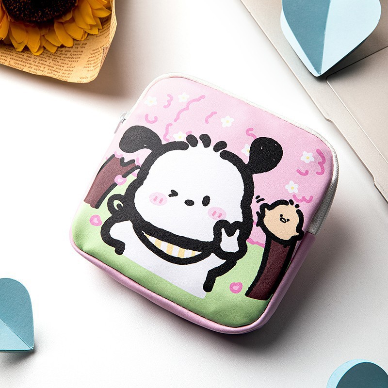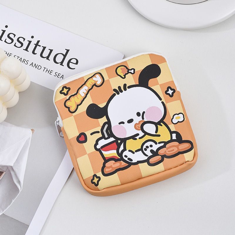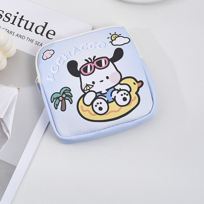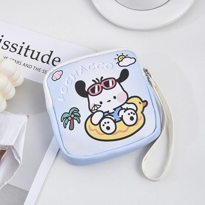 만화 위생 수건 이모 수건 보관 가방 문 작은 가방 학생 휴대용 휴대 소녀 캔버스 간단한 보관 가방
