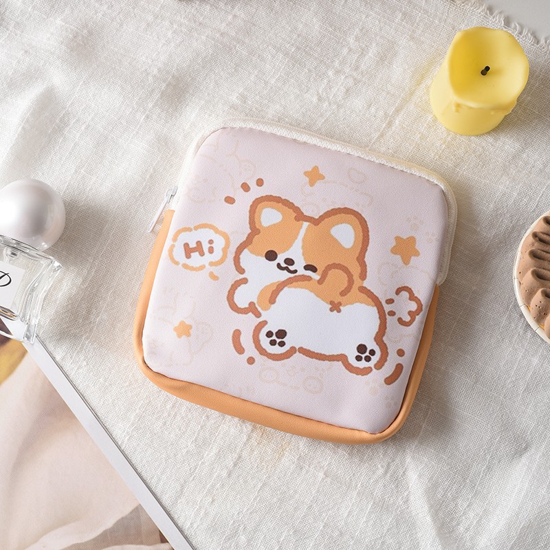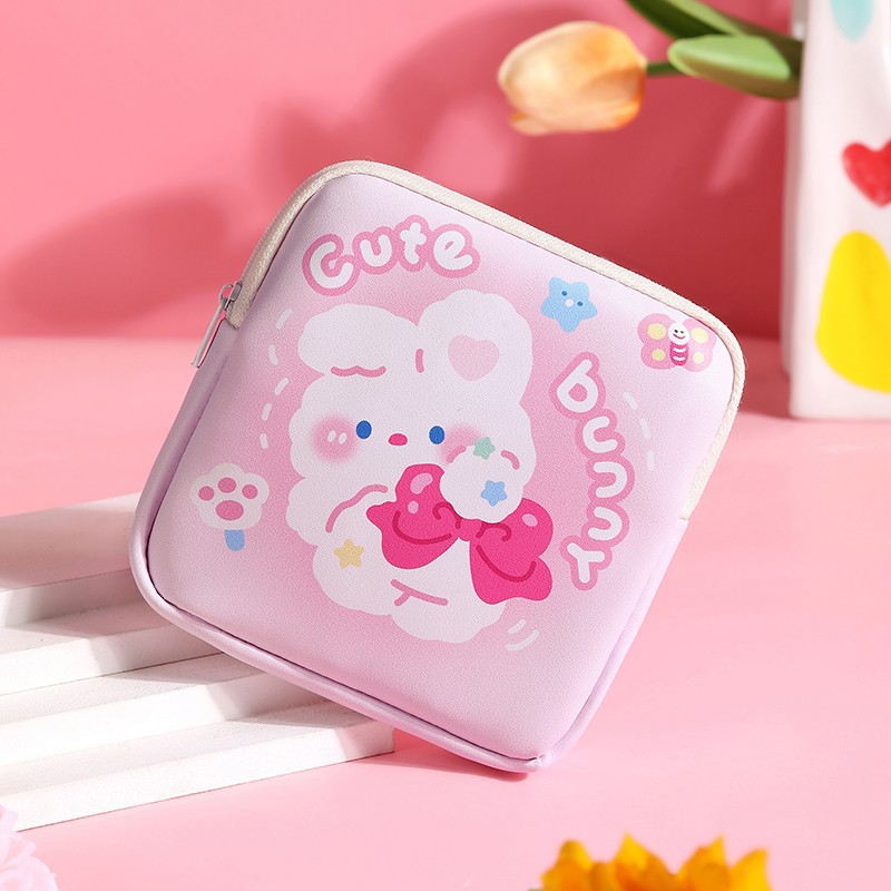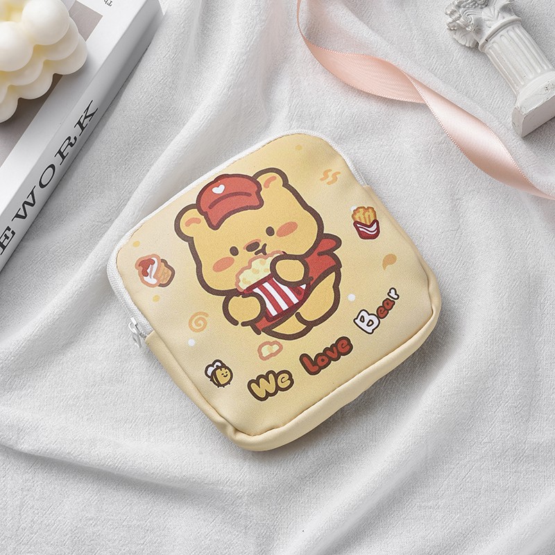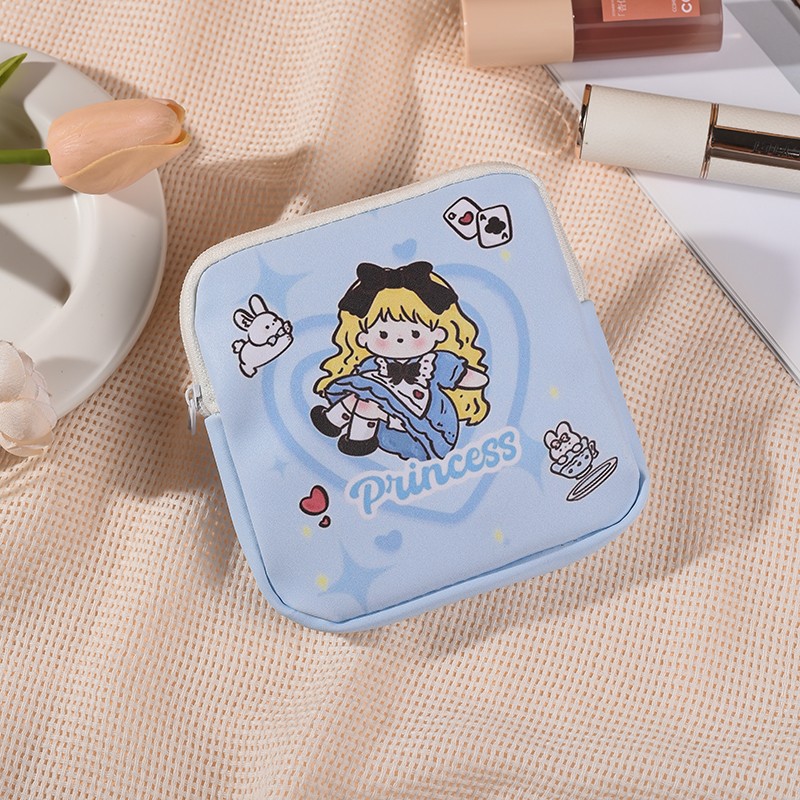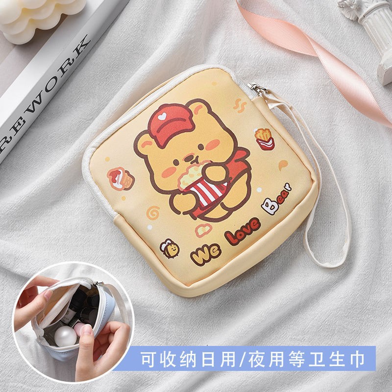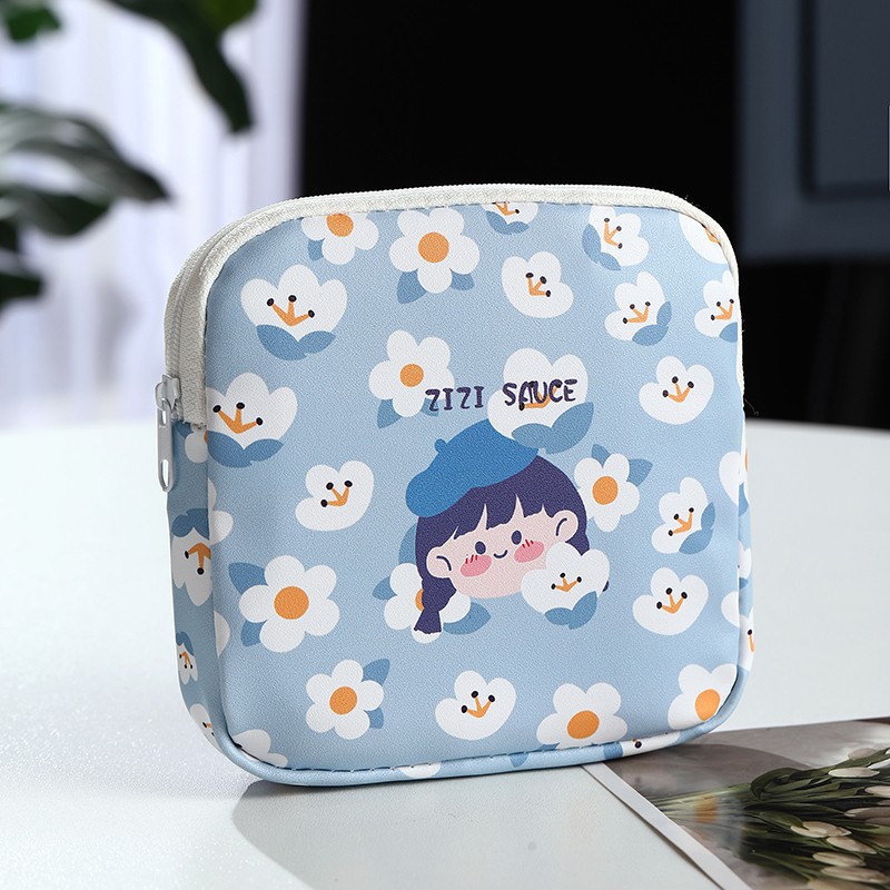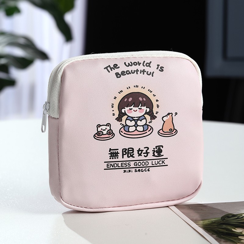 만화 위생 수건 이모 수건 보관 가방 문 작은 가방 학생 휴대용 휴대 소녀 캔버스 간단한 보관 가방스토어 가기