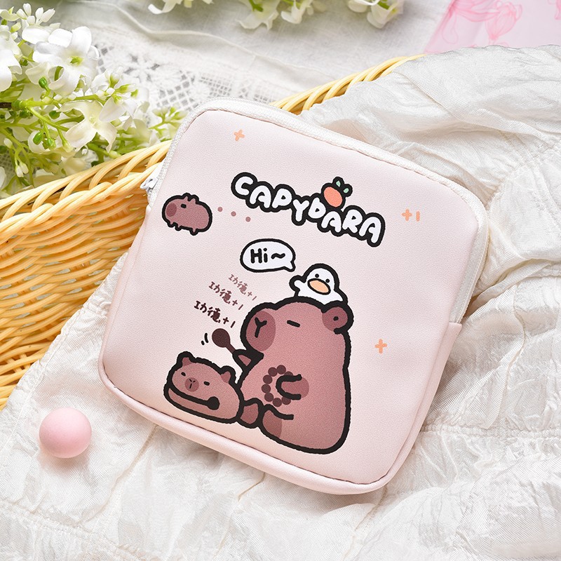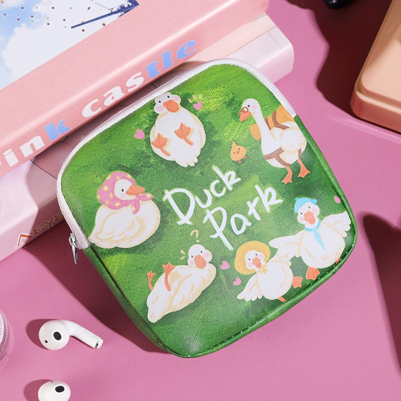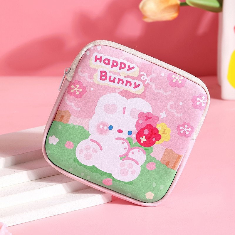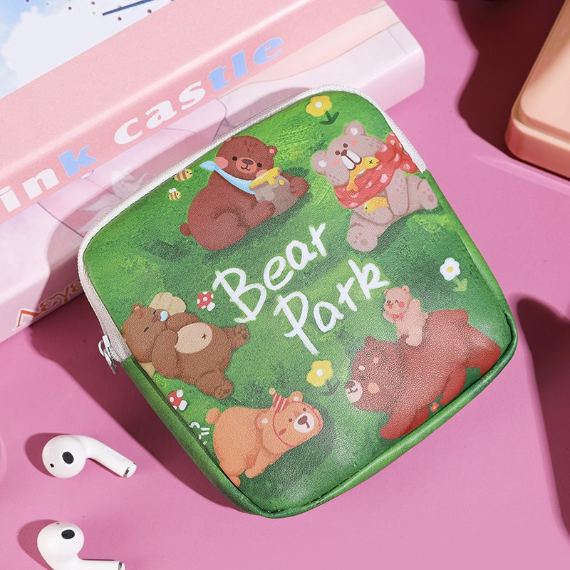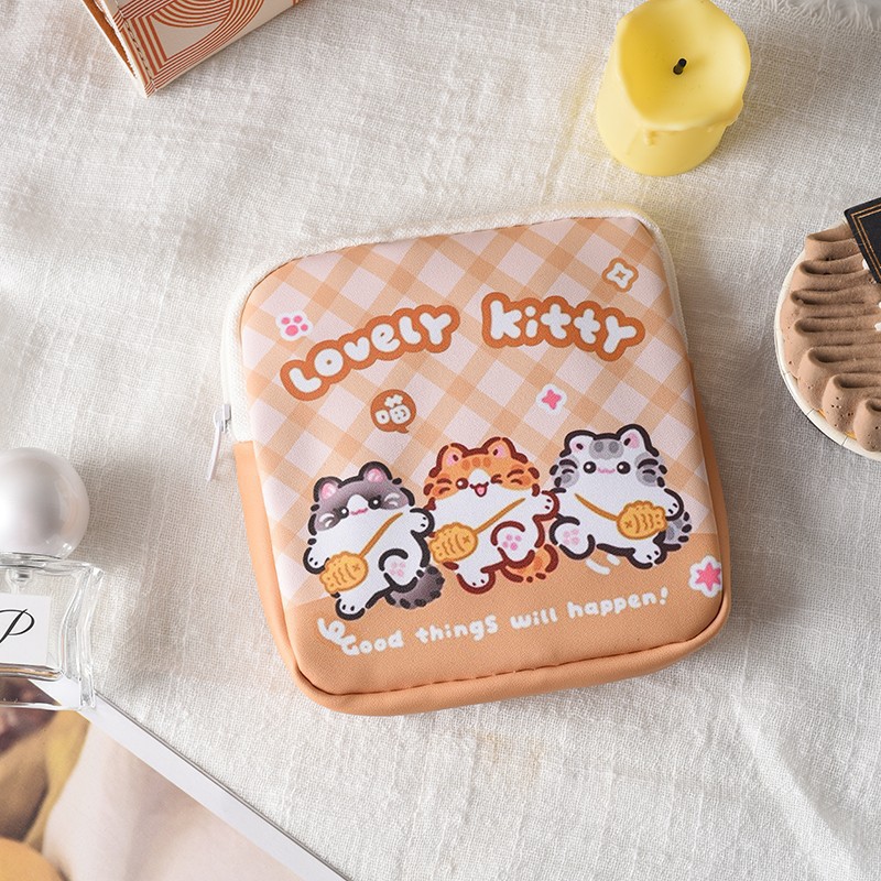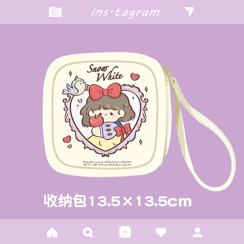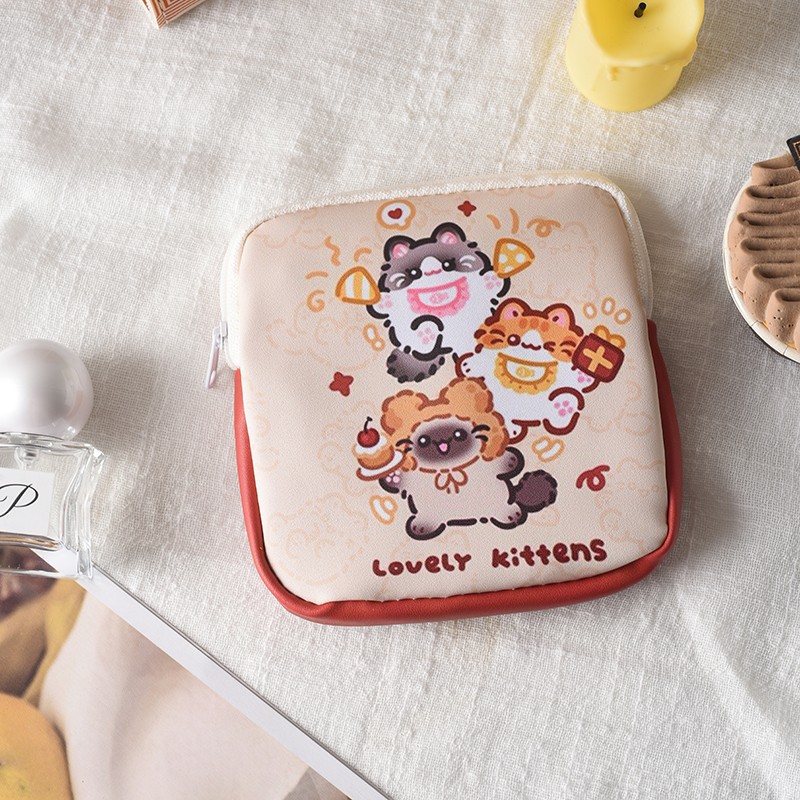 만화 위생 수건 이모 수건 보관 가방 문 작은 가방 학생 휴대용 휴대 소녀 캔버스 간단한 보관 가방스토어 가기