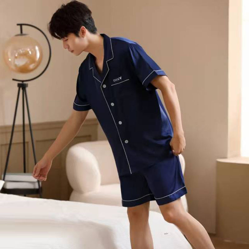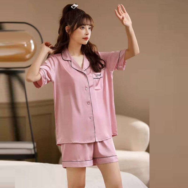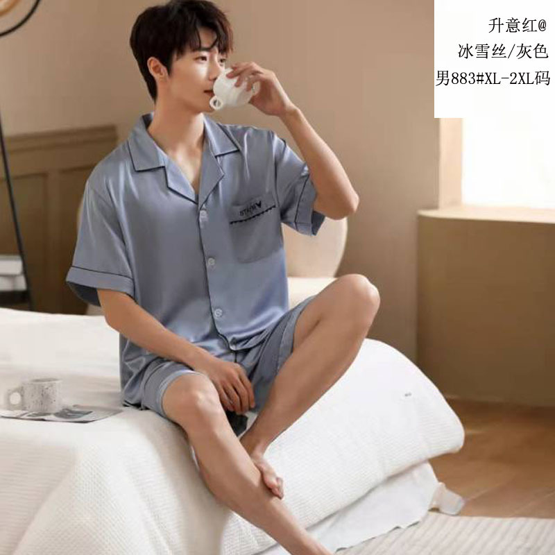 승천 레드 아이스 실크 커플 세트 아이스 실크 파자마 실크 솔리드 컬러 커플 의류 실크 짧은 소매 반바지 홈 의류스토어 가기