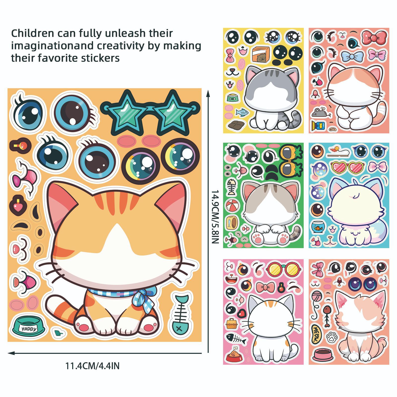 8 국경 고양이 얼굴 스티커 유치원 계몽 교육 장난감 diy 어린이 직소 퍼즐 스티커 도매스토어 가기