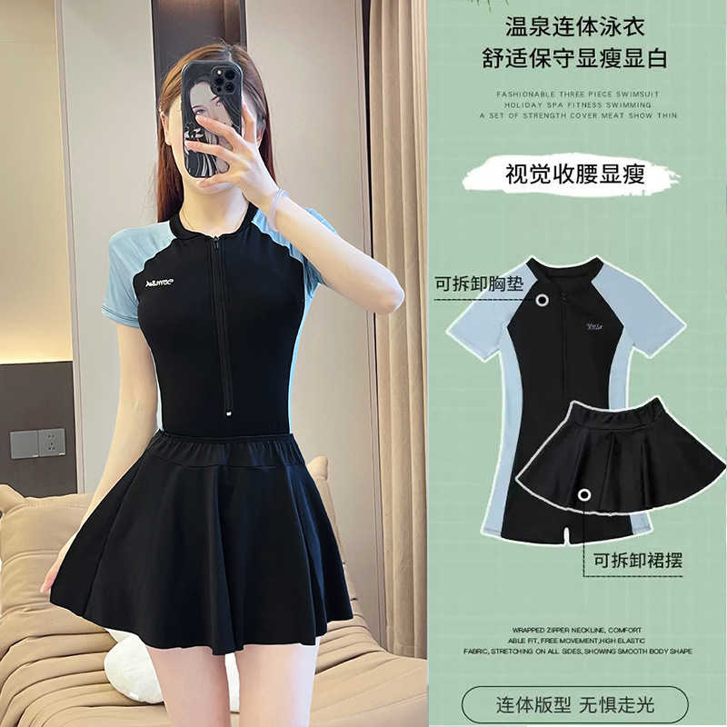 학생 스포츠 수영복 여성용 원피스 슬리밍 배 커버 보수적 수영복 살찐 소녀 2025 새로운 스타일 온천스토어 가기
