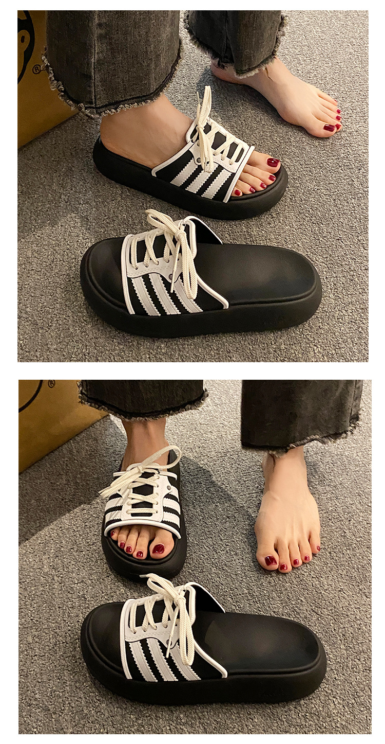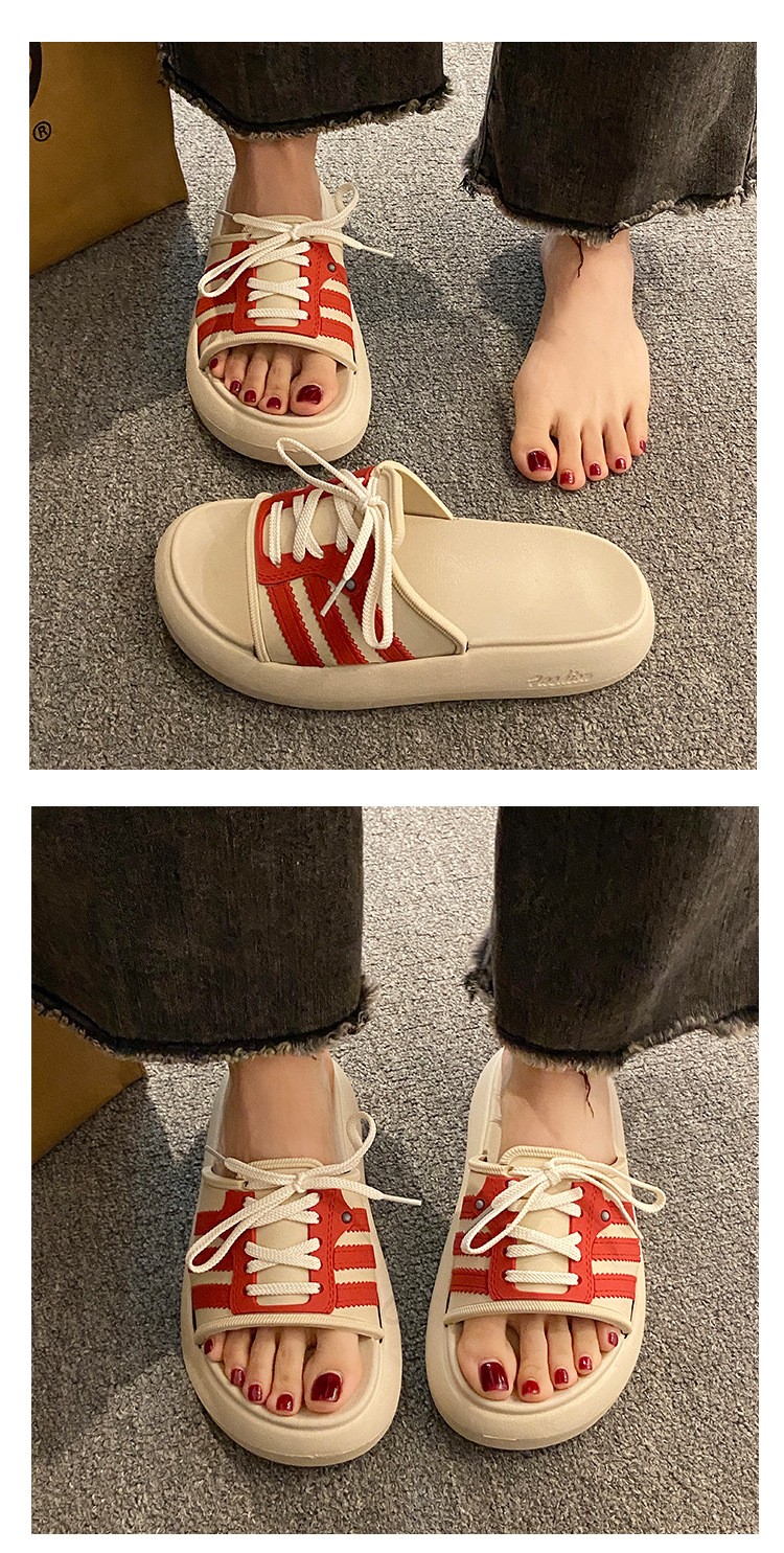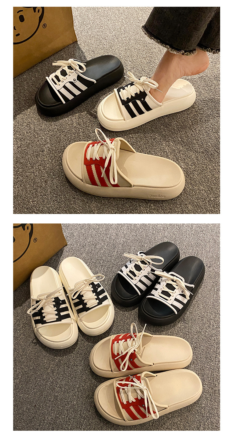 에바 슬리퍼 여성의 여름 외부 착용 두꺼운 단독 슬립 온 느낌 트랩 인기 패션 레이스 업 해변 슬리퍼