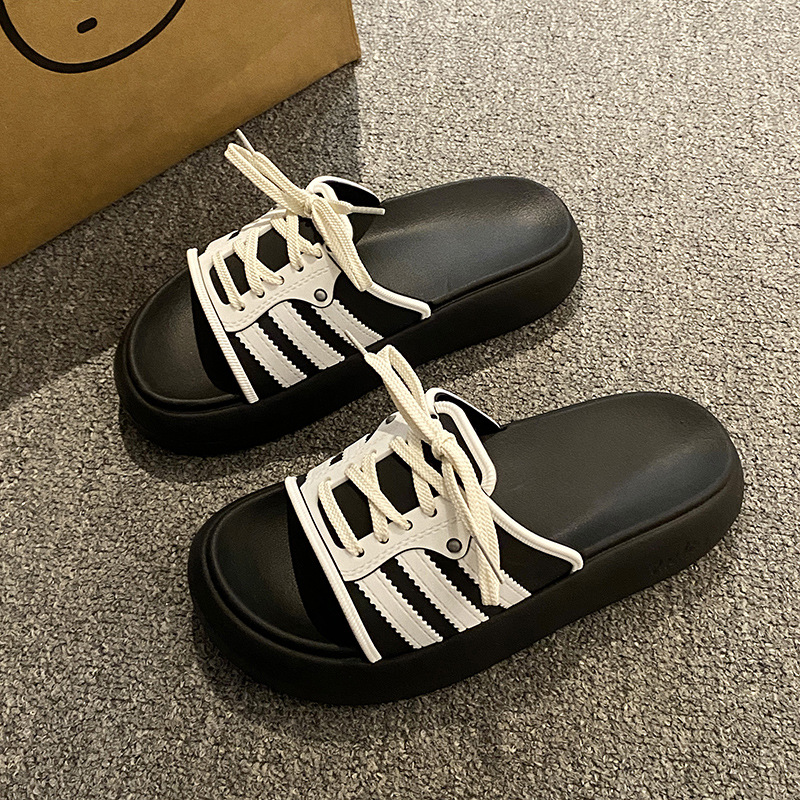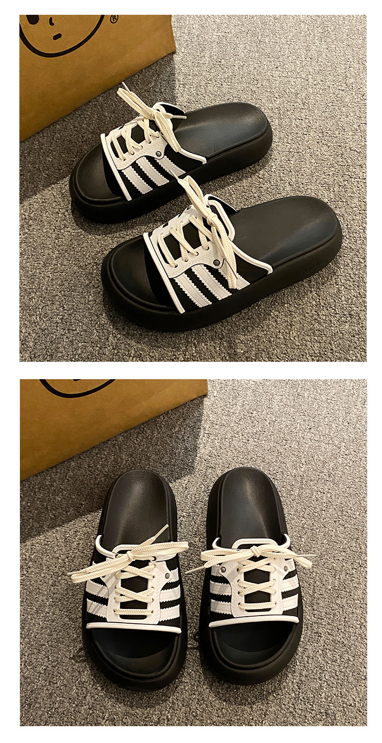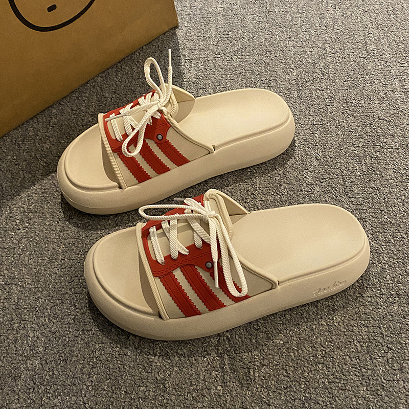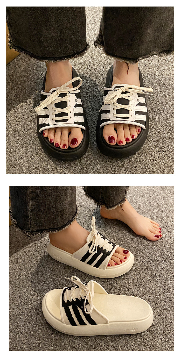 에바 슬리퍼 여성의 여름 외부 착용 두꺼운 단독 슬립 온 느낌 트랩 인기 패션 레이스 업 해변 슬리퍼