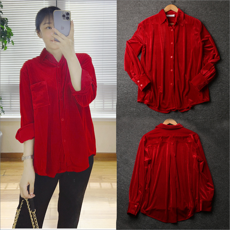 2022红色丝绒衬衫