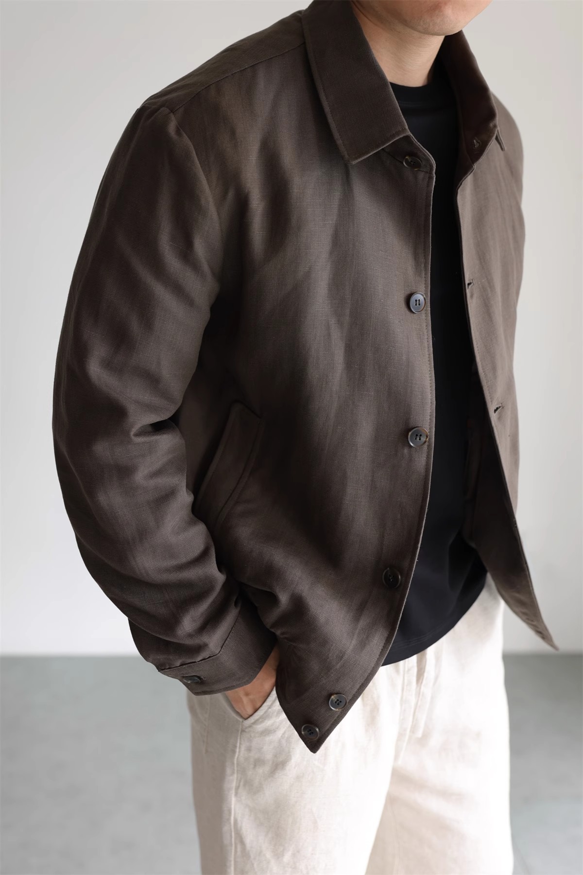가볍고 윤기나는 부드러운 라펠 재킷 남성 캐주얼 비즈니스 코트 봄 가을스토어 가기