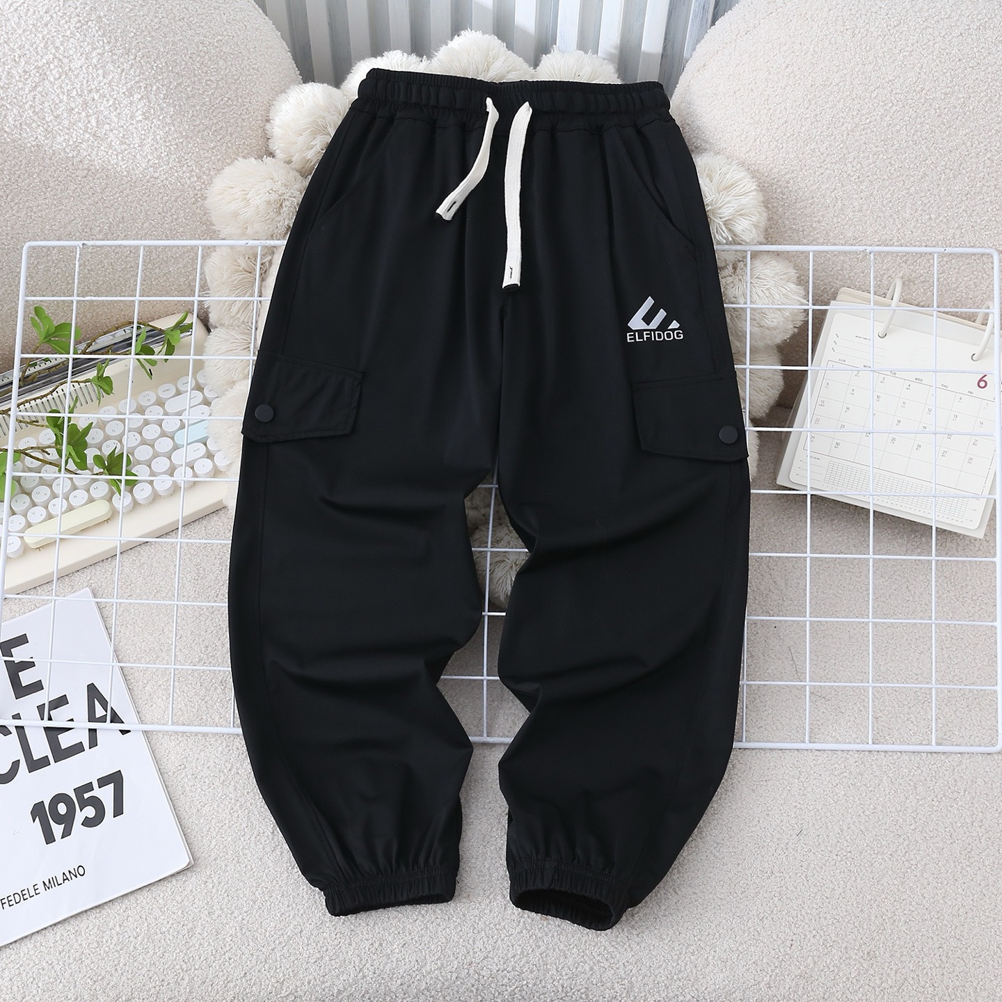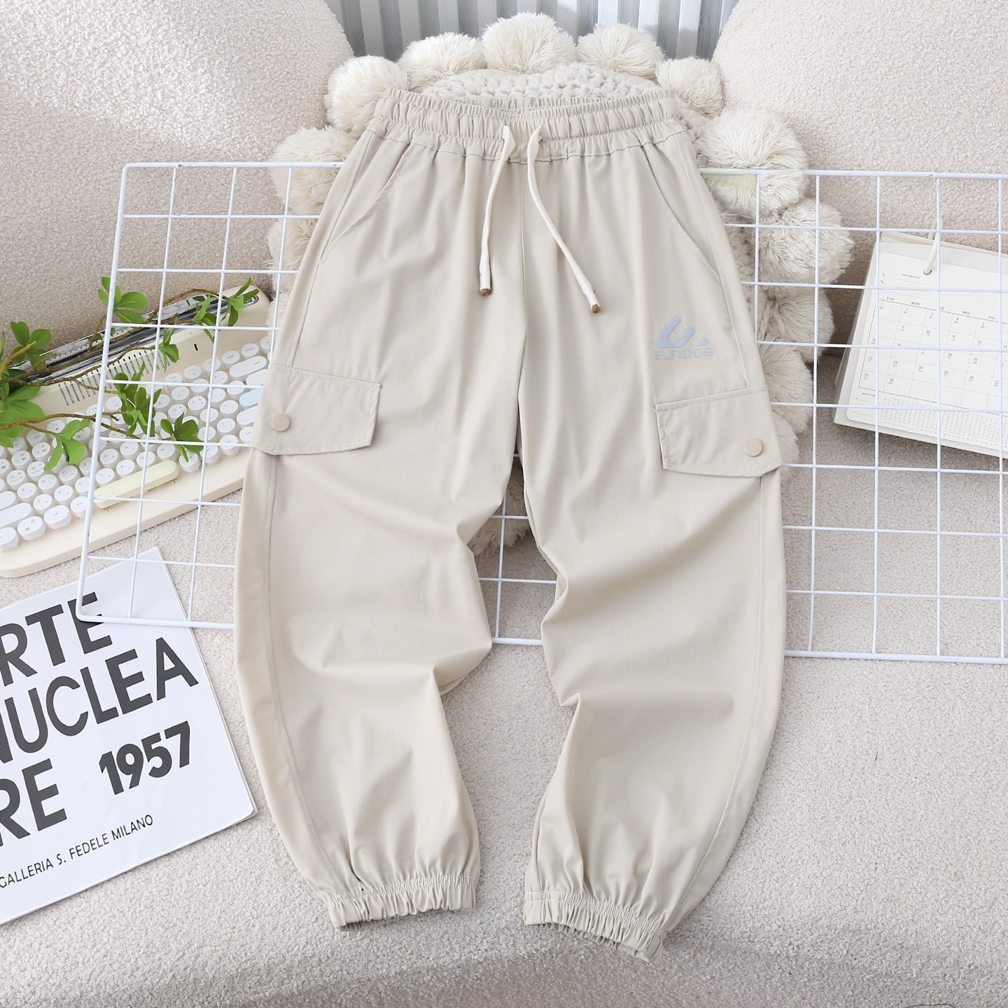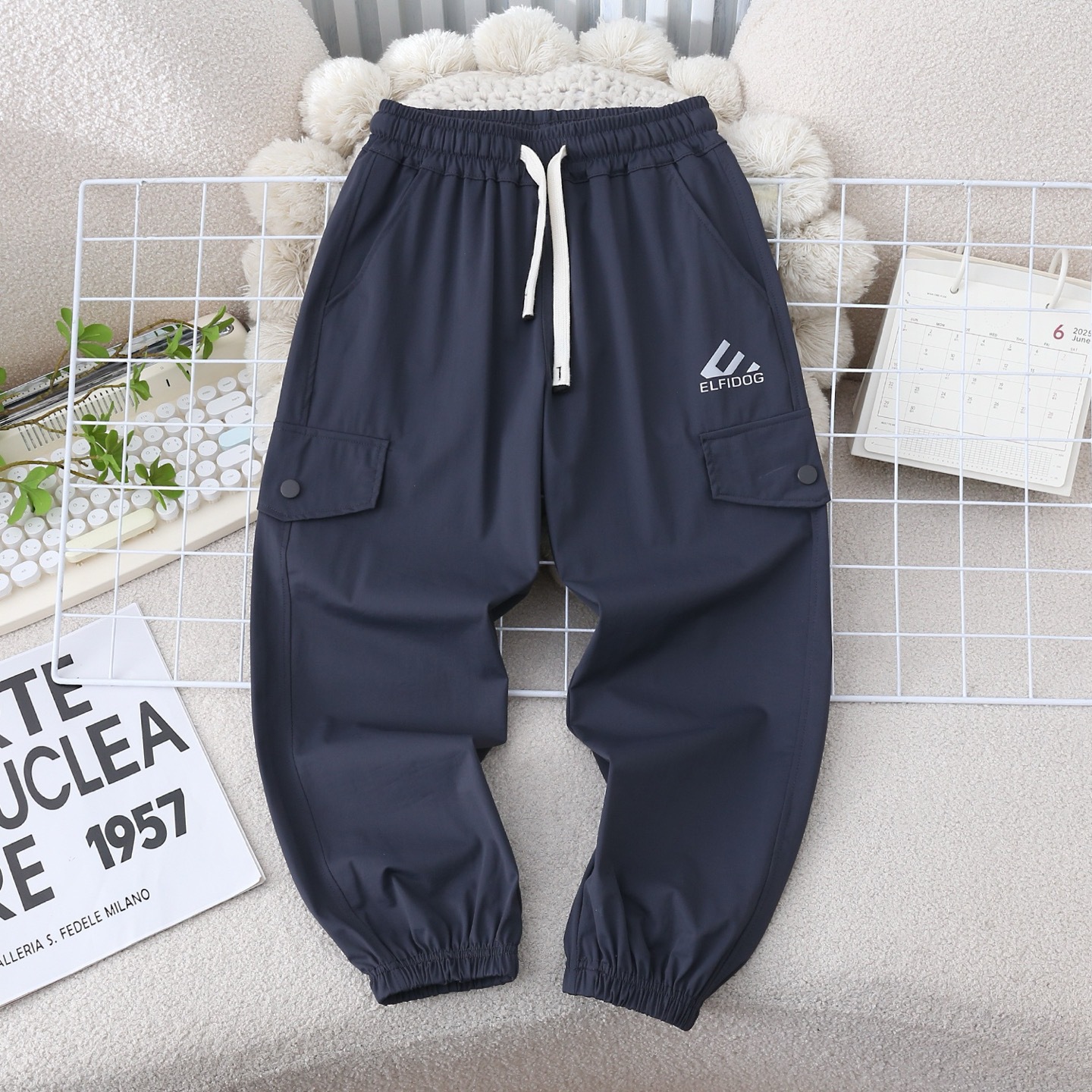 2025 남성과 여성을위한 여름 어린이 캐주얼 바지 스트레치 짠 빠른 건조 바지 한국식 편지 작업 바지스토어 가기