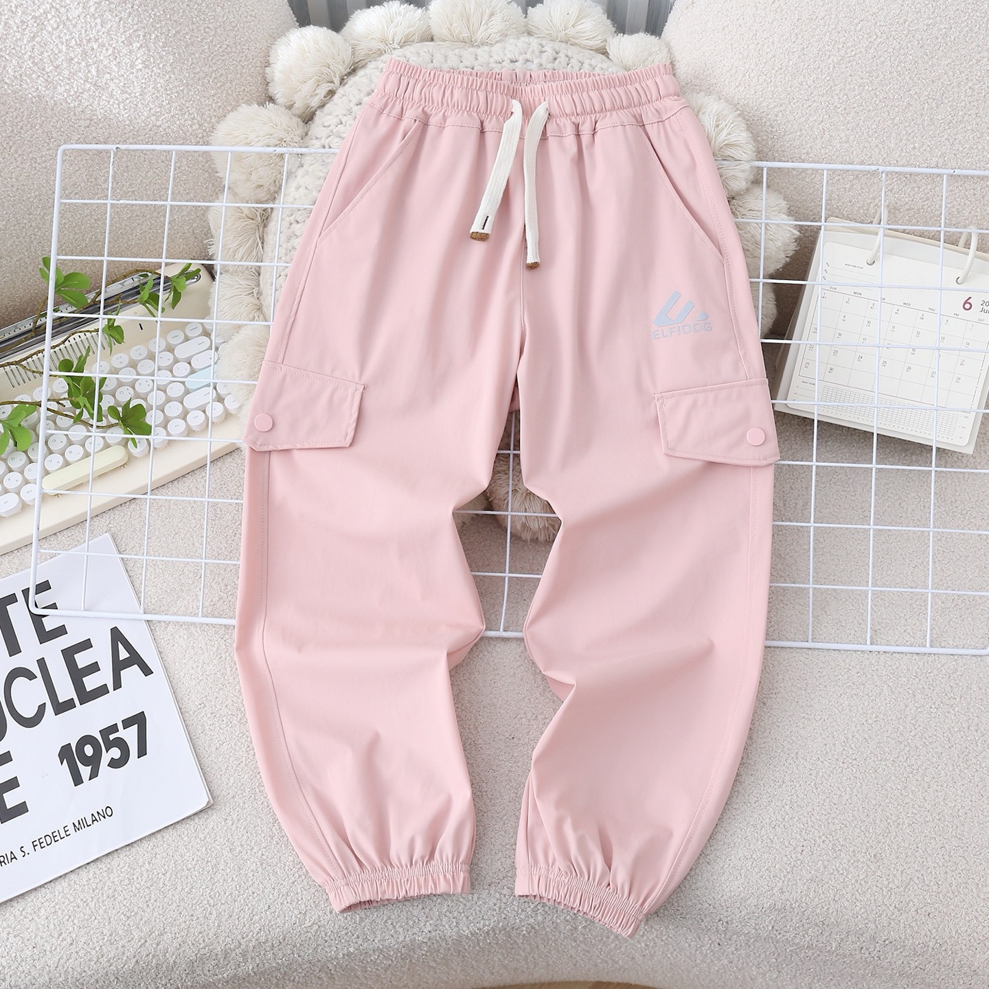 2025 남성과 여성을위한 여름 어린이 캐주얼 바지 스트레치 짠 빠른 건조 바지 한국식 편지 작업 바지