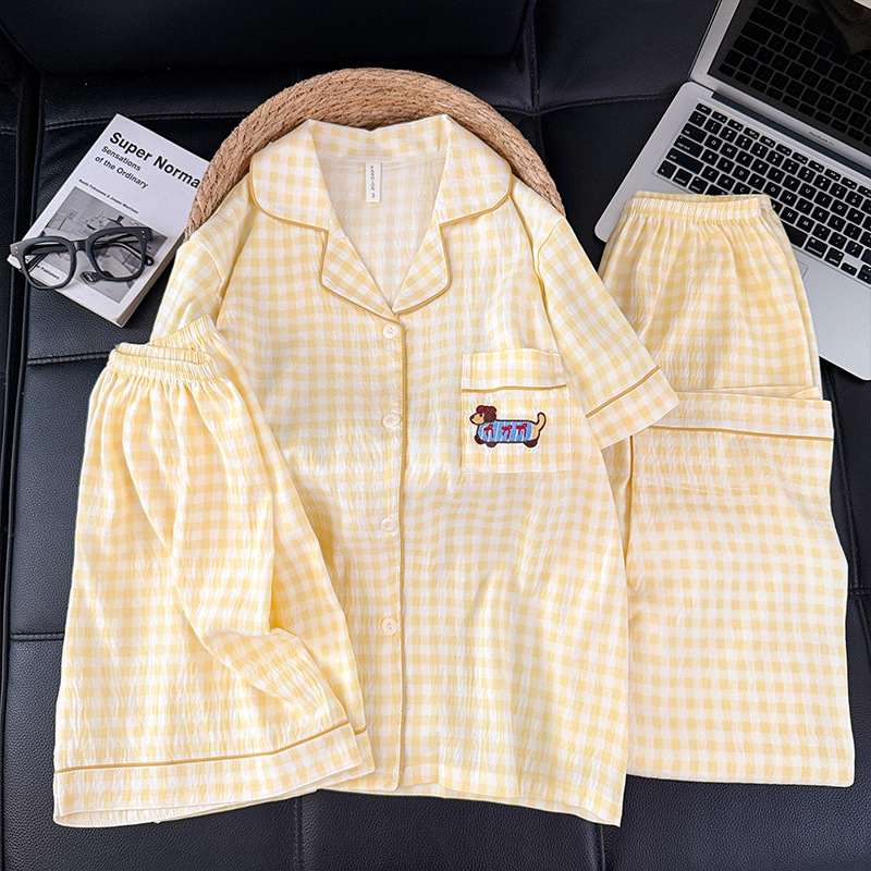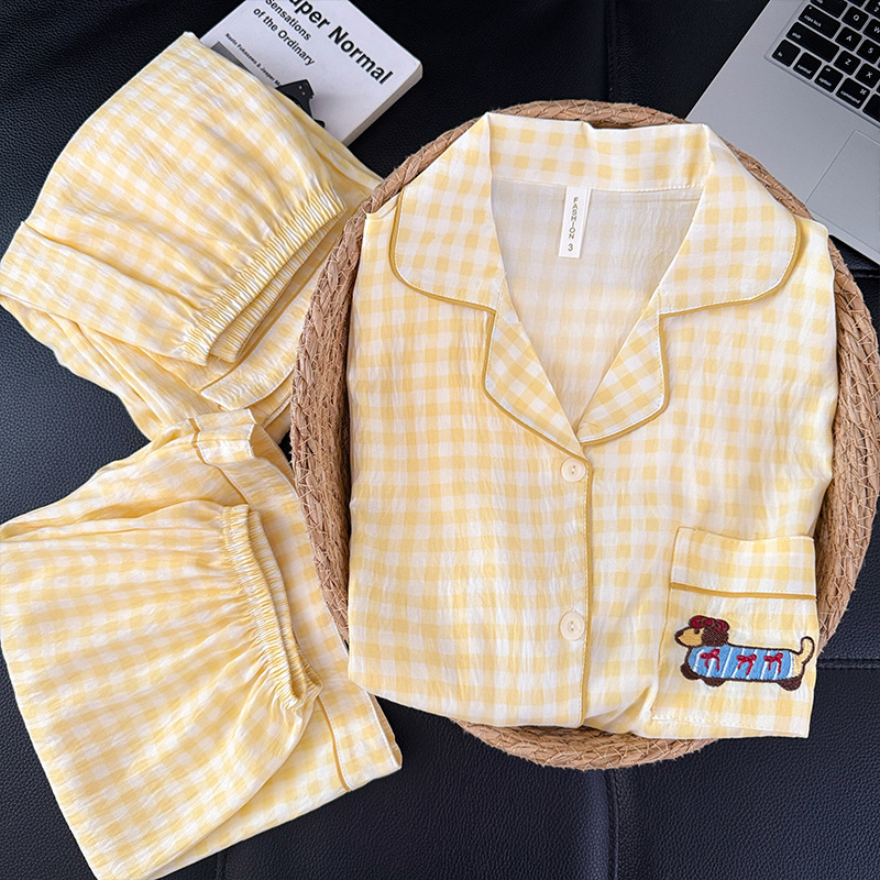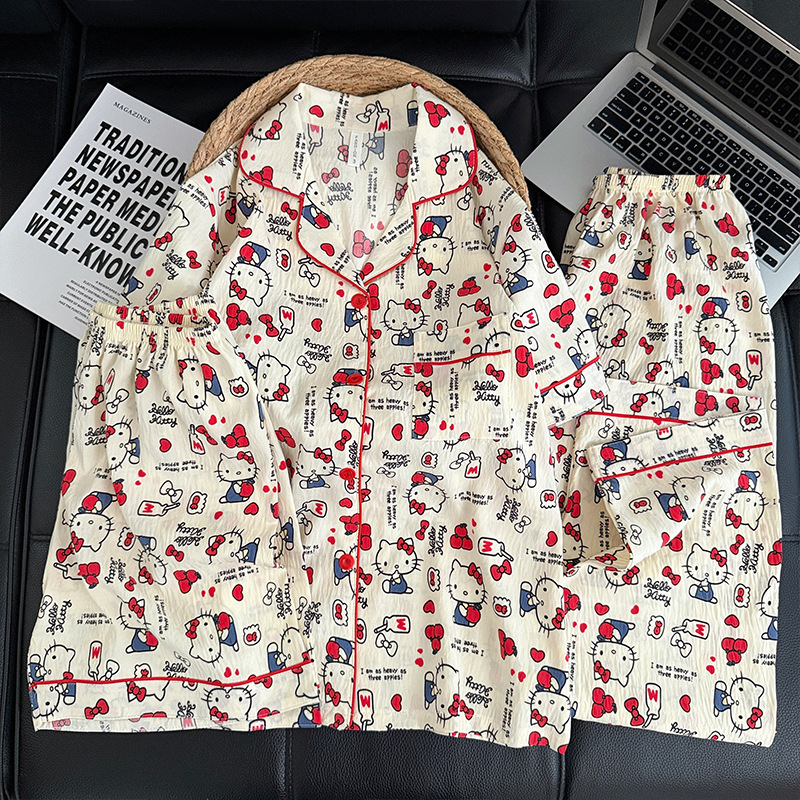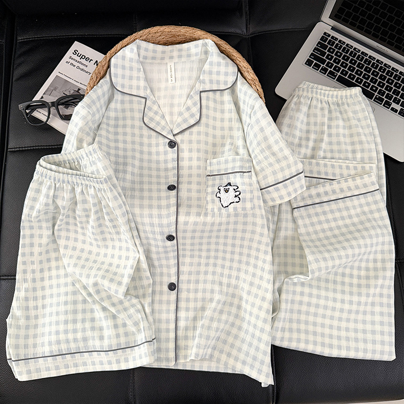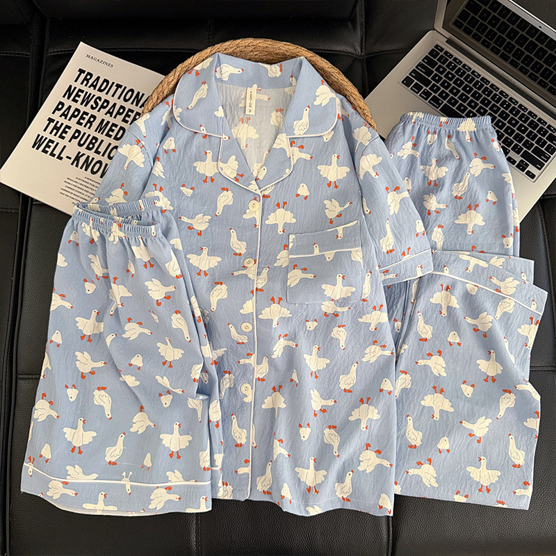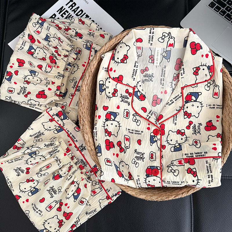 3 피스 세트-여름 새로운 여성 잠옷 구름면 짧은 소매 바지 달콤한 만화 홈 의류 세트 라이브스토어 가기