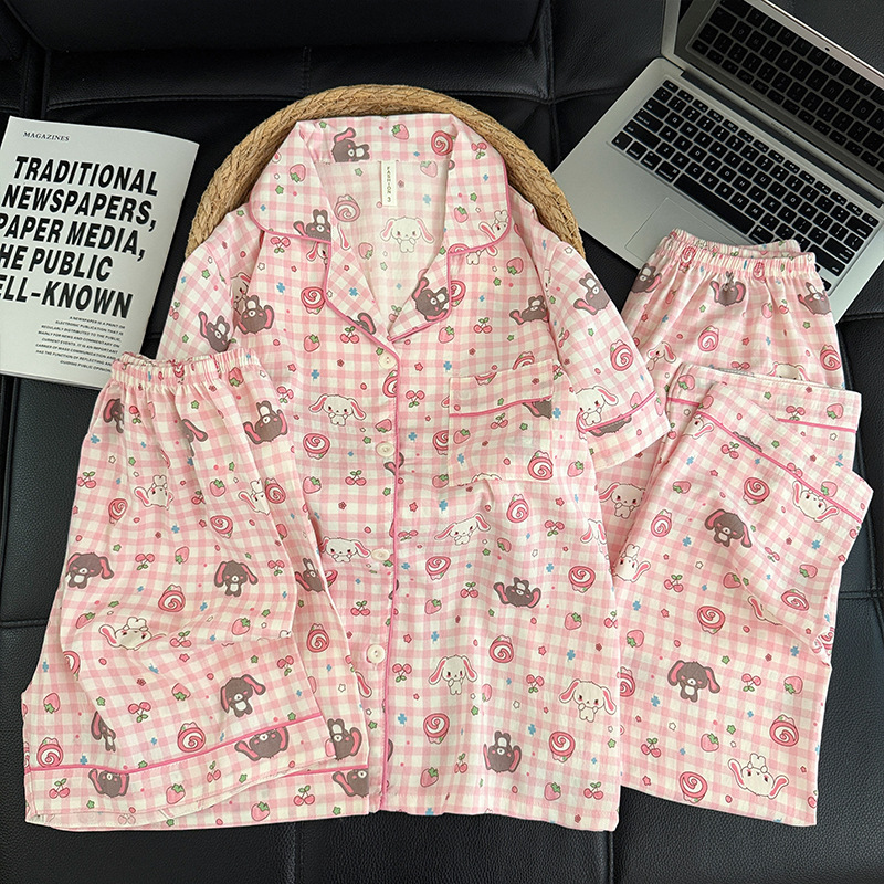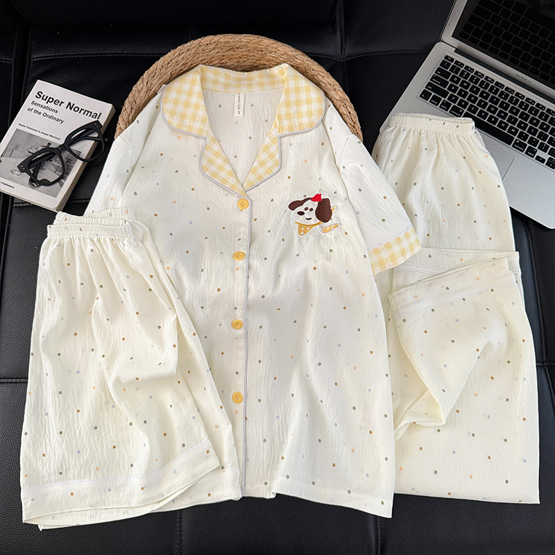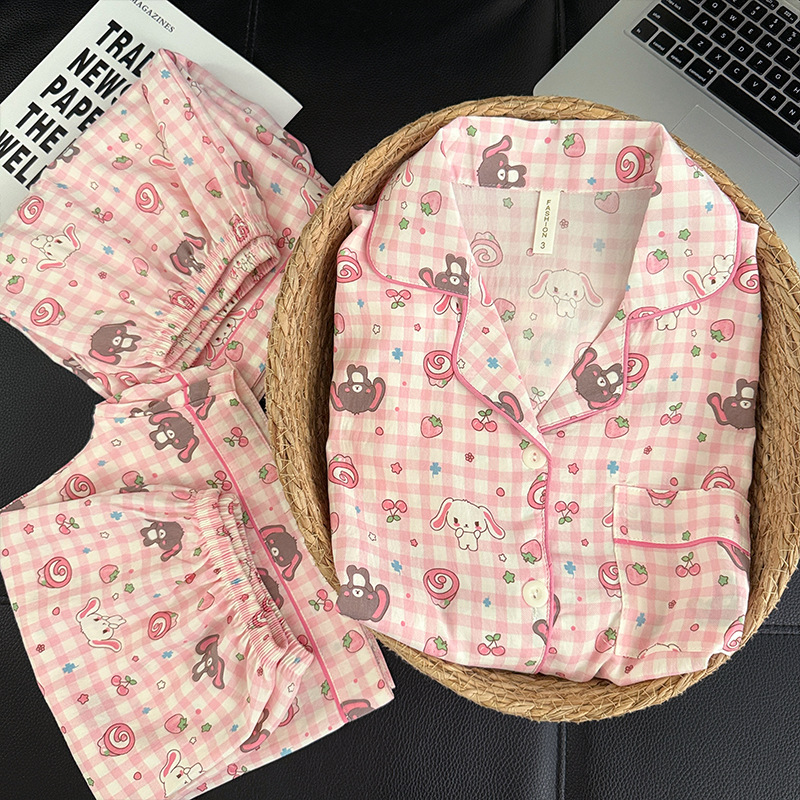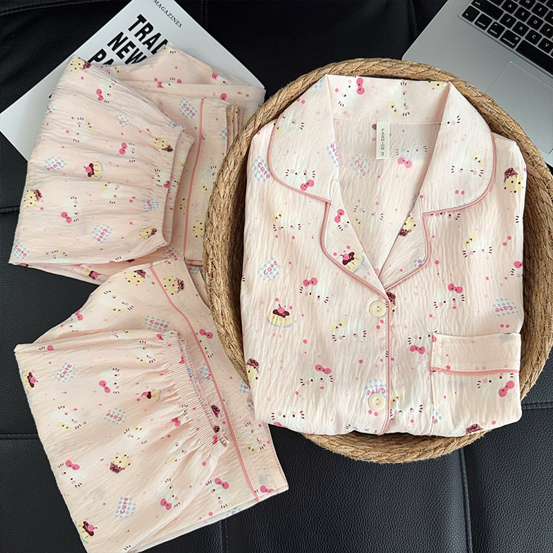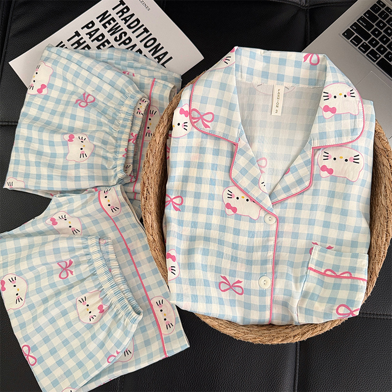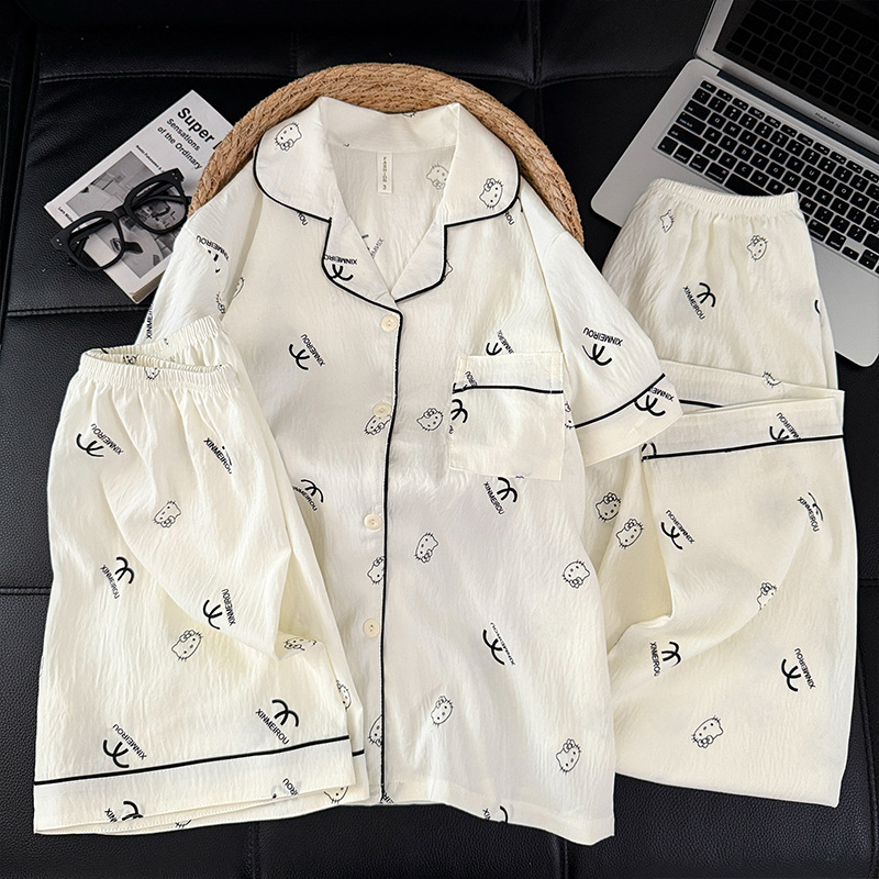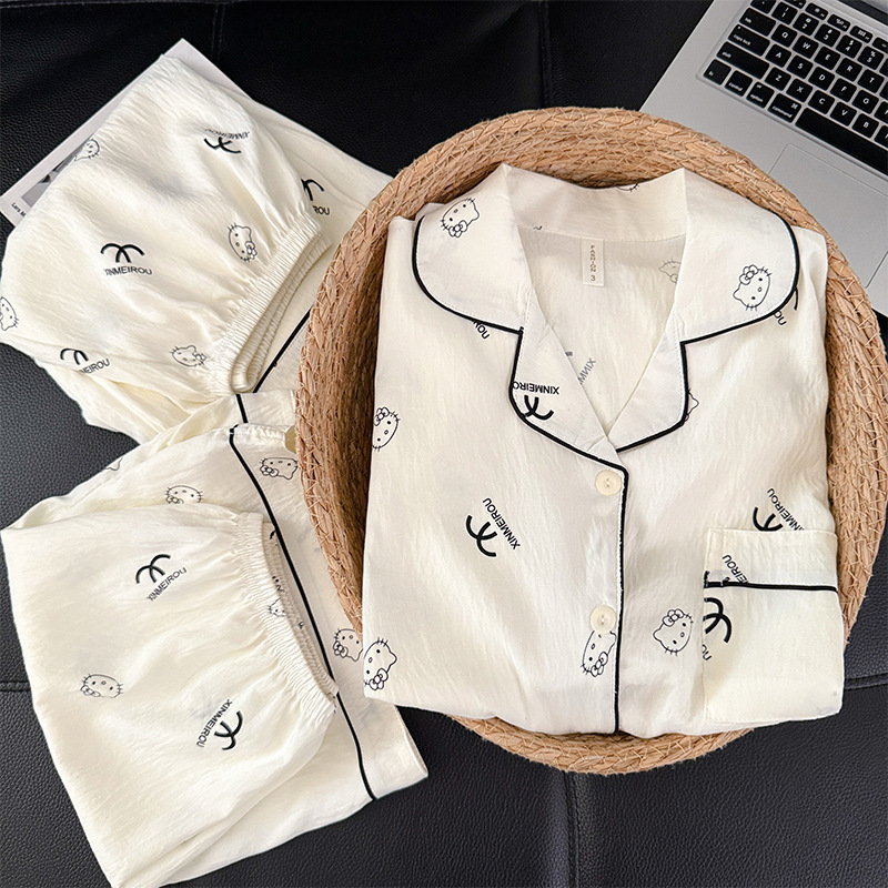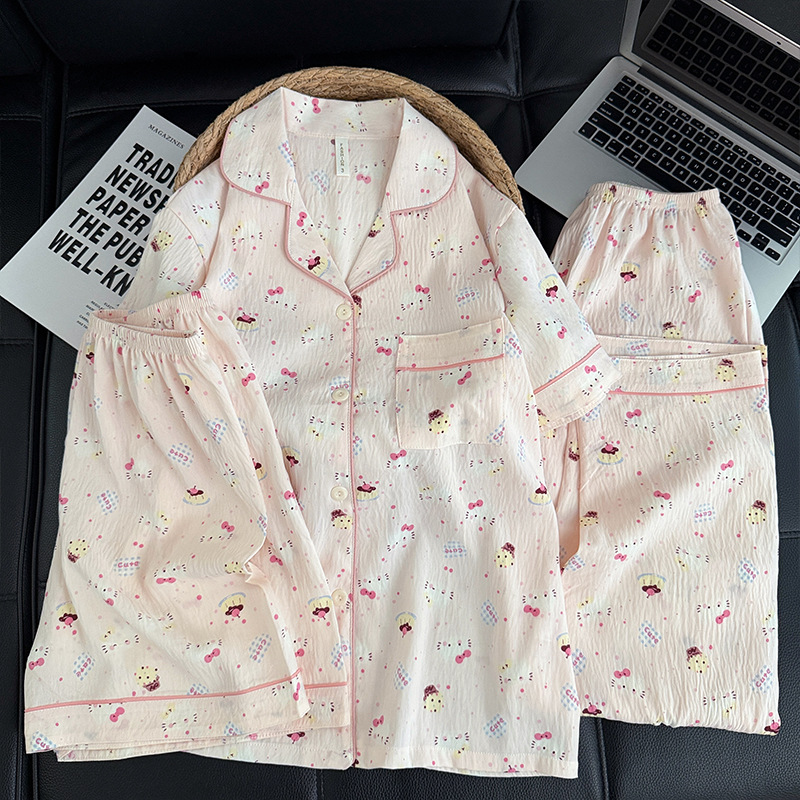 3 피스 세트-여름 새로운 여성 잠옷 구름면 짧은 소매 바지 달콤한 만화 홈 의류 세트 라이브