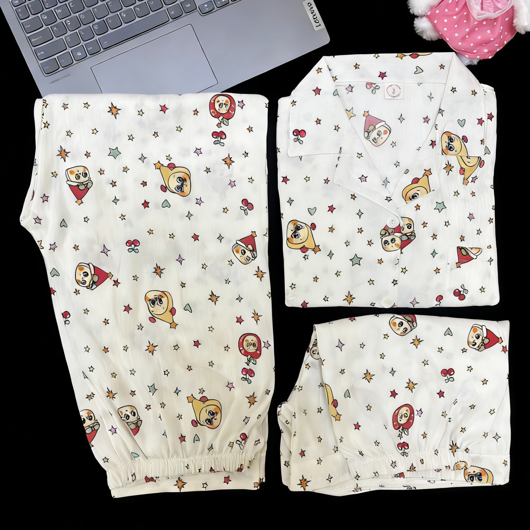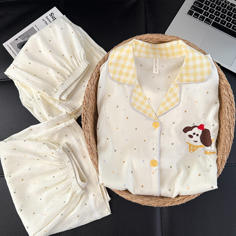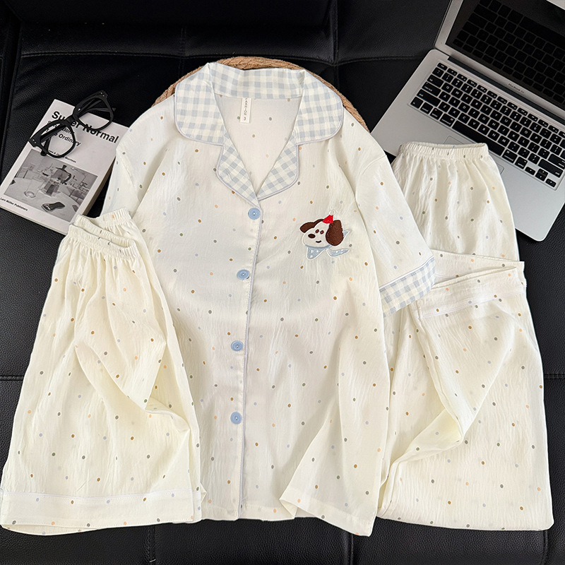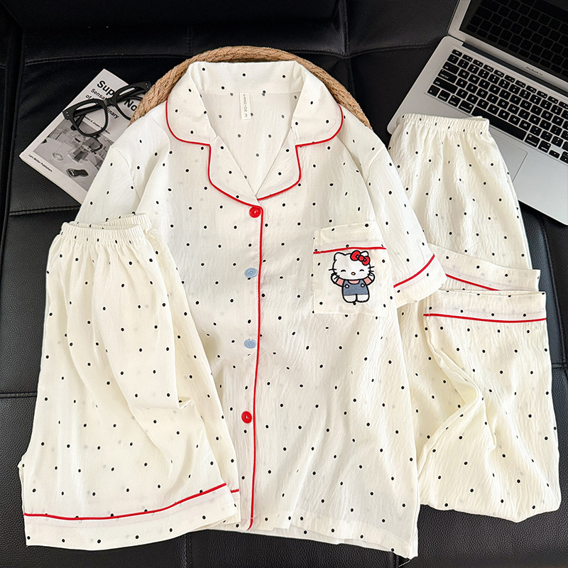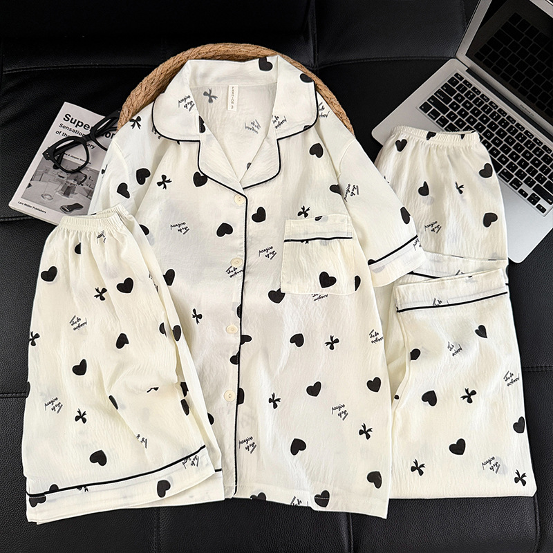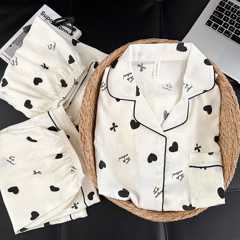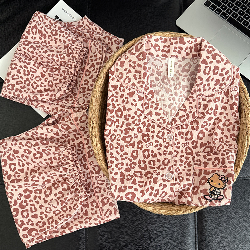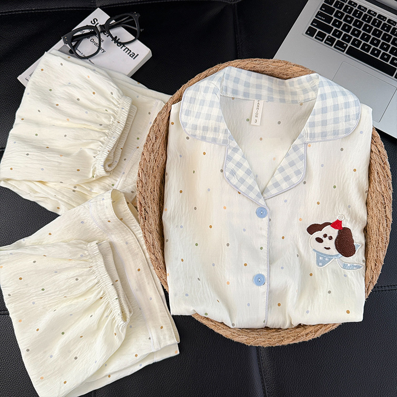 3 피스 세트-여름 새로운 여성 잠옷 구름면 짧은 소매 바지 달콤한 만화 홈 의류 세트 라이브