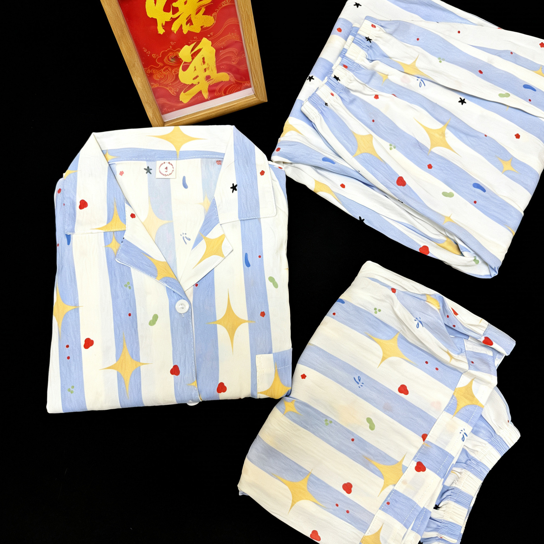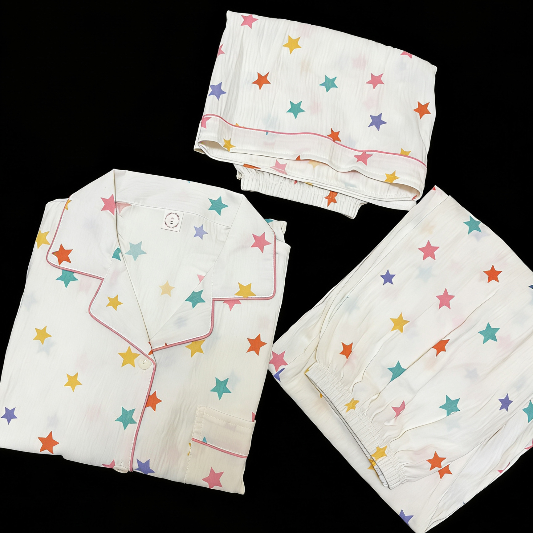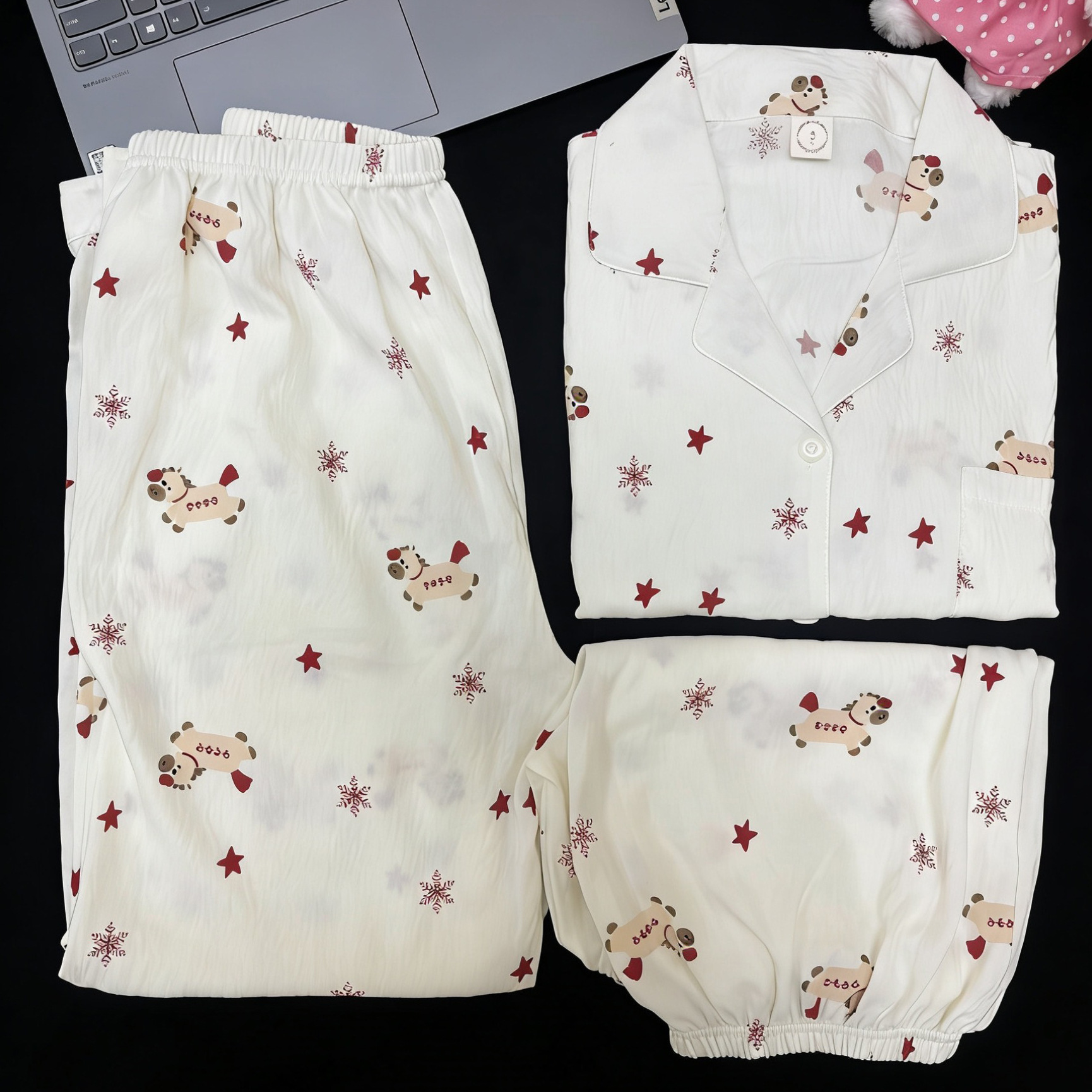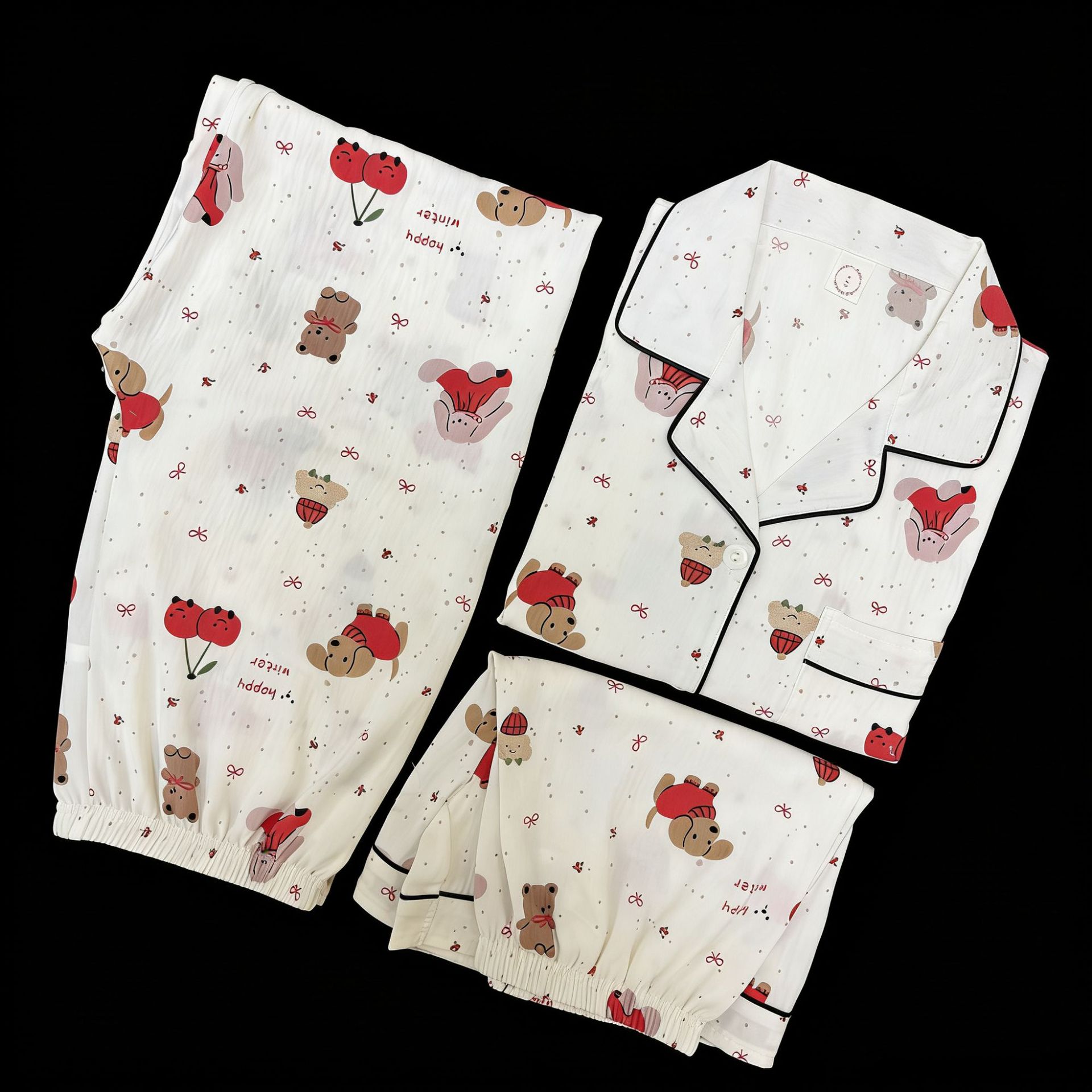3 피스 세트-여름 새로운 여성 잠옷 구름면 짧은 소매 바지 달콤한 만화 홈 의류 세트 라이브