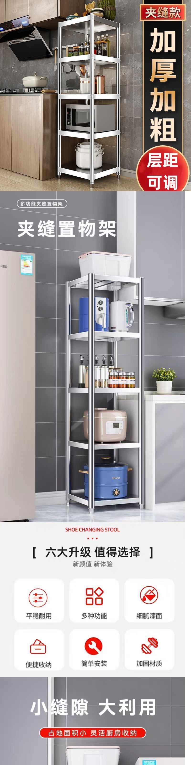 스테인레스 스틸 선반 보관 랙 주방 바닥에서 천장까지 다층 선반 슬롯 소형 가정용 발코니 좁은 스타일 보관 랙