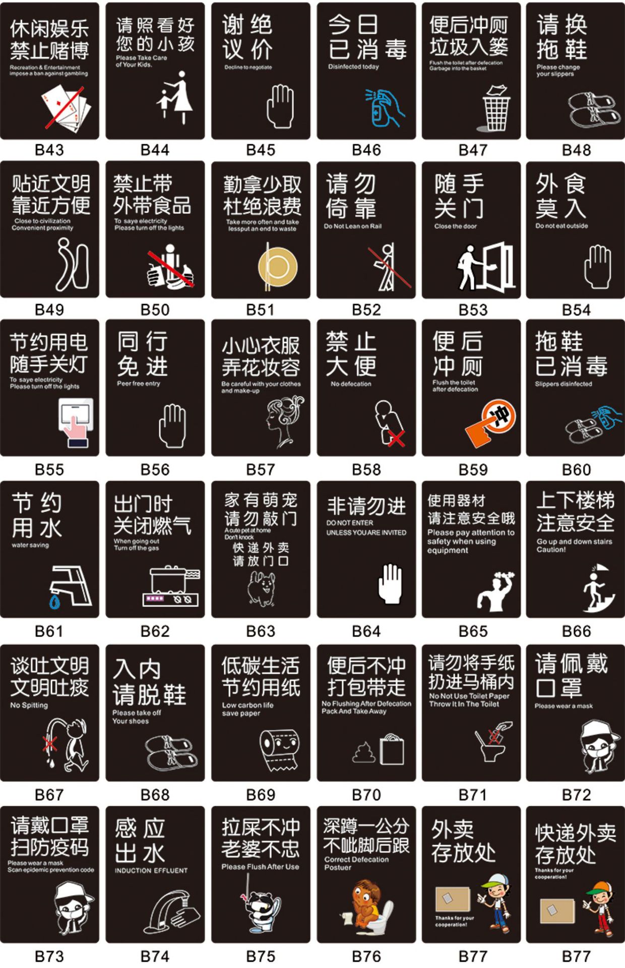 • 검정색 - 화장지를 변기에 버리지 마세요 - 13x18cm