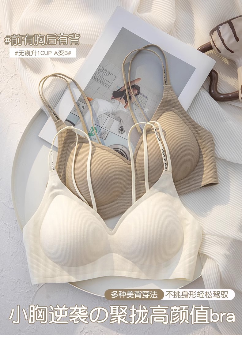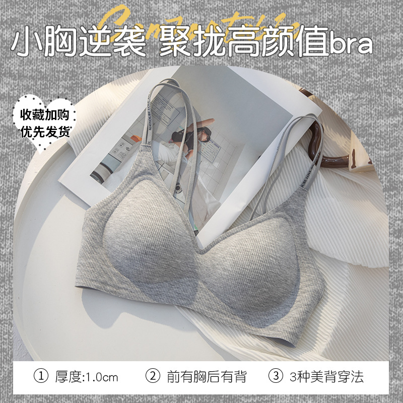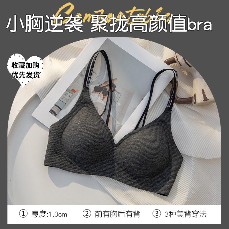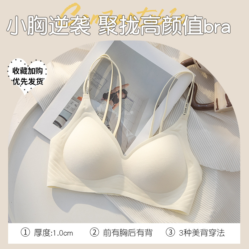 비자성 속옷, 여성용 여름 얇은 작은 가슴 푸시업 노와이어 스파게티 스트랩 학생용 아름다운 등 브라스토어 가기