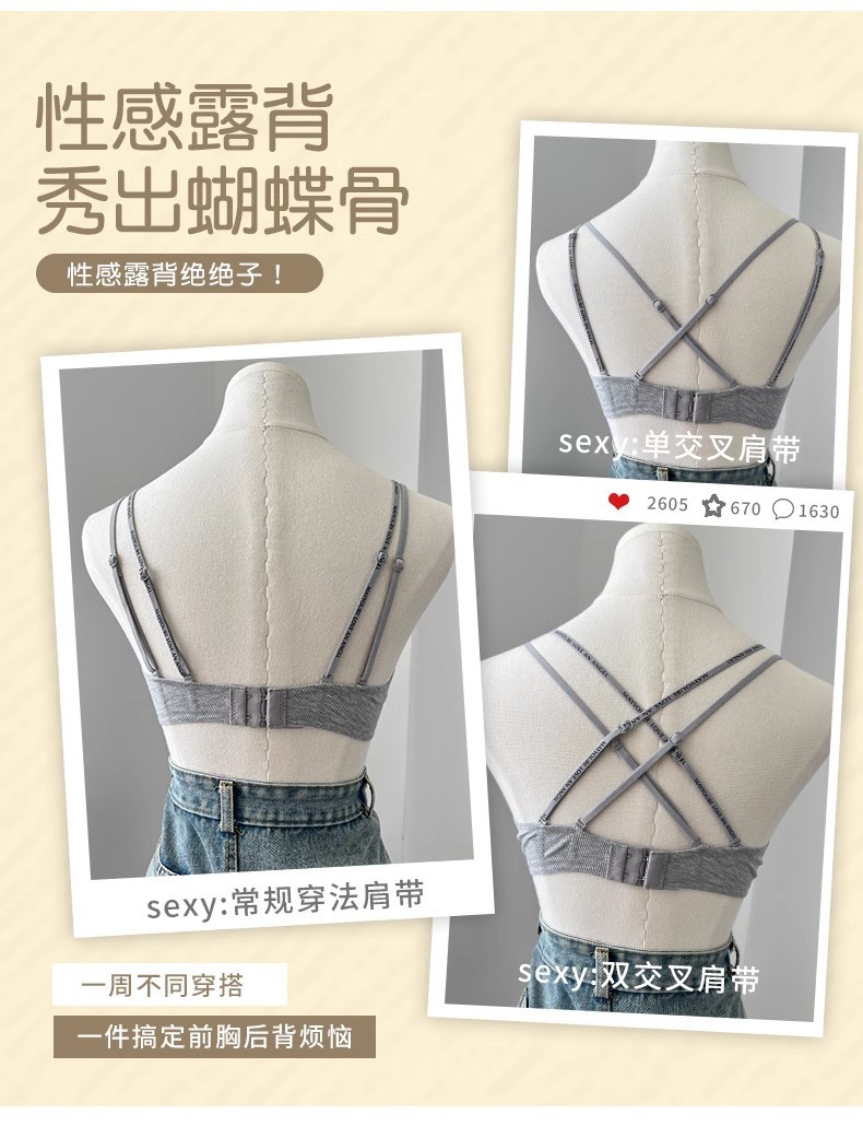 비자성 속옷, 여성용 여름 얇은 작은 가슴 푸시업 노와이어 스파게티 스트랩 학생용 아름다운 등 브라
