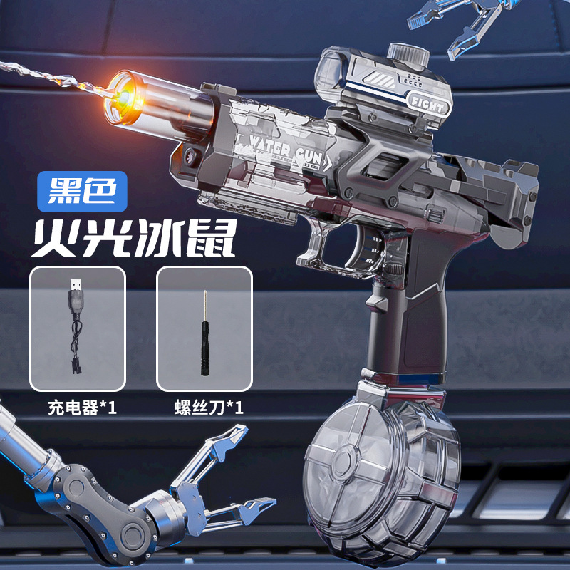 불빛 얼음 마우스 폭발 전기 물 총 어린이 장난감 물 스프레이 고압 전력 장거리 2025 새로운 물총