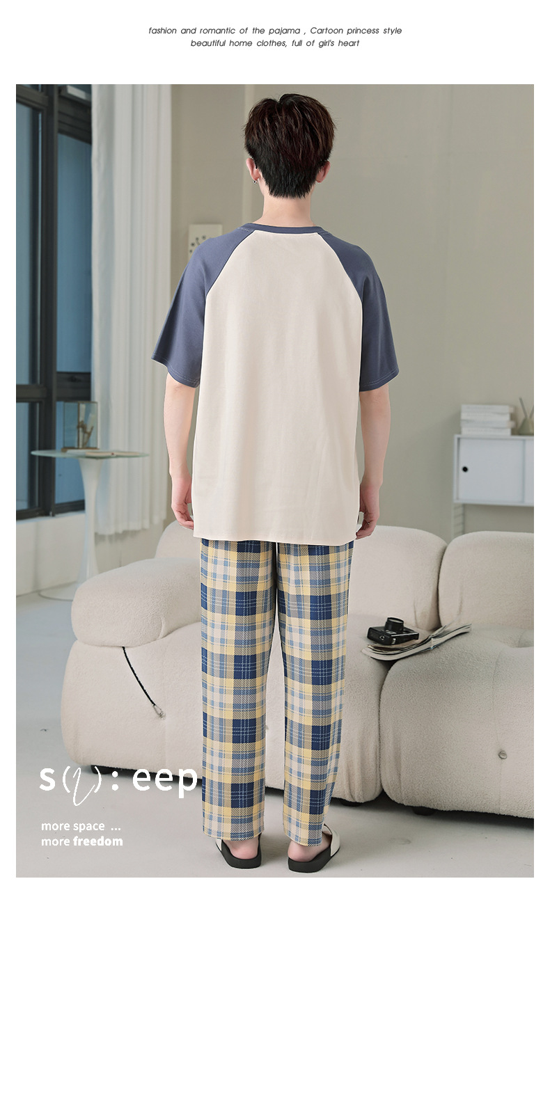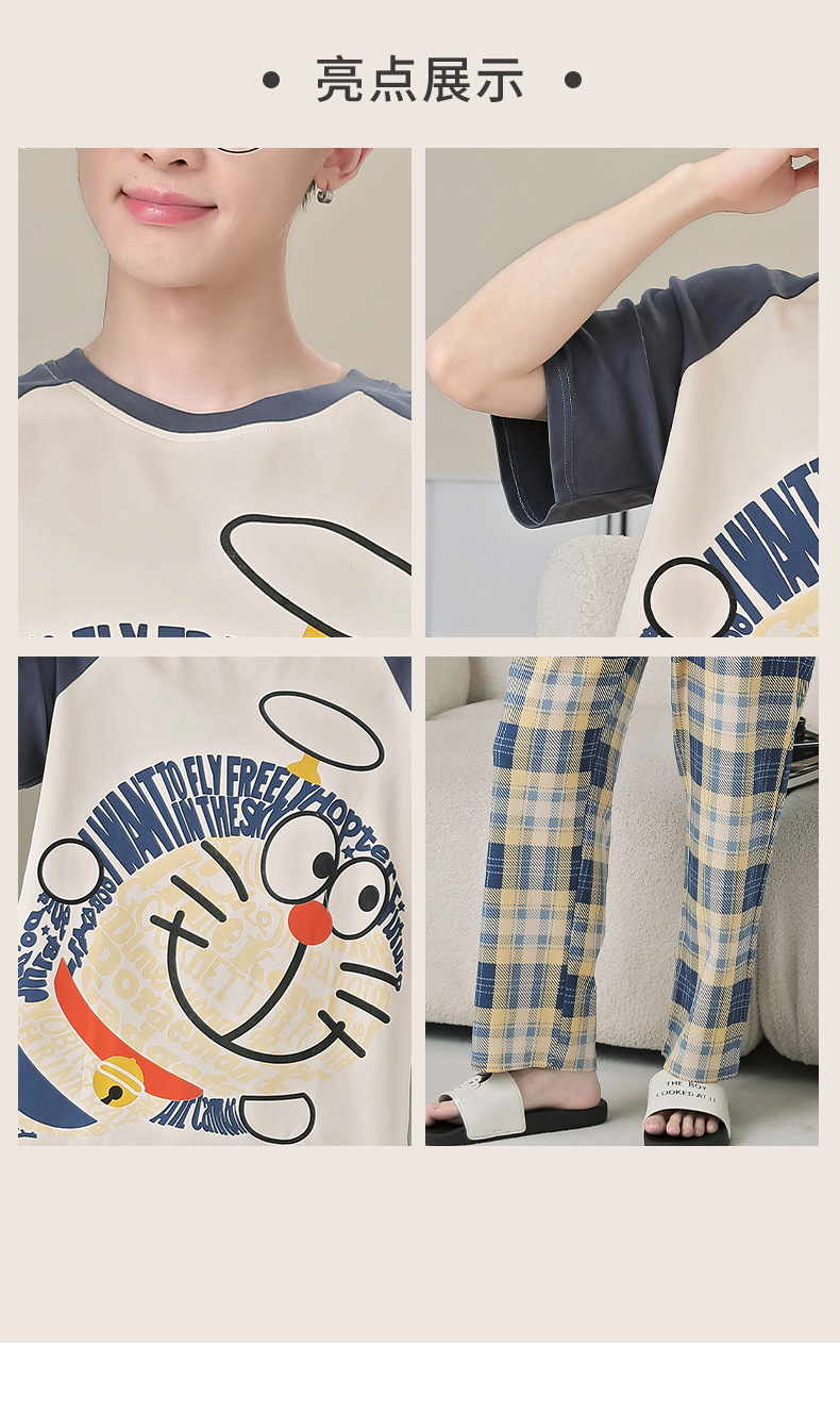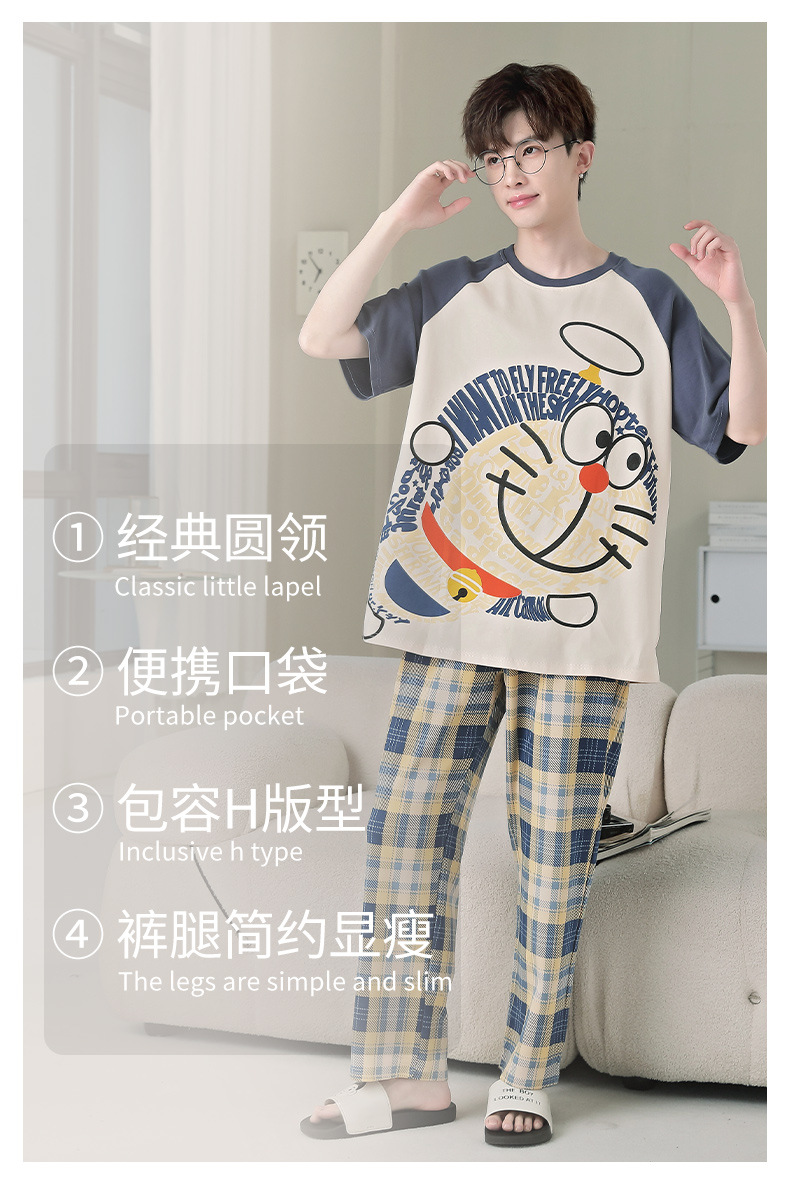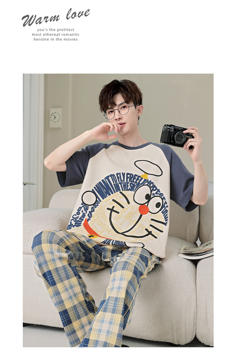 남성 잠옷 여름 순수 코튼 반팔 2025 새로운 얇은 청소년 바지 만화 대형 홈웨어 세트스토어 가기