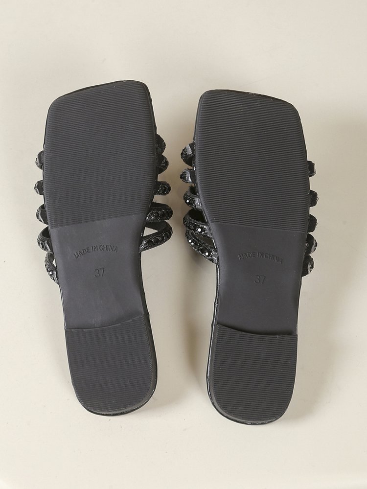 플러스 사이즈 샌들 여자 2025 년 여름 새로운 스퀘어 헤드 라인 스톤 플랫 바닥 1 페달 비치 슬리퍼 달콤한 도매 대외 무역