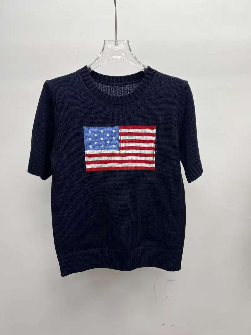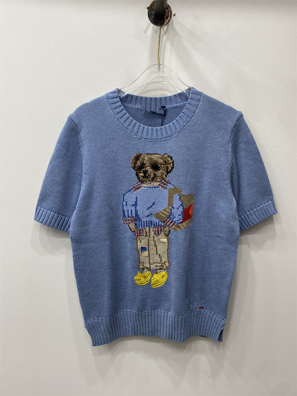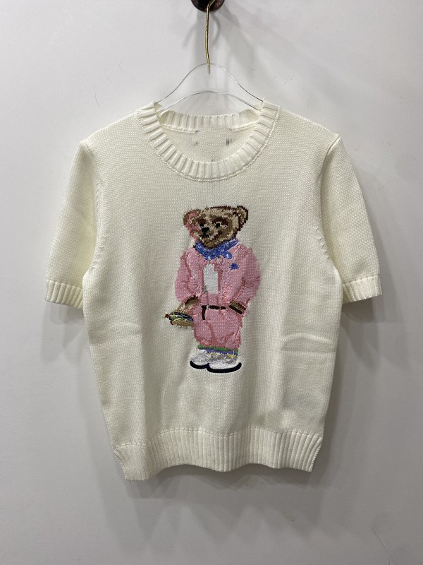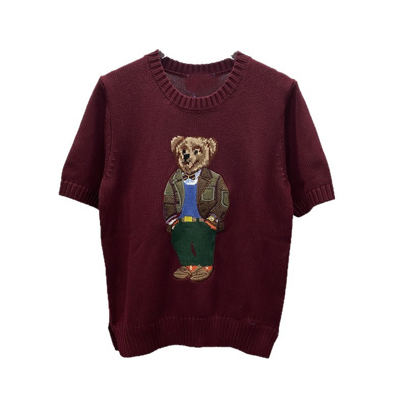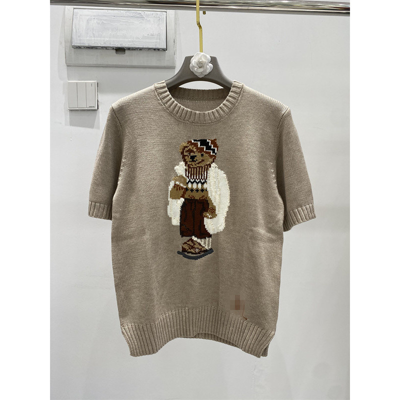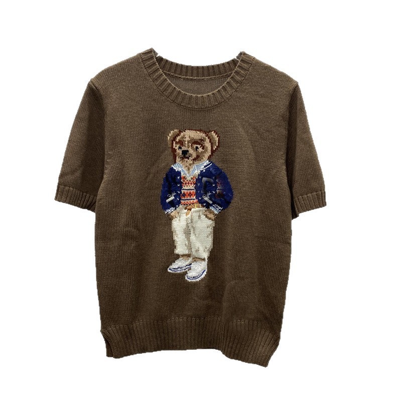 고품질의 새로운 만화 자카드 곰 스웨터 여성용 반팔 탑 2025 핫 스타일 대외 무역 AliExpress 여성 의류