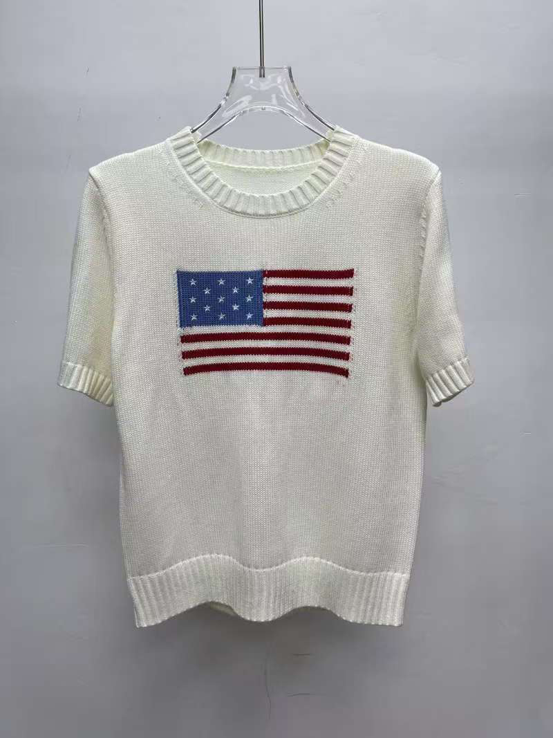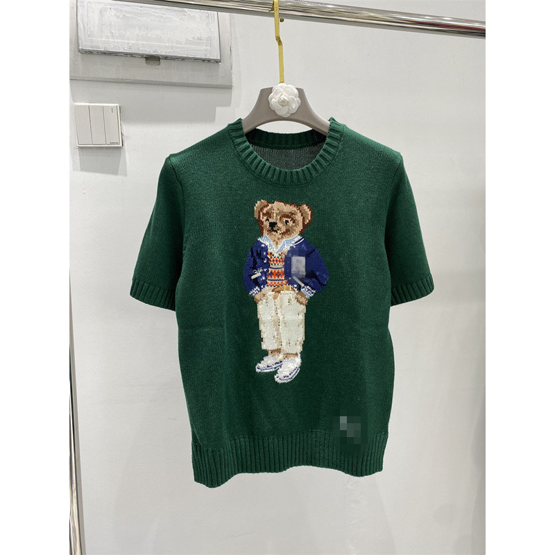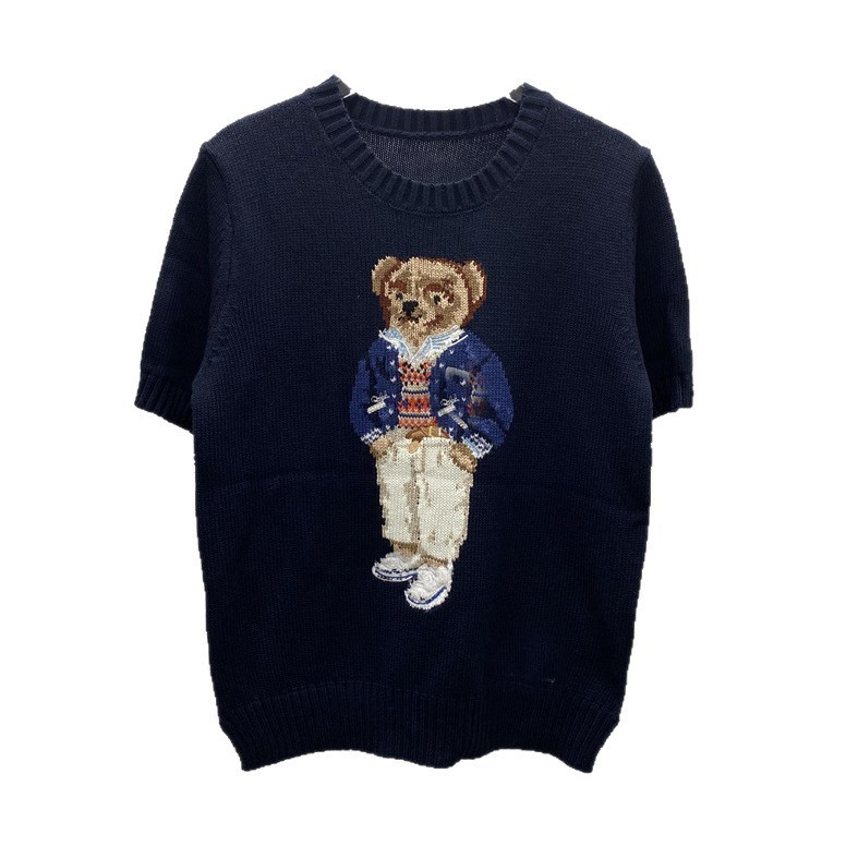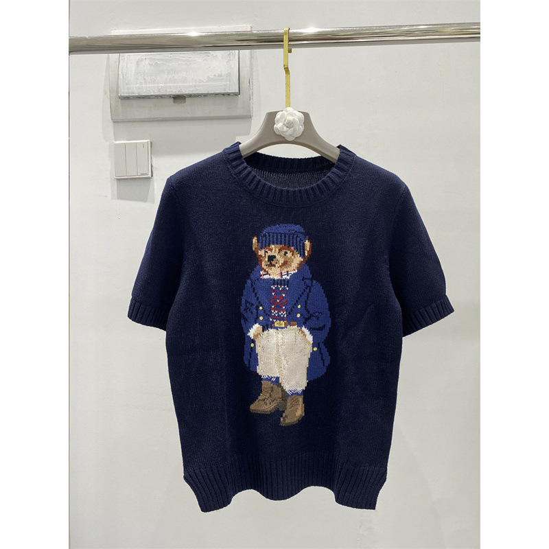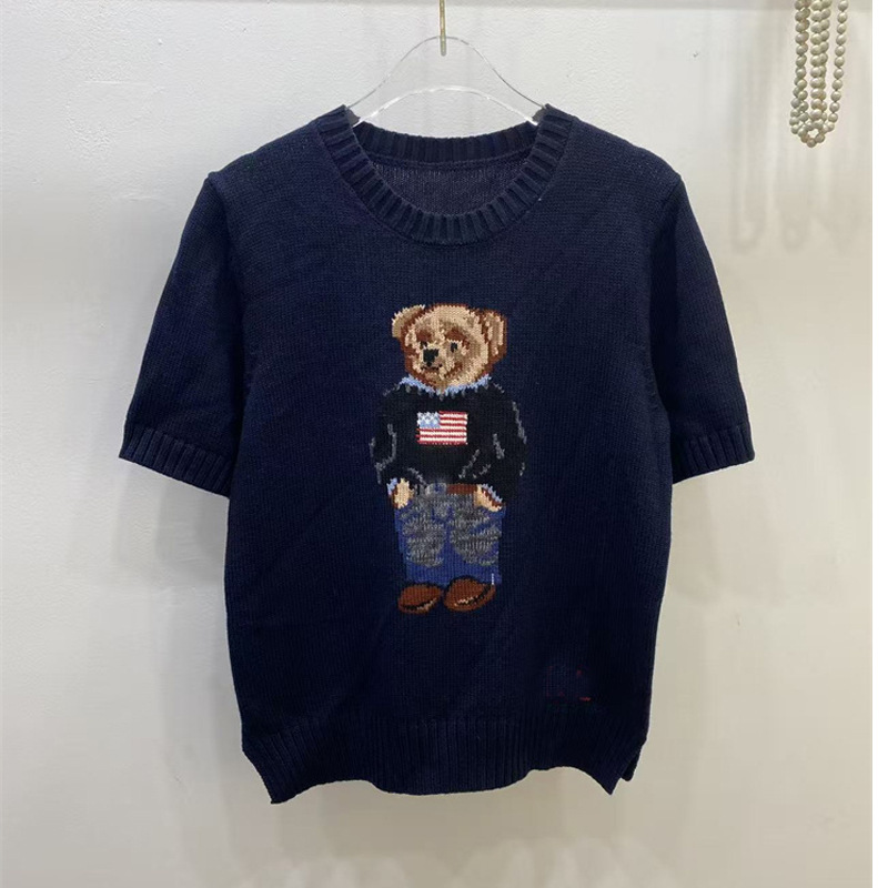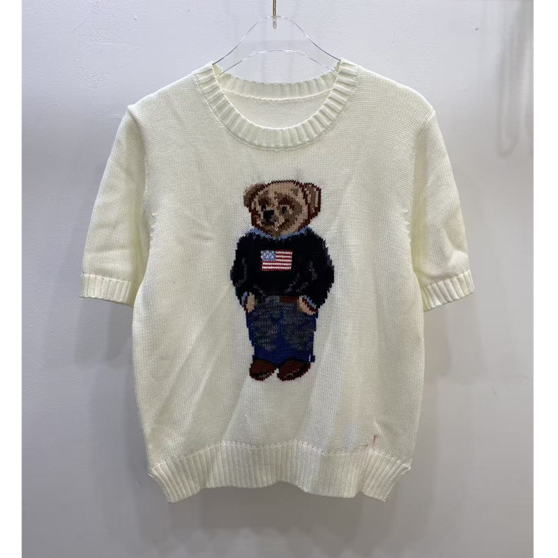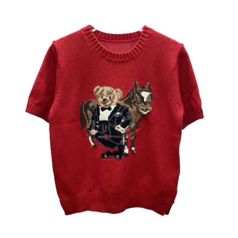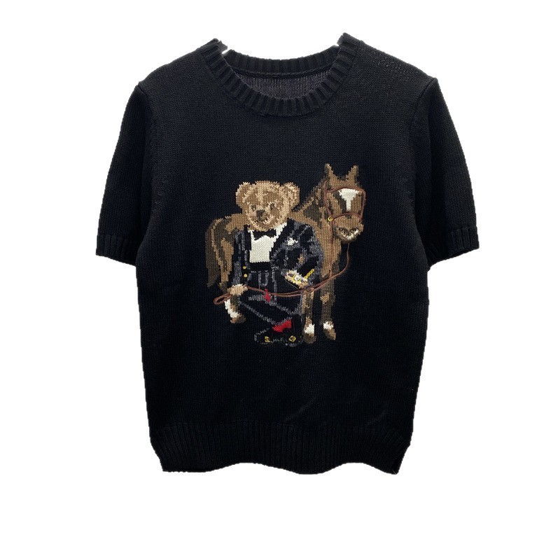 고품질의 새로운 만화 자카드 곰 스웨터 여성용 반팔 탑 2025 핫 스타일 대외 무역 AliExpress 여성 의류스토어 가기