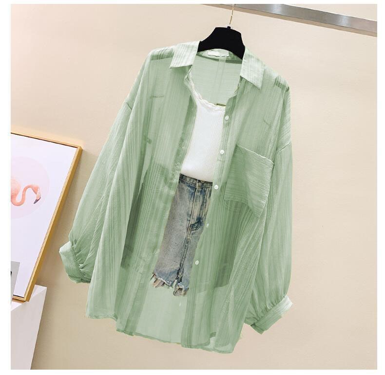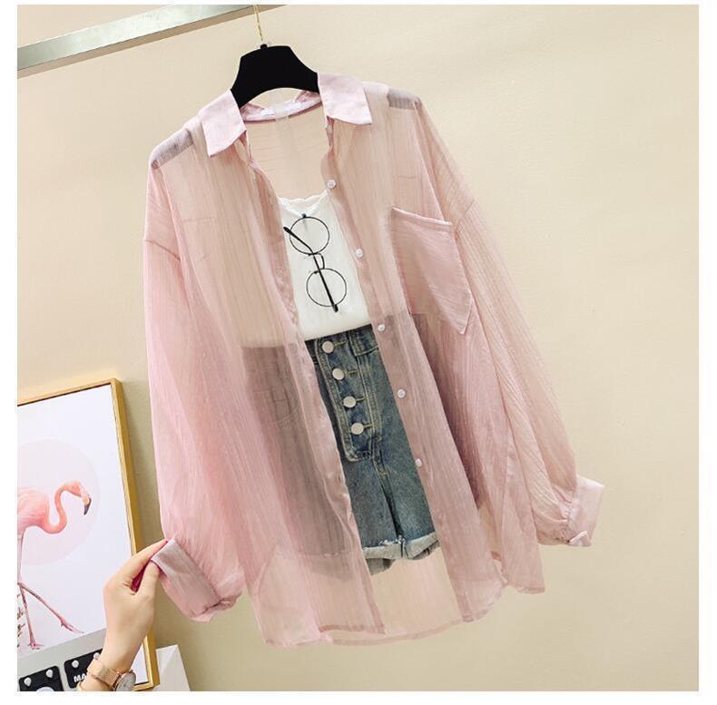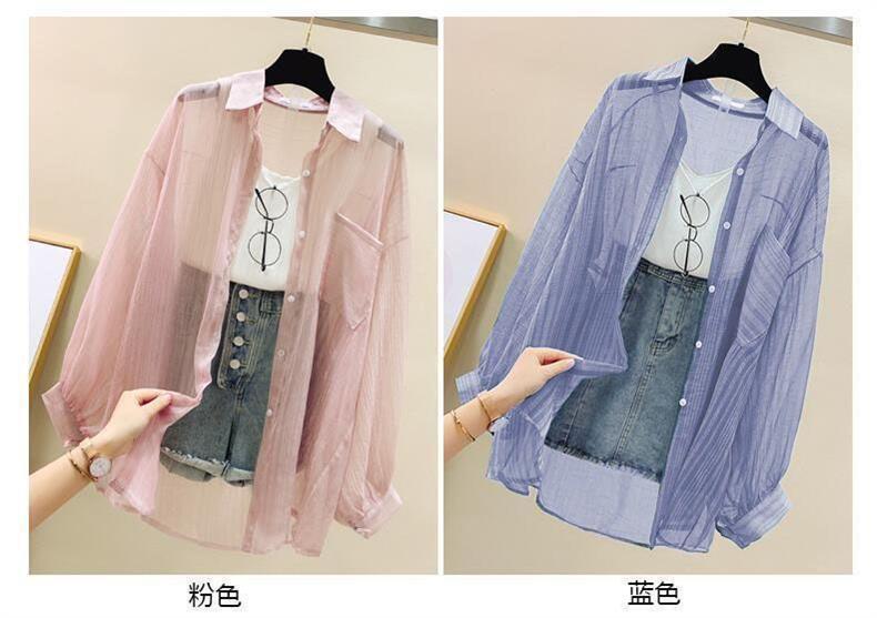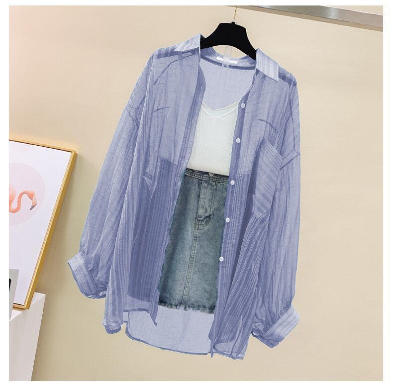 시폰 긴팔 셔츠 여성용 여름 원피스 카디건 얇은 셔츠 올 매치 루즈 탑 디자인 에어컨 셔츠