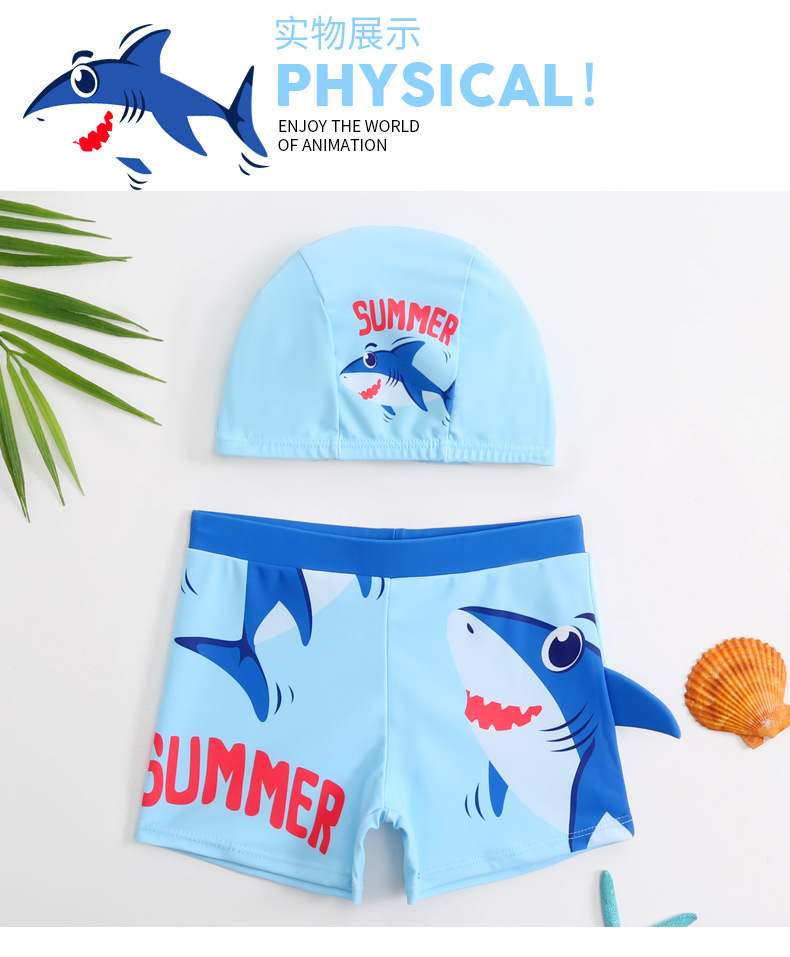 2025 어린이 소년 아기 소년 수영 trunks 어린이 만화 상어 수영복 수영 trunks 유럽과 미국 도매스토어 가기