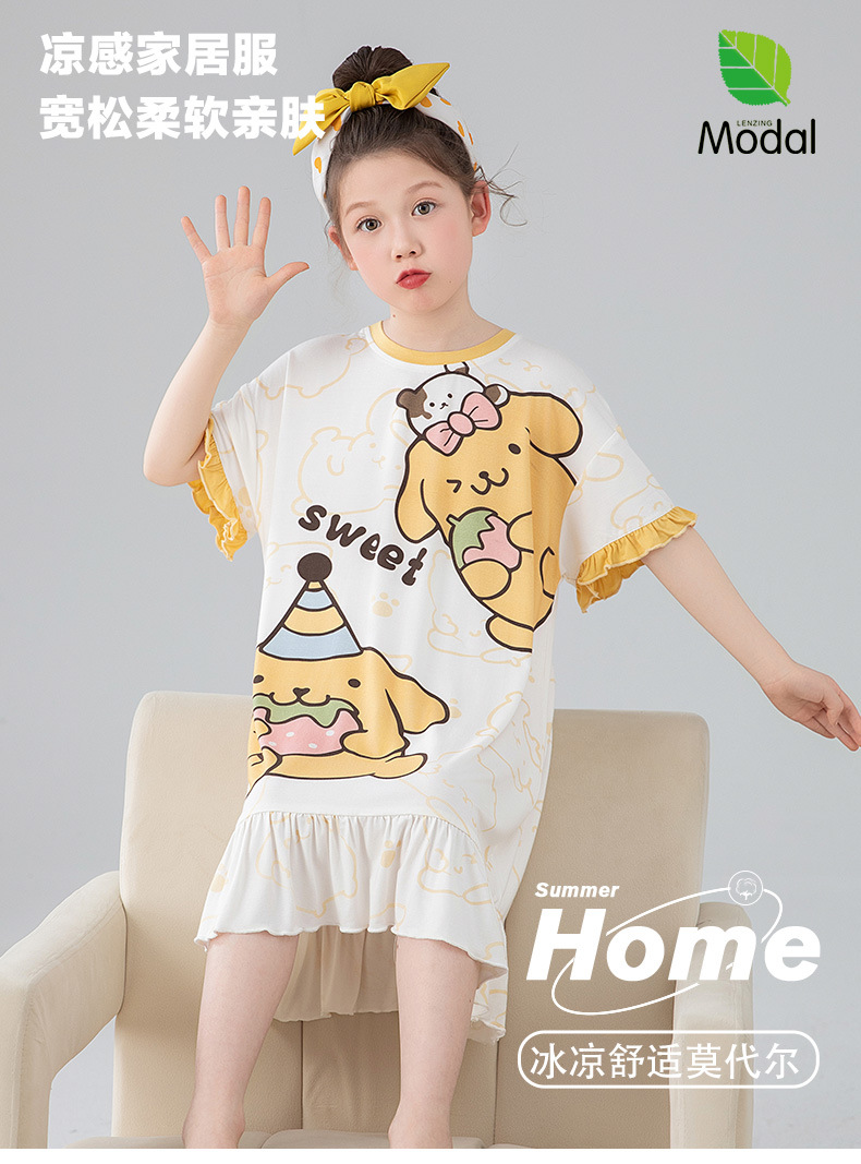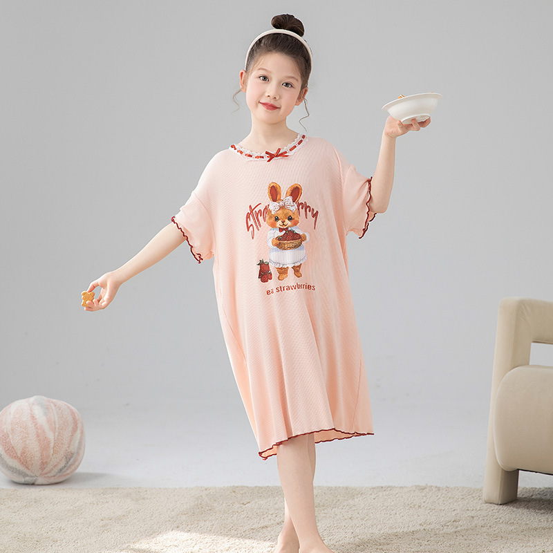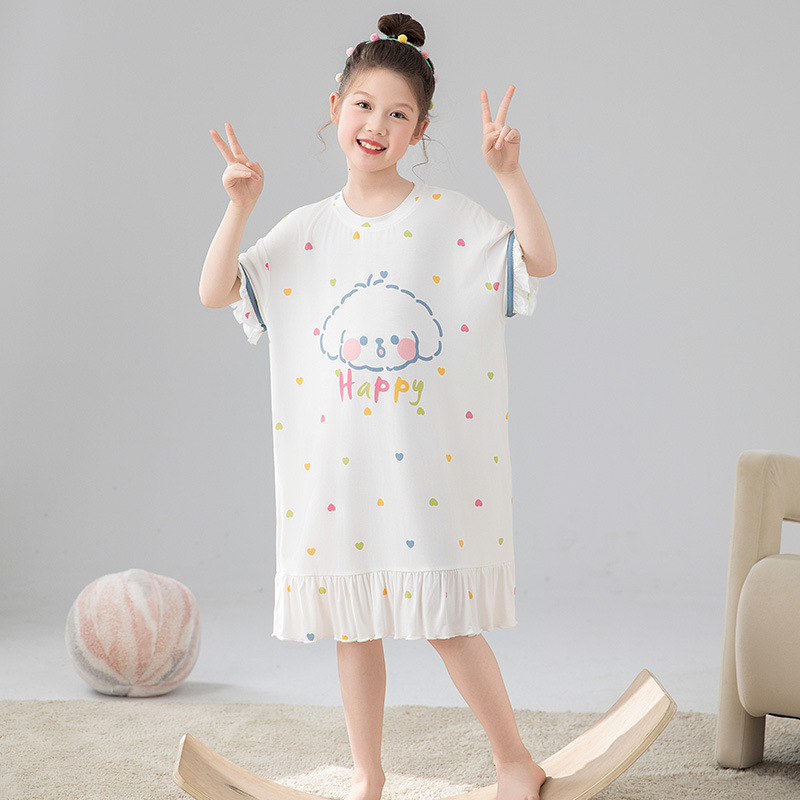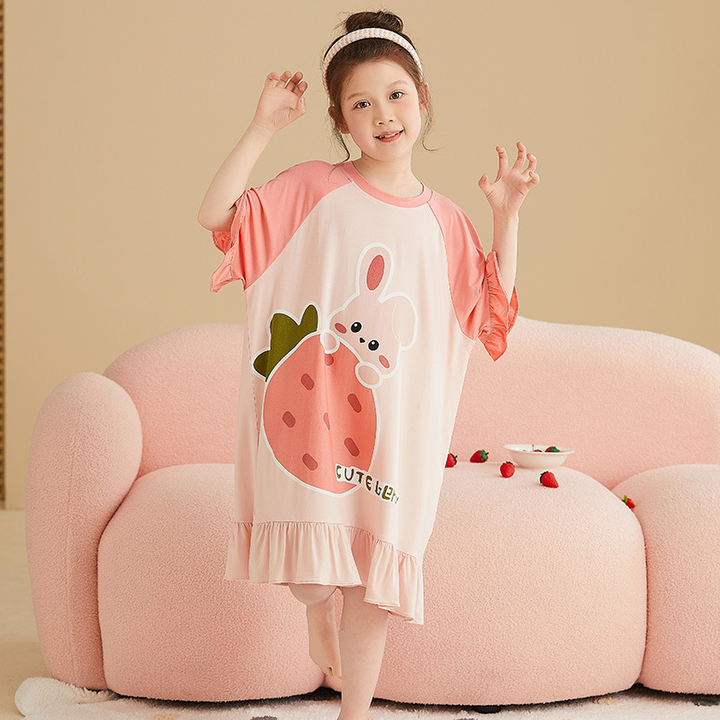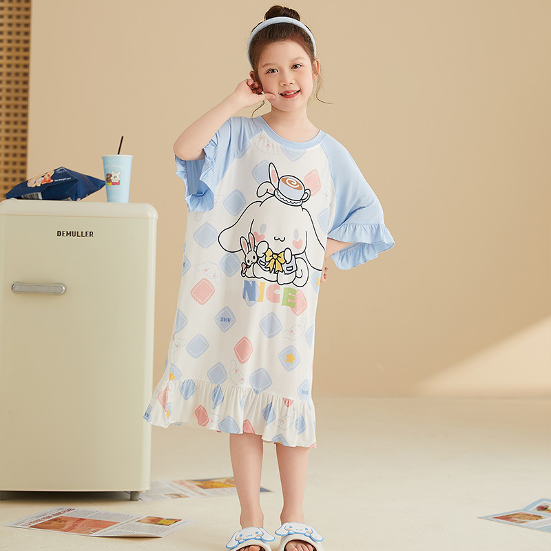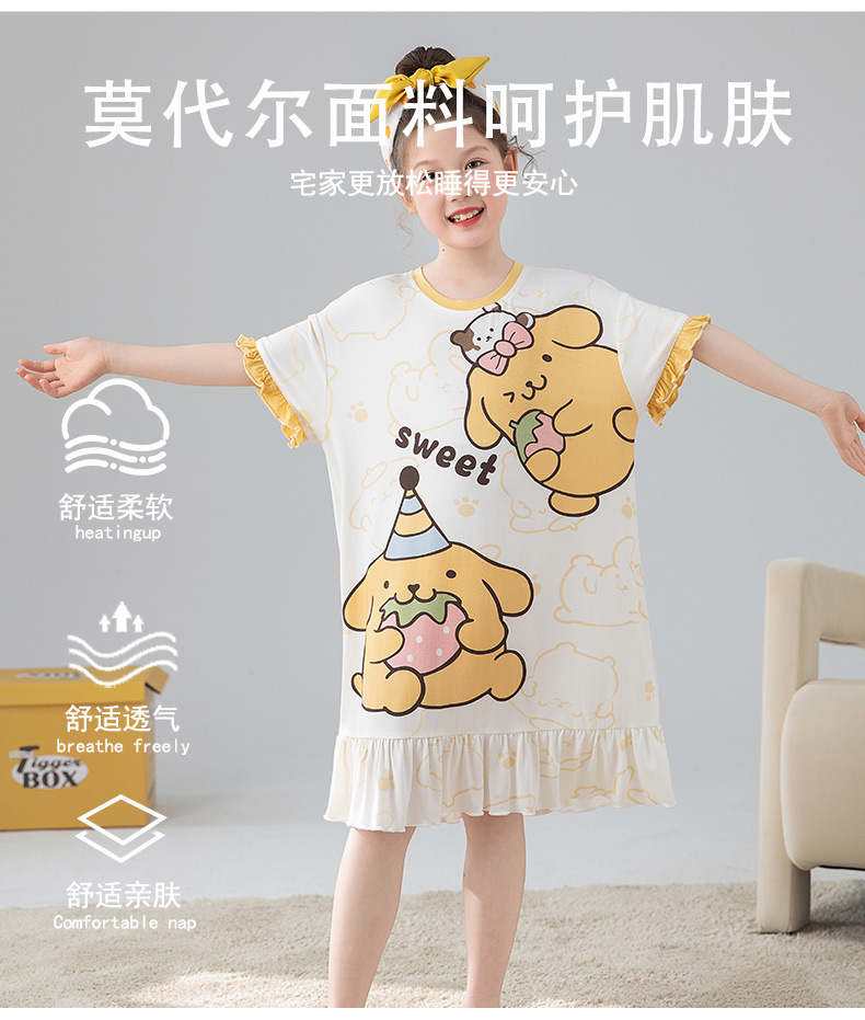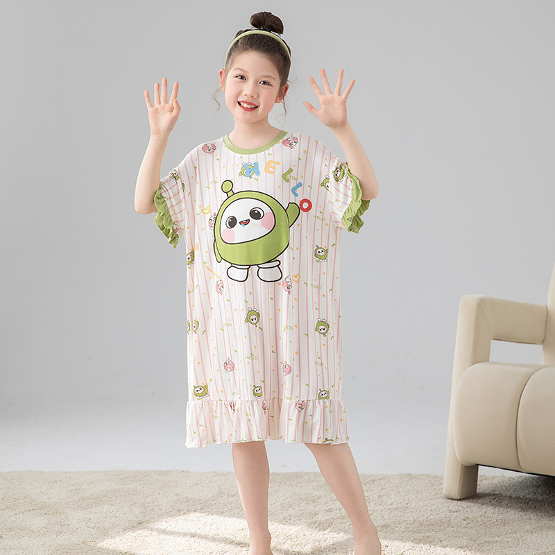 모달 걸스 나이트 가운 원피스 편안한 에어컨 옷 반팔 만화 귀여운 중대형 어린이 잠옷 캐주얼 루즈