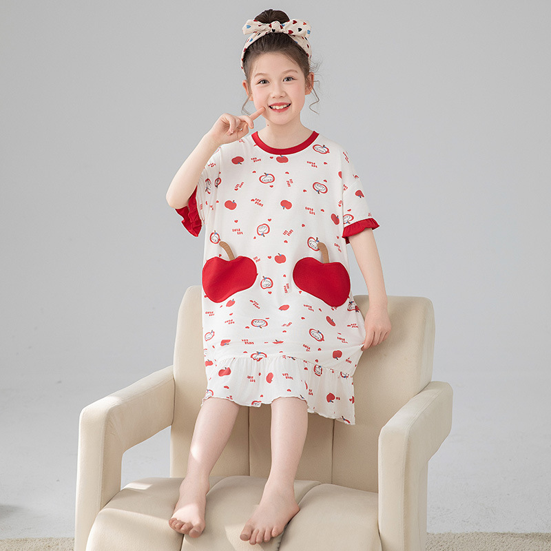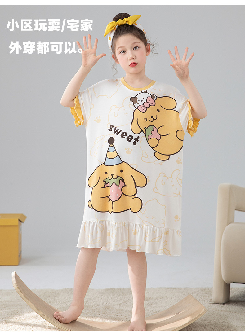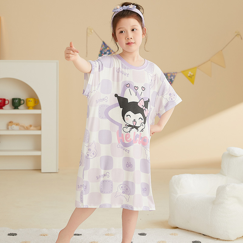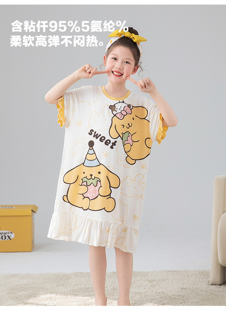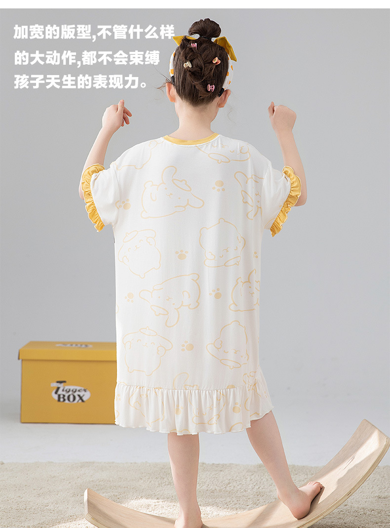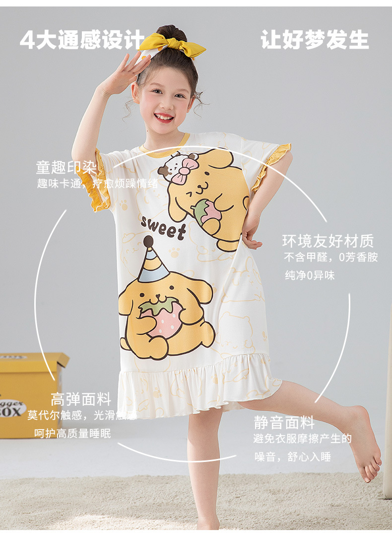모달 걸스 나이트 가운 원피스 편안한 에어컨 옷 반팔 만화 귀여운 중대형 어린이 잠옷 캐주얼 루즈
