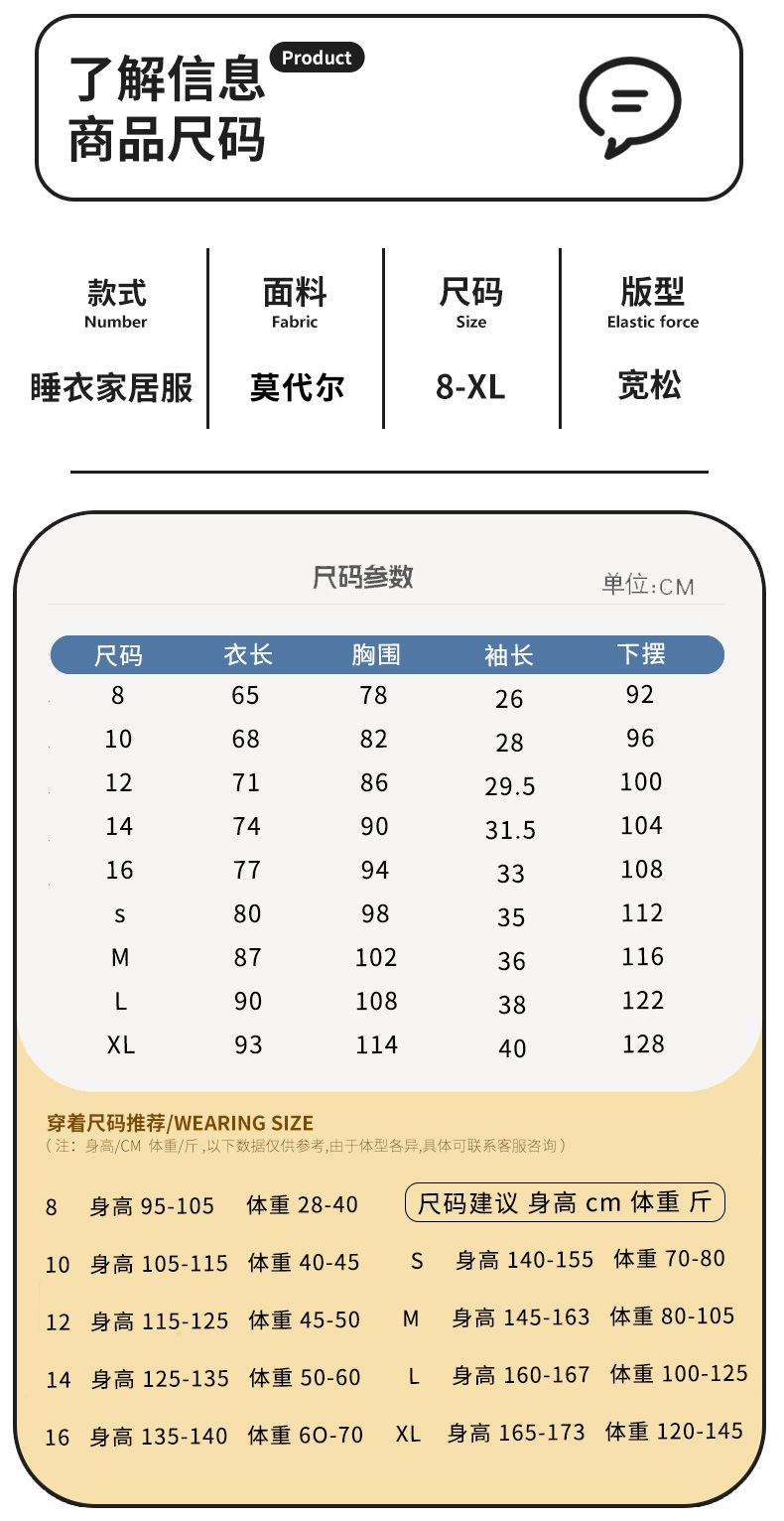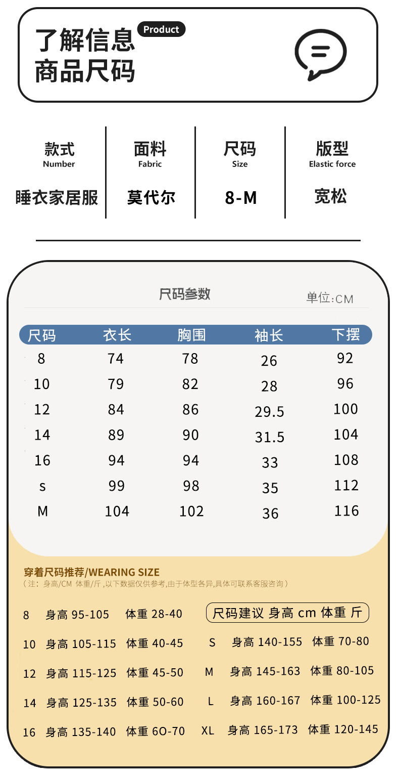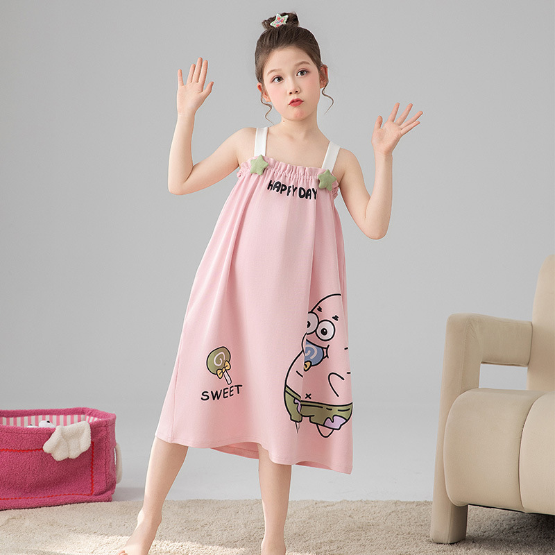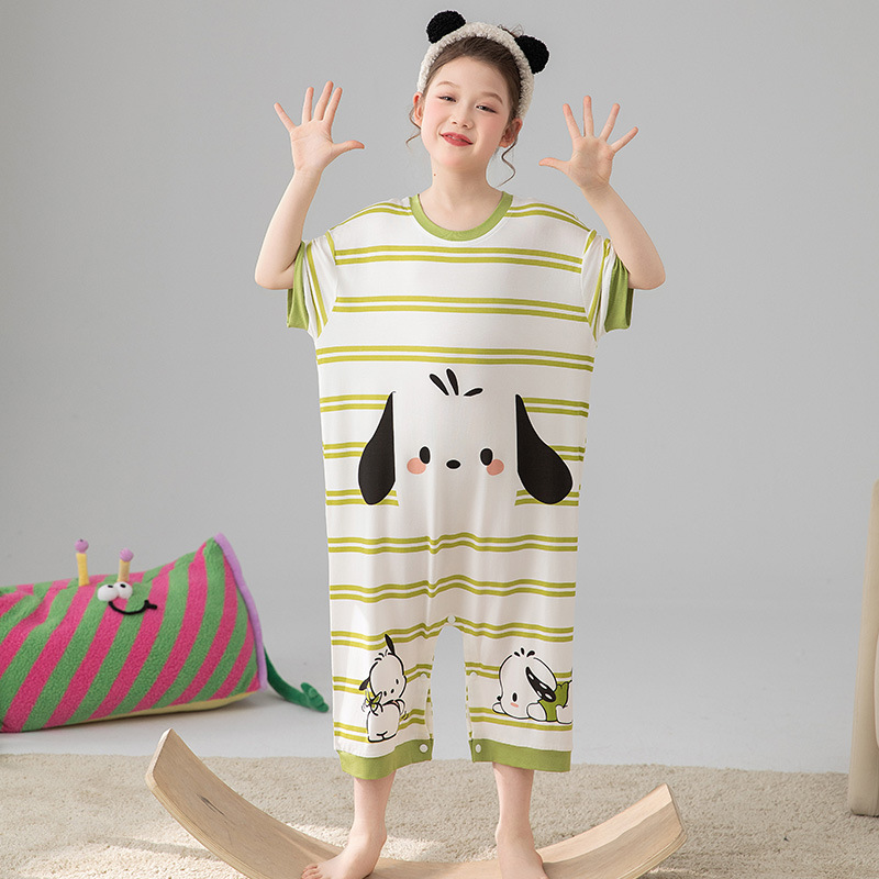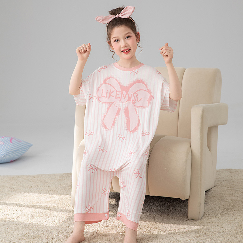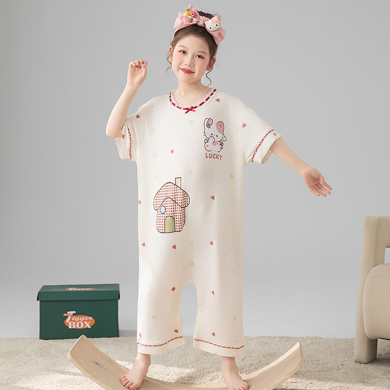 모달 걸스 나이트 가운 원피스 편안한 에어컨 옷 반팔 만화 귀여운 중대형 어린이 잠옷 캐주얼 루즈