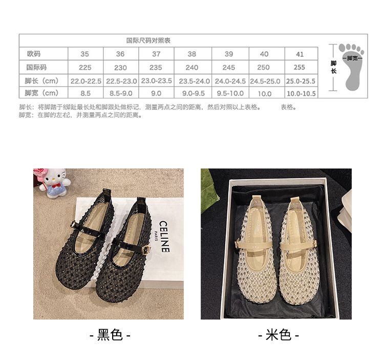 여성을위한 라인 석 메쉬 통기성 샌들 2025 봄과 여름 새로운 스타일 플랫 바닥 편안한 원 버클 펌프 메리 제인 신발스토어 가기