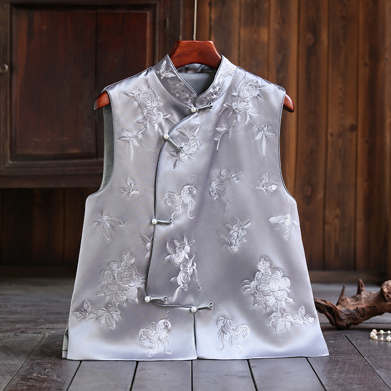 2025년 봄 새로운 스타일의 새로운 중국 스타일 중공업 자수 복고풍 중국 스타일 조끼로 여성을 위한 슬림하고 슬림한 자수 양복 조끼