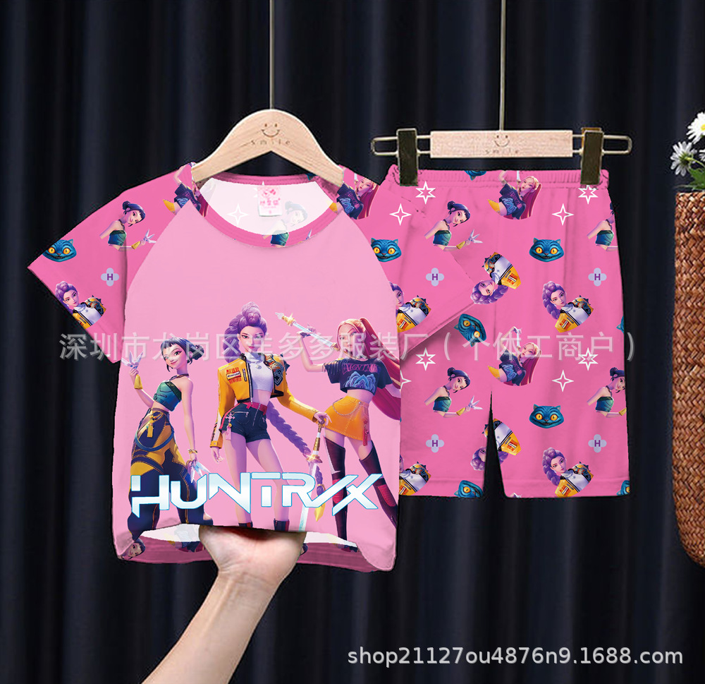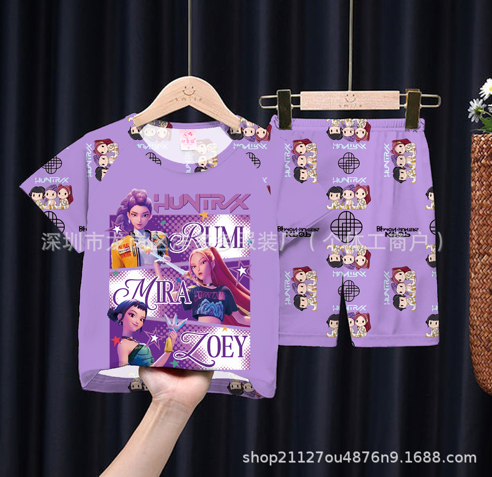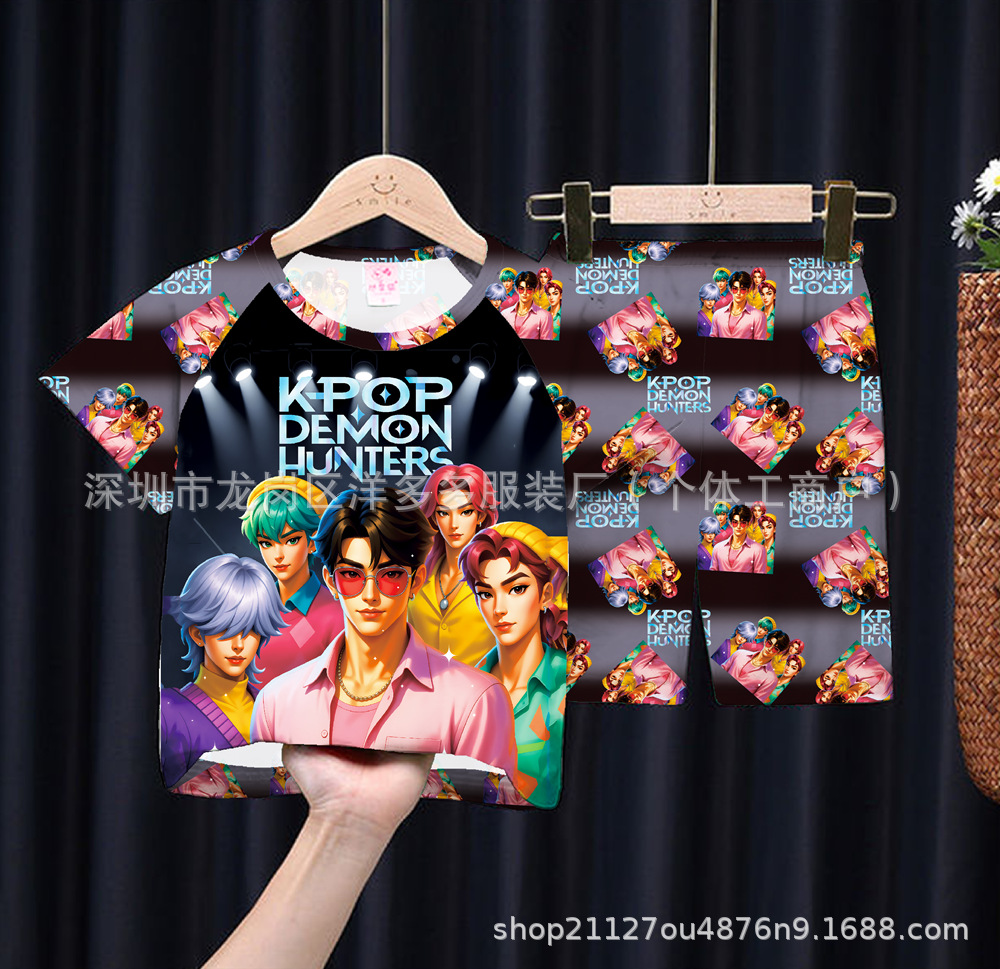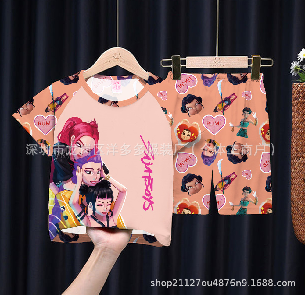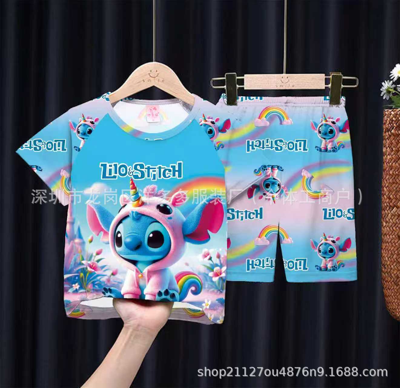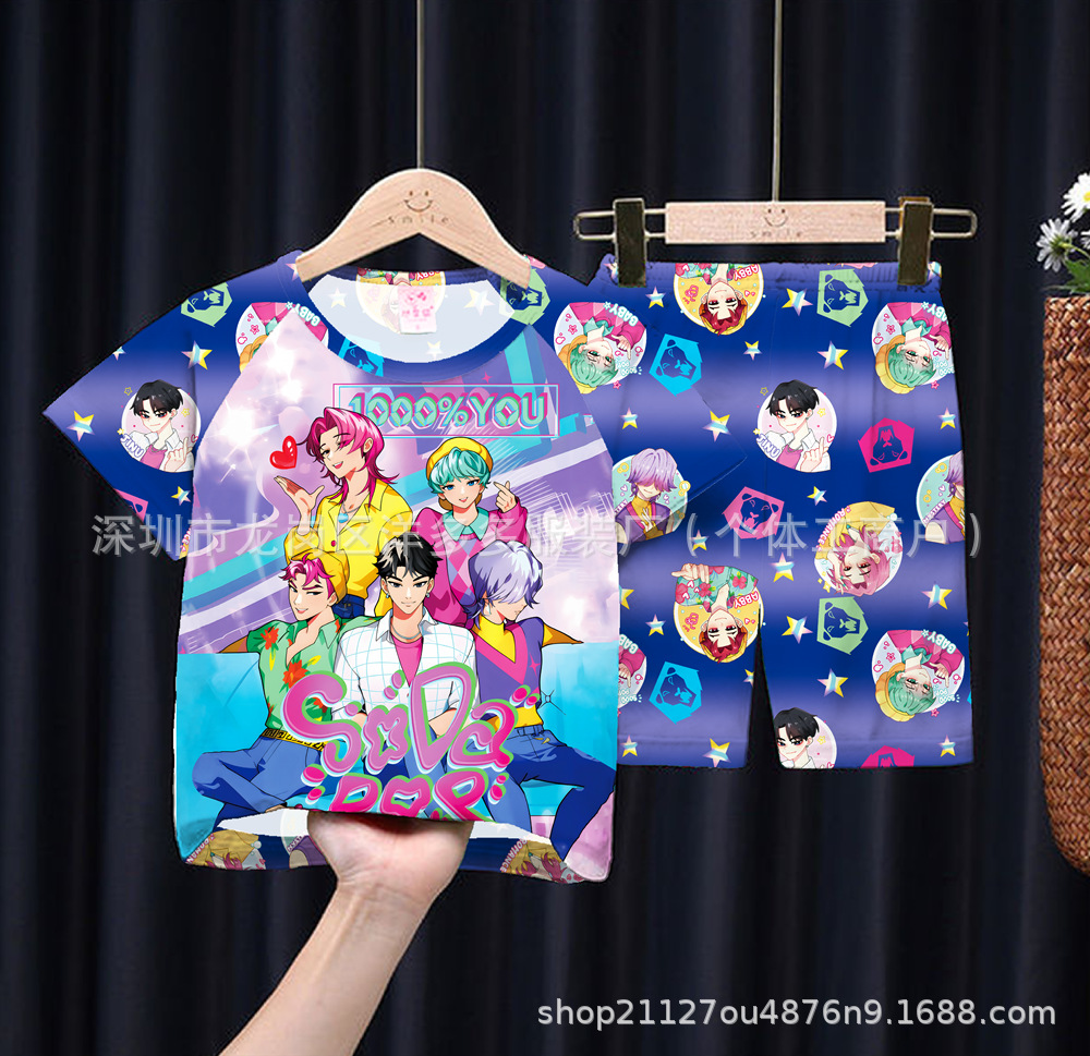 2025 새로운 Kapibala 어린이 잠옷 만화 소녀 반팔 얇은 소년 캐주얼 홈 의류 도매 트렌드