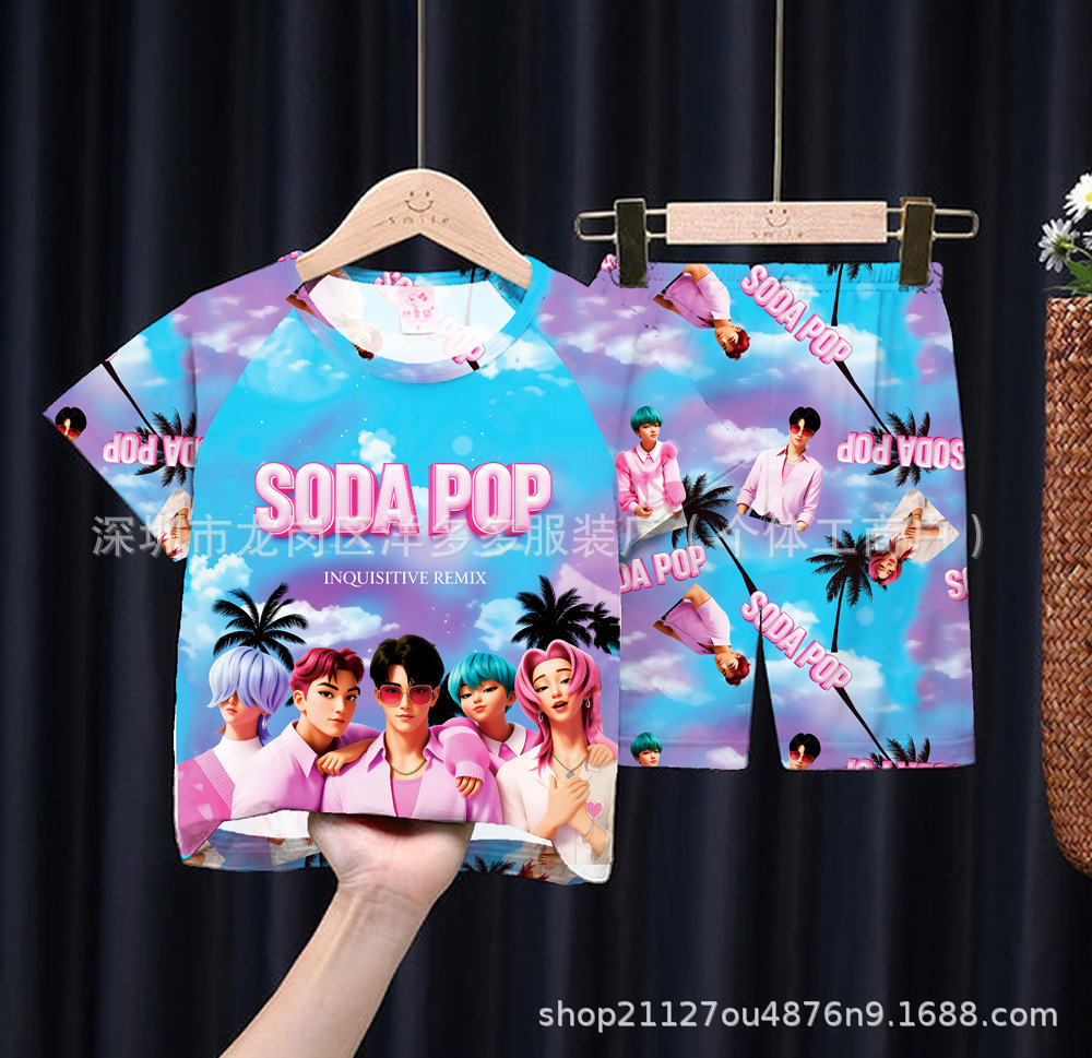 2025 새로운 Kapibala 어린이 잠옷 만화 소녀 반팔 얇은 소년 캐주얼 홈 의류 도매 트렌드스토어 가기