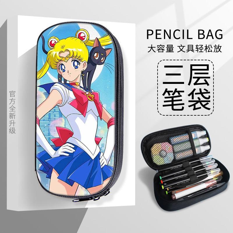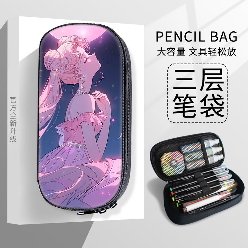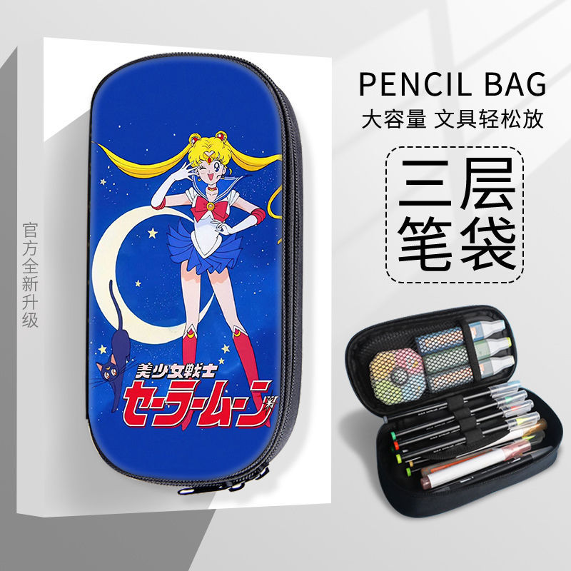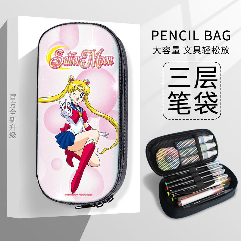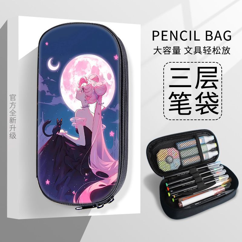 세일러문 캔버스 필통 달토끼 학생 필통 문구 가방 다층 고급 중학생 필통