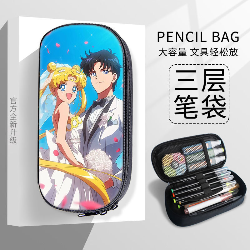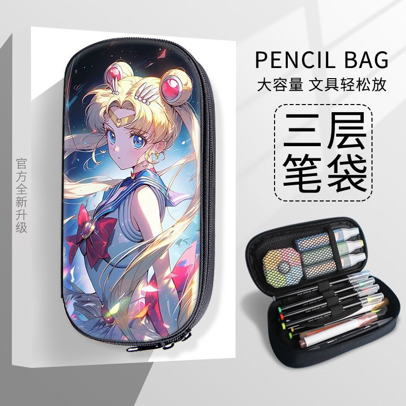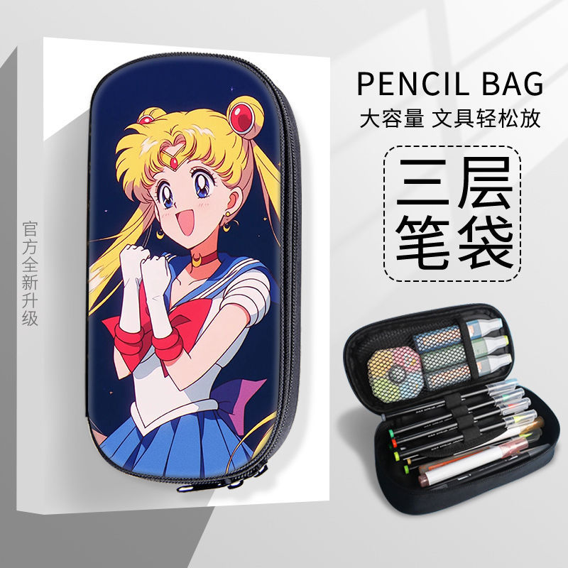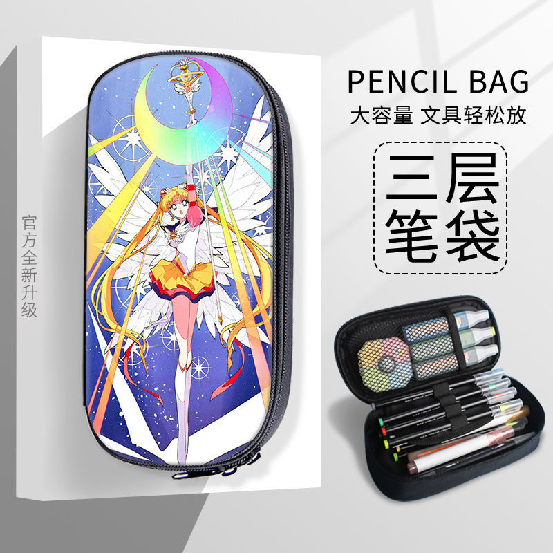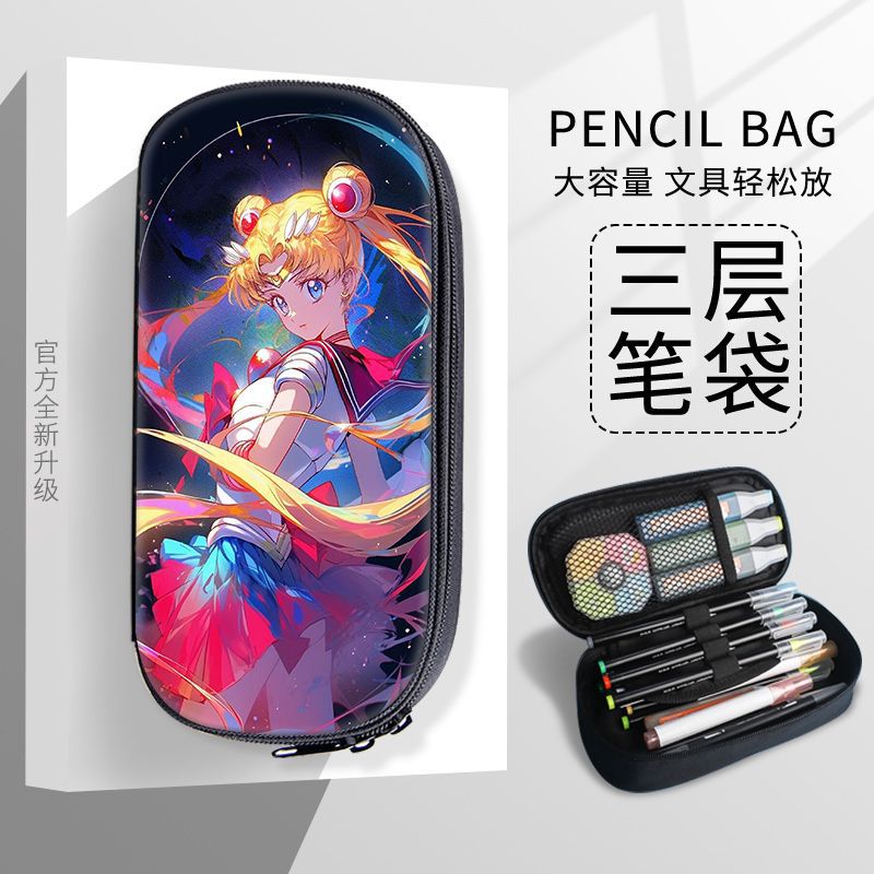 세일러문 캔버스 필통 달토끼 학생 필통 문구 가방 다층 고급 중학생 필통