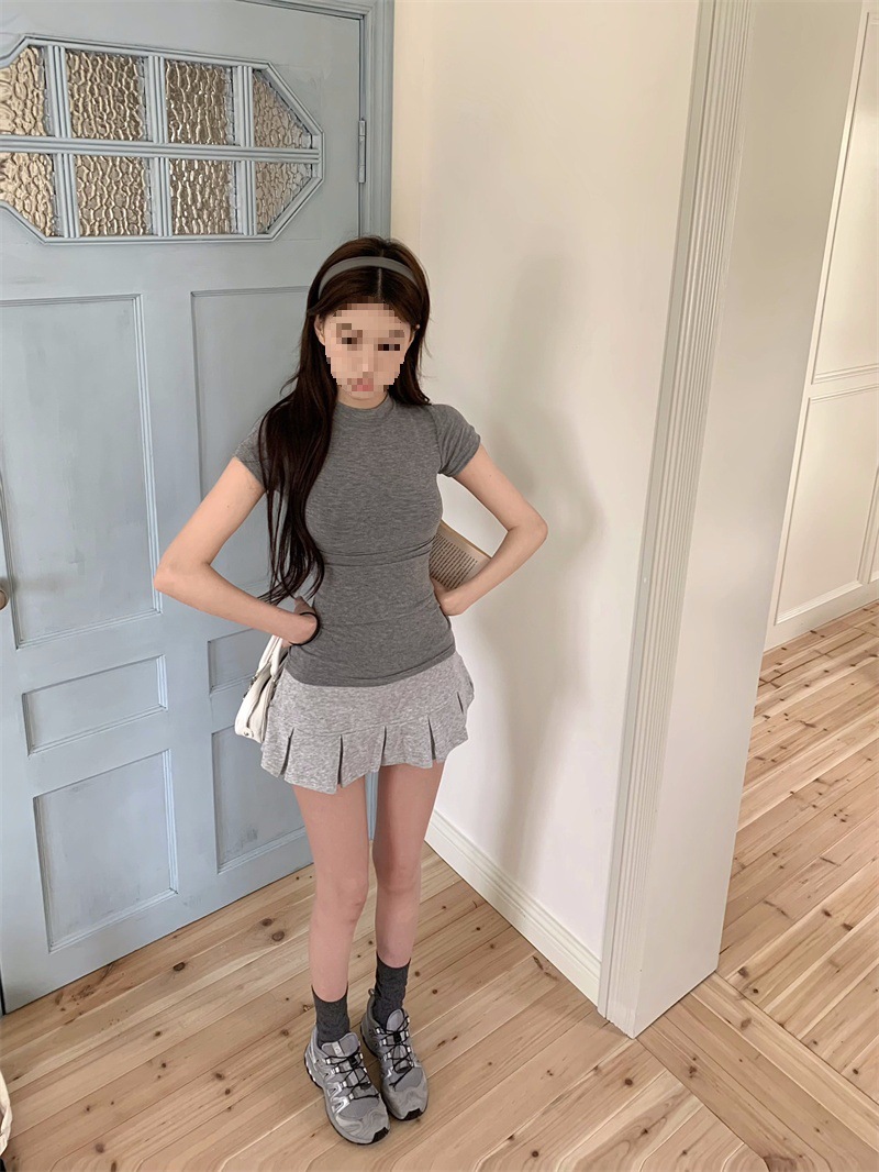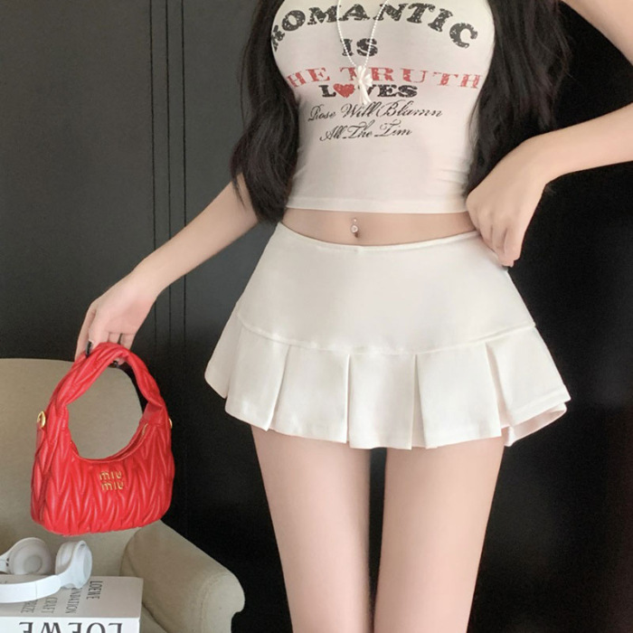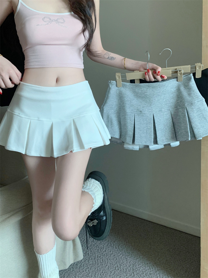 Sweet Hot Girl 그레이 로우 웨이스트 미니 스커트 여성 스포츠 순수한 욕망 플리츠 미니 스커트 노출 방지 A 라인 스커트