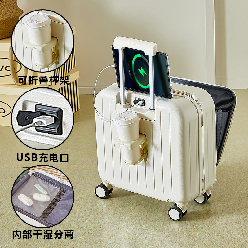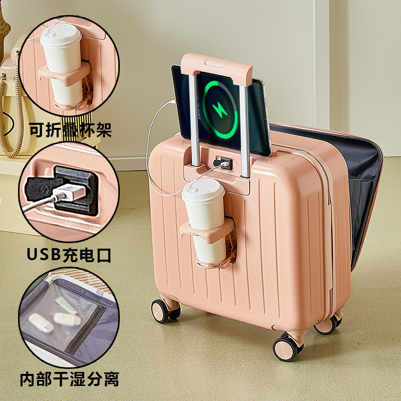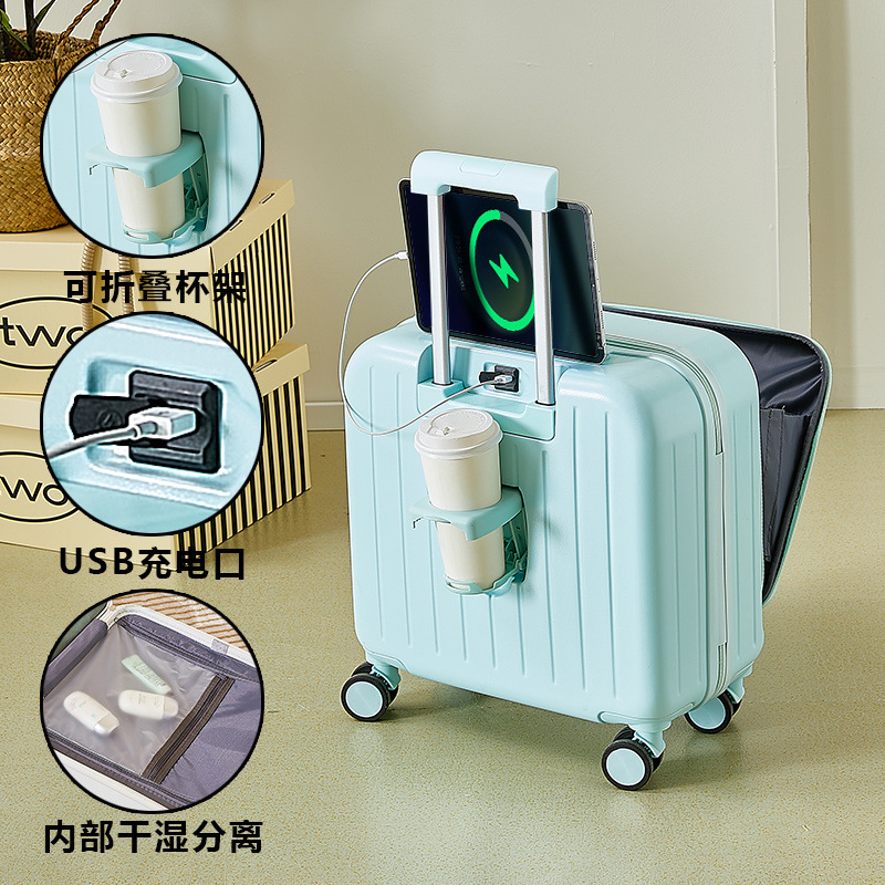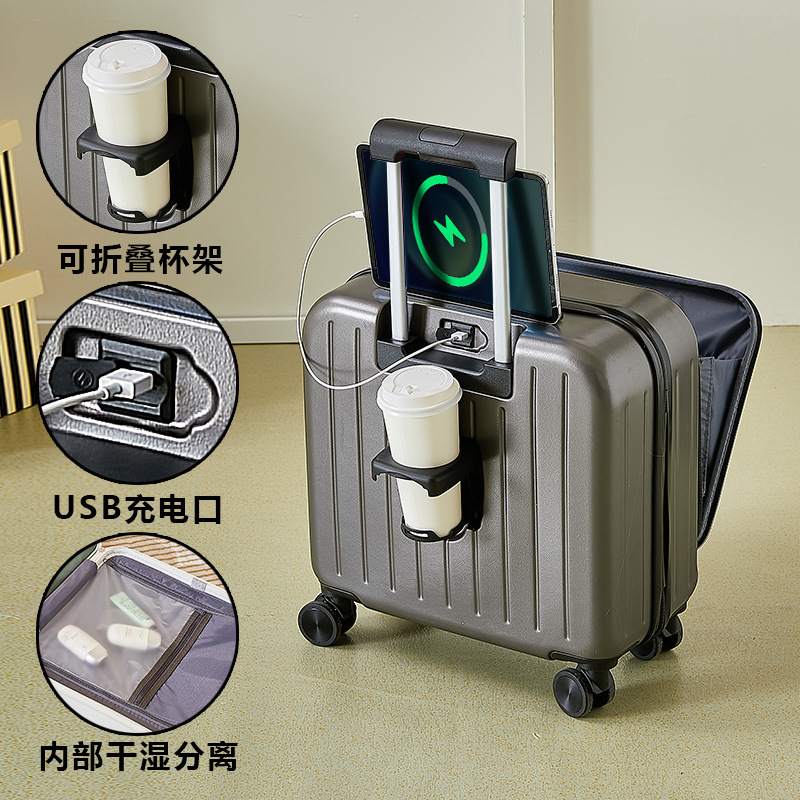 18 인치 휴대용 탑승 수하물 전면 오픈 뚜껑 여성 트롤리 케이스 유니버설 휠 비밀번호 가죽 케이스 남성 가방 20 인치스토어 가기