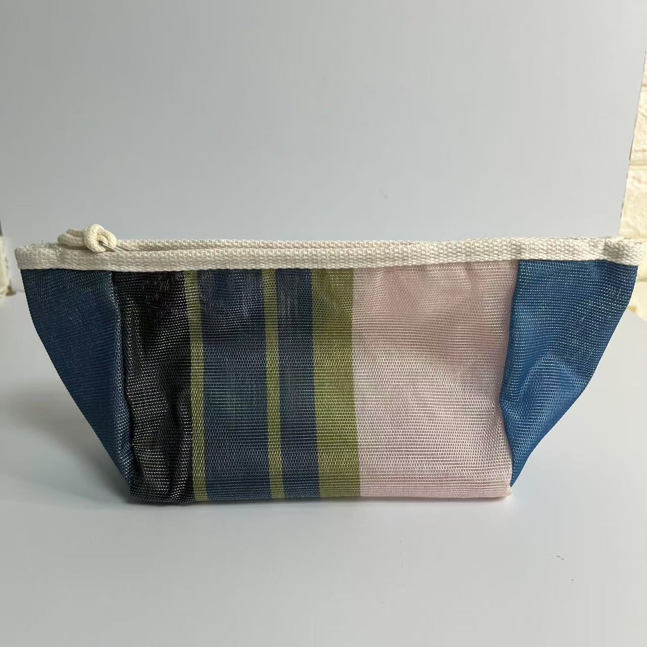 • 네이비 블루와 핑크 스트라이프 스트로(화장품 가방)