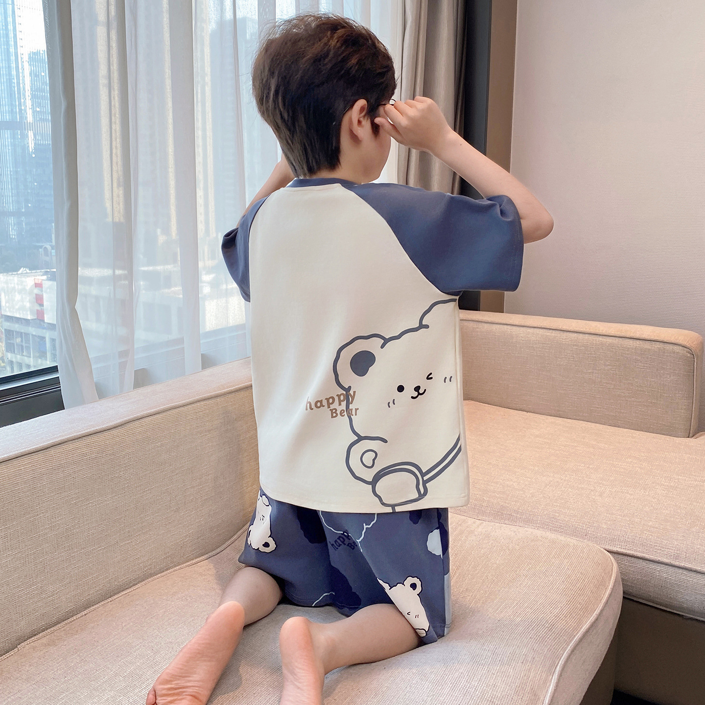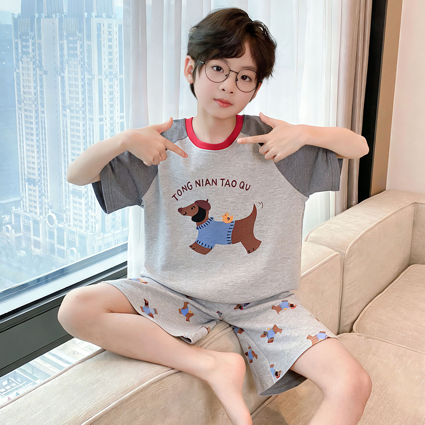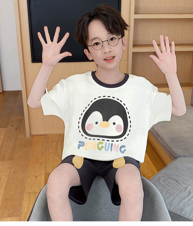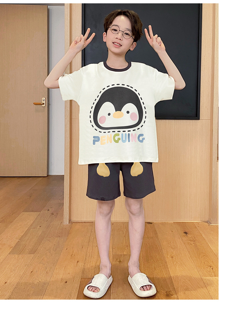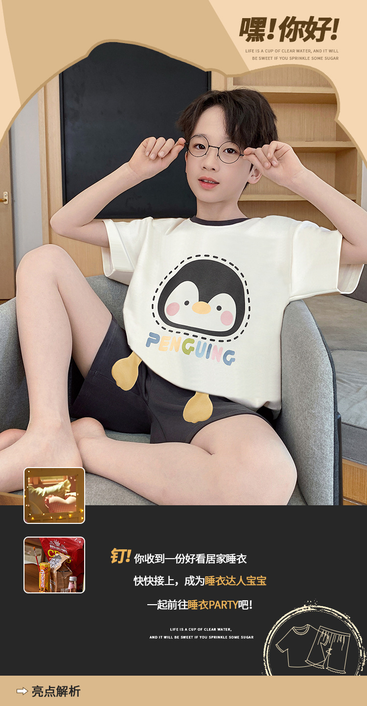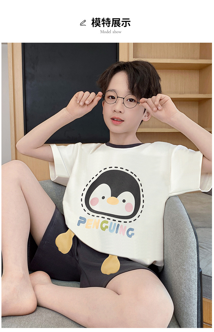 소년 잠옷 여름 반팔 얇은 순면 중대형 어린이 여름 소년 면화 어린이 부모-자식 가정복스토어 가기