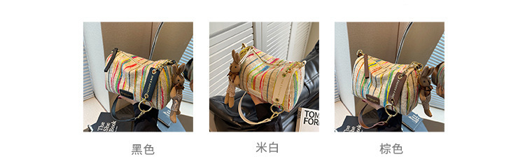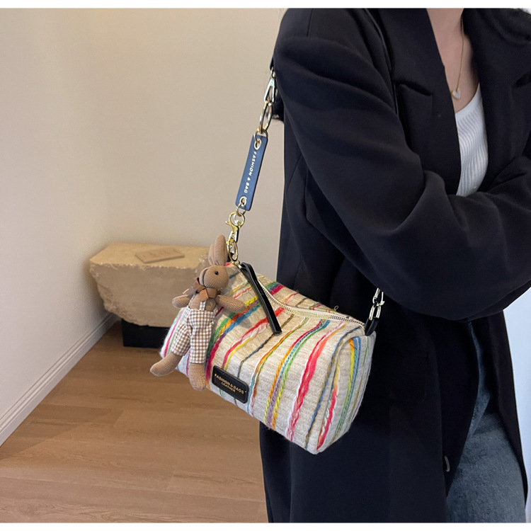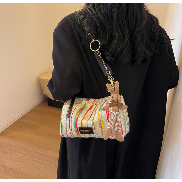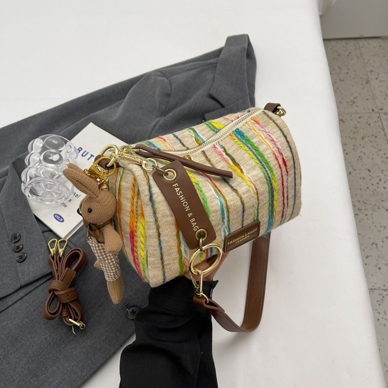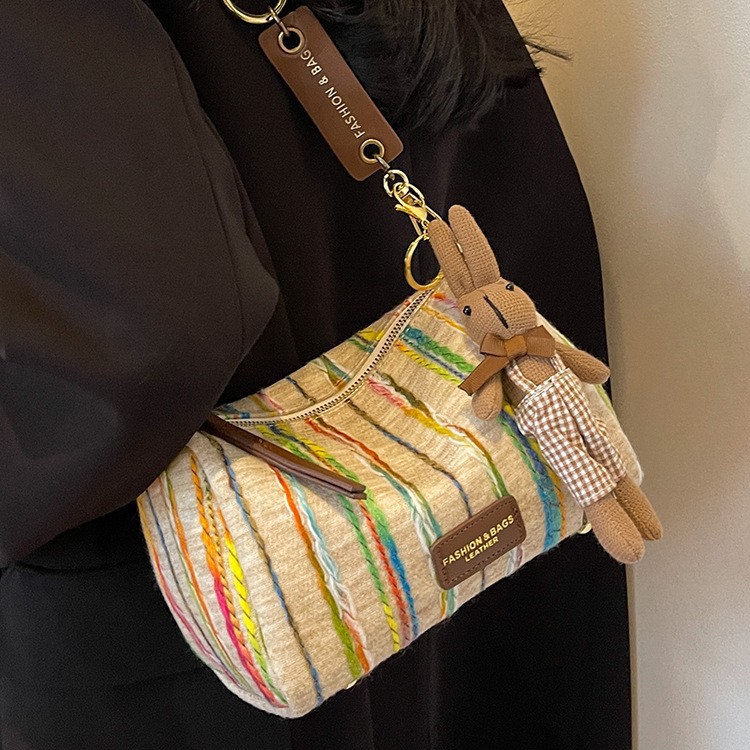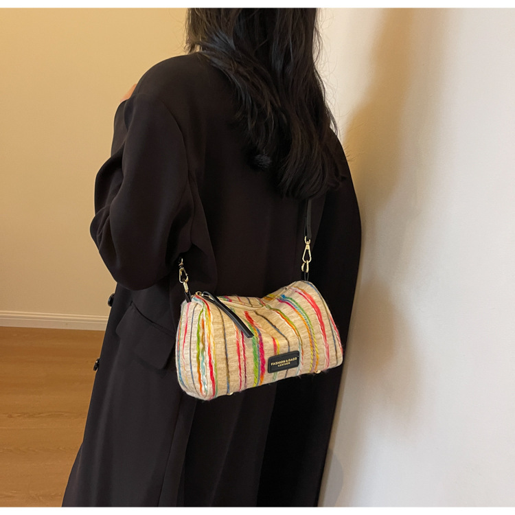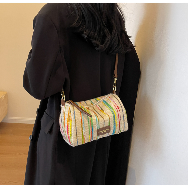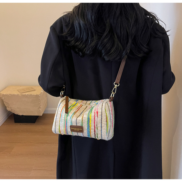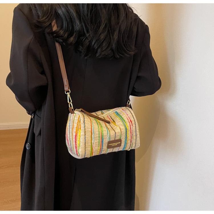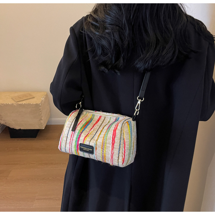 여성을위한 한국 스타일 겨드랑이 가방 2025 새로운 가을, 겨울 무지개 짠 보스턴 가방 세련되고 다재다능한 어깨 가방스토어 가기