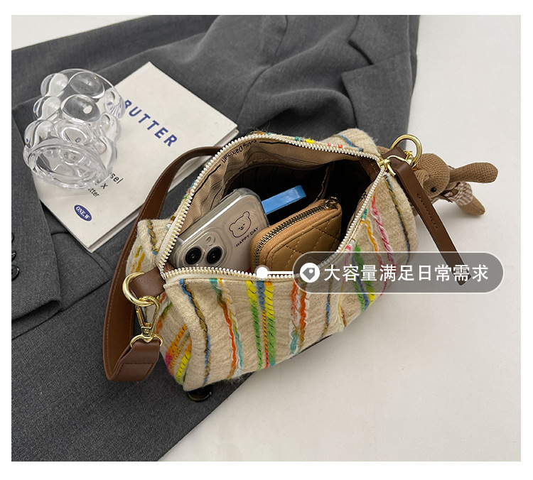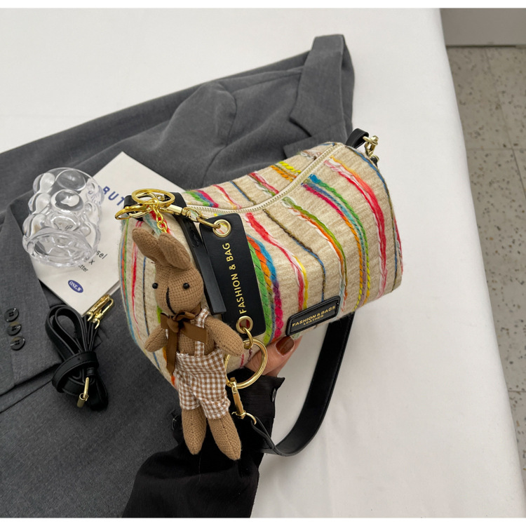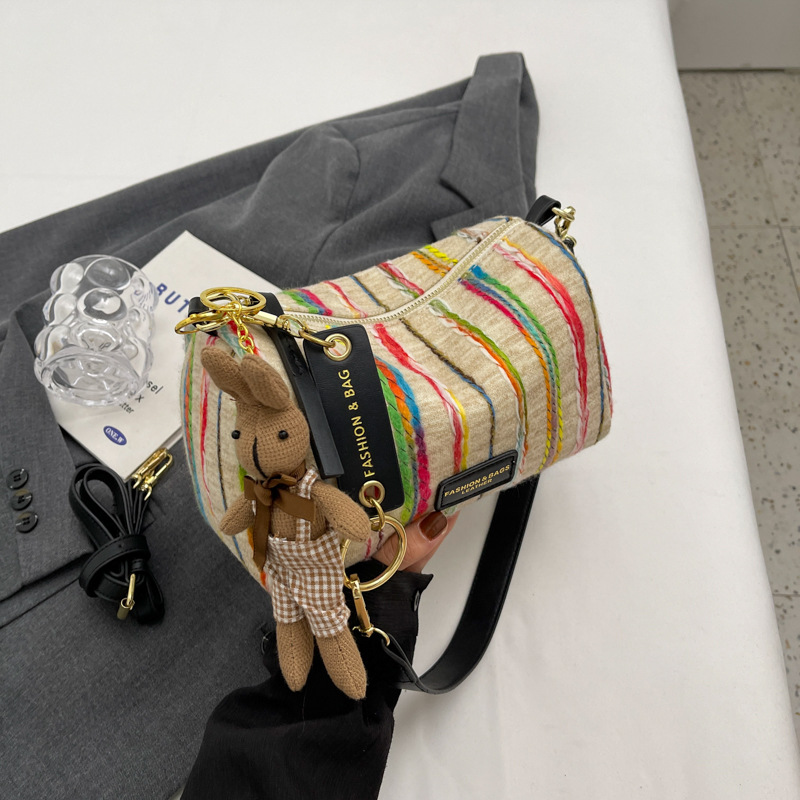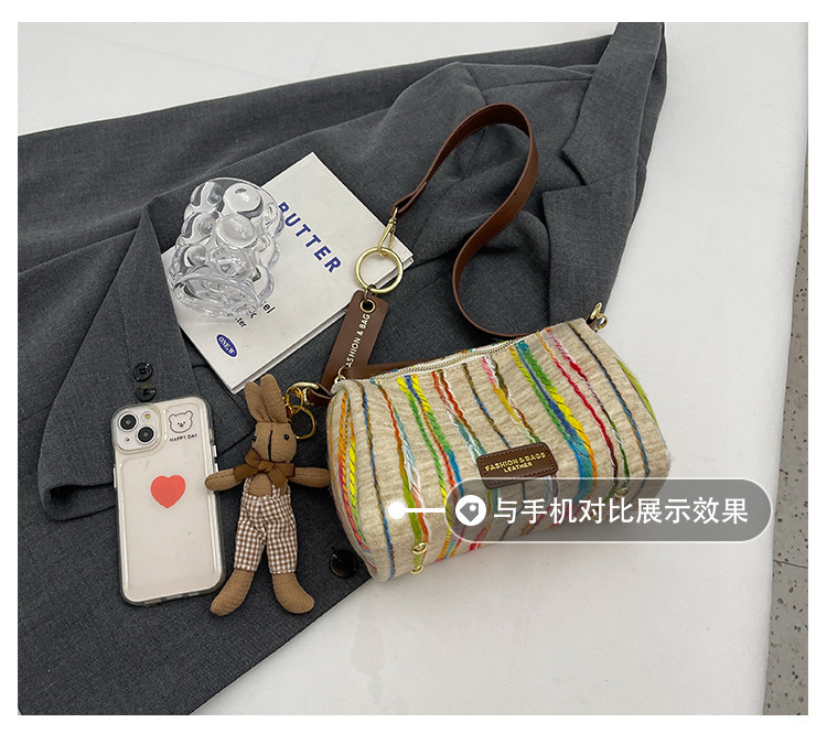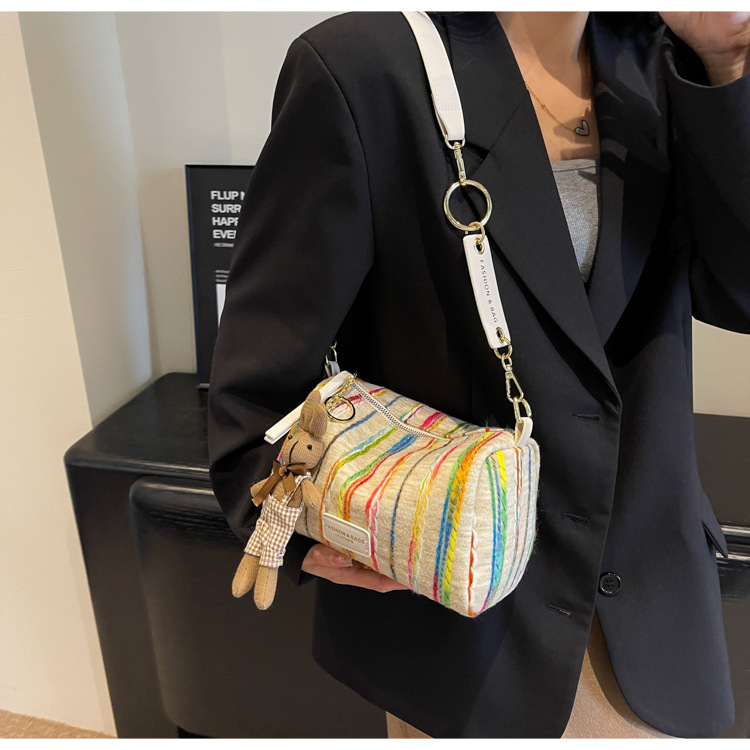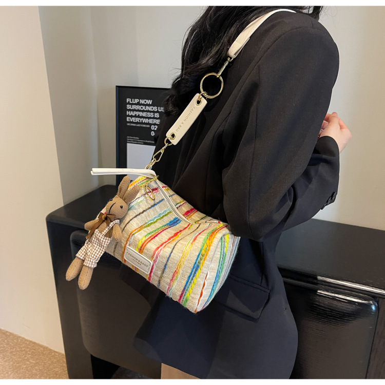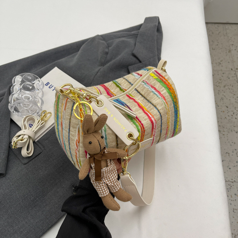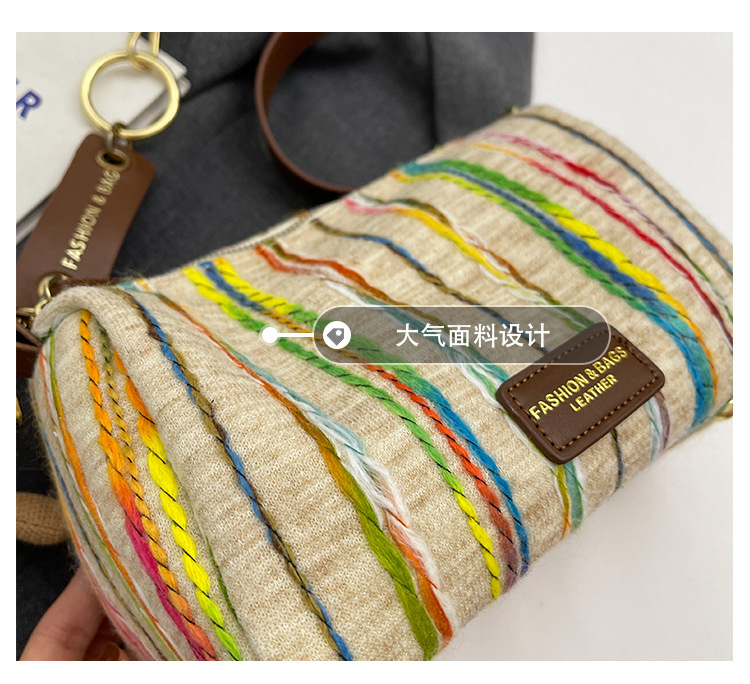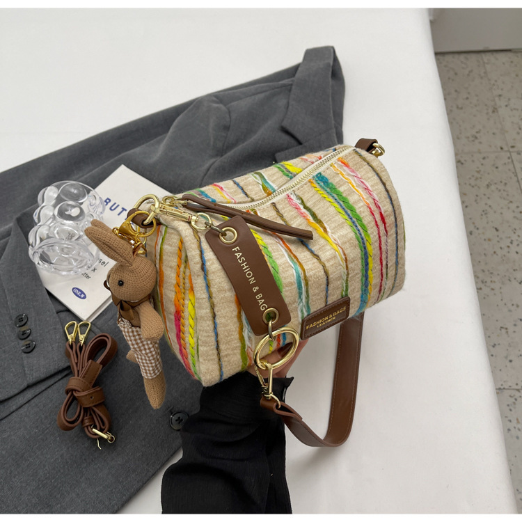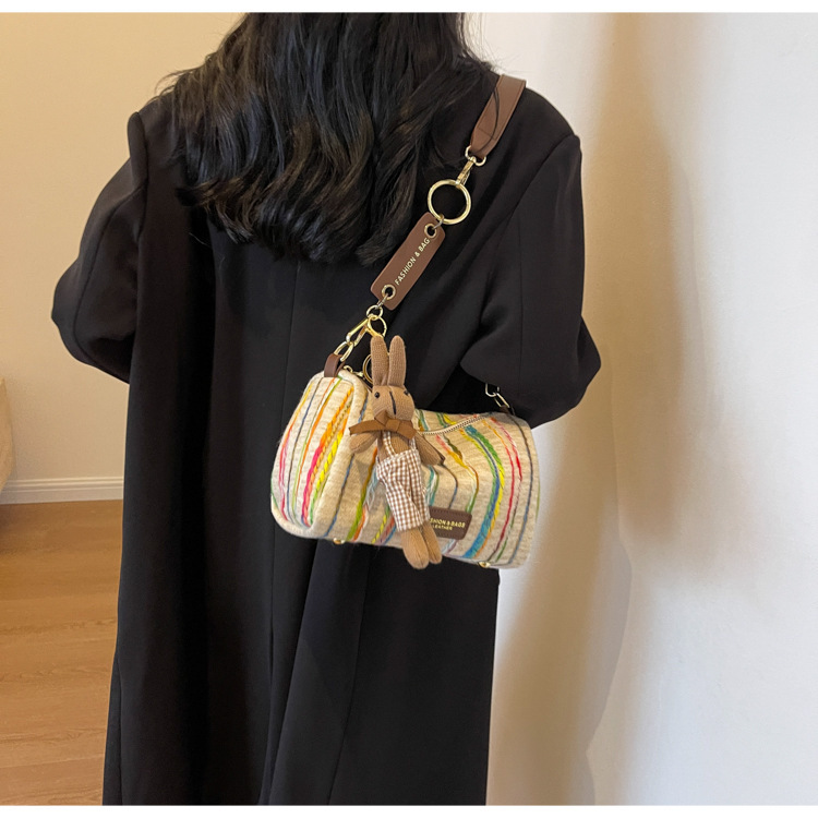여성을위한 한국 스타일 겨드랑이 가방 2025 새로운 가을, 겨울 무지개 짠 보스턴 가방 세련되고 다재다능한 어깨 가방스토어 가기