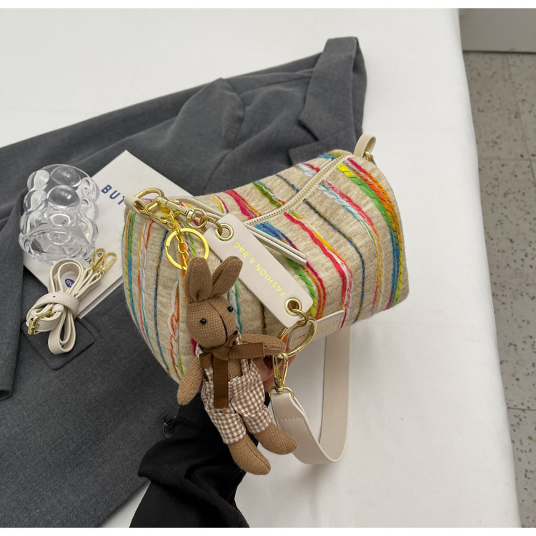 여성을위한 한국 스타일 겨드랑이 가방 2025 새로운 가을, 겨울 무지개 짠 보스턴 가방 세련되고 다재다능한 어깨 가방